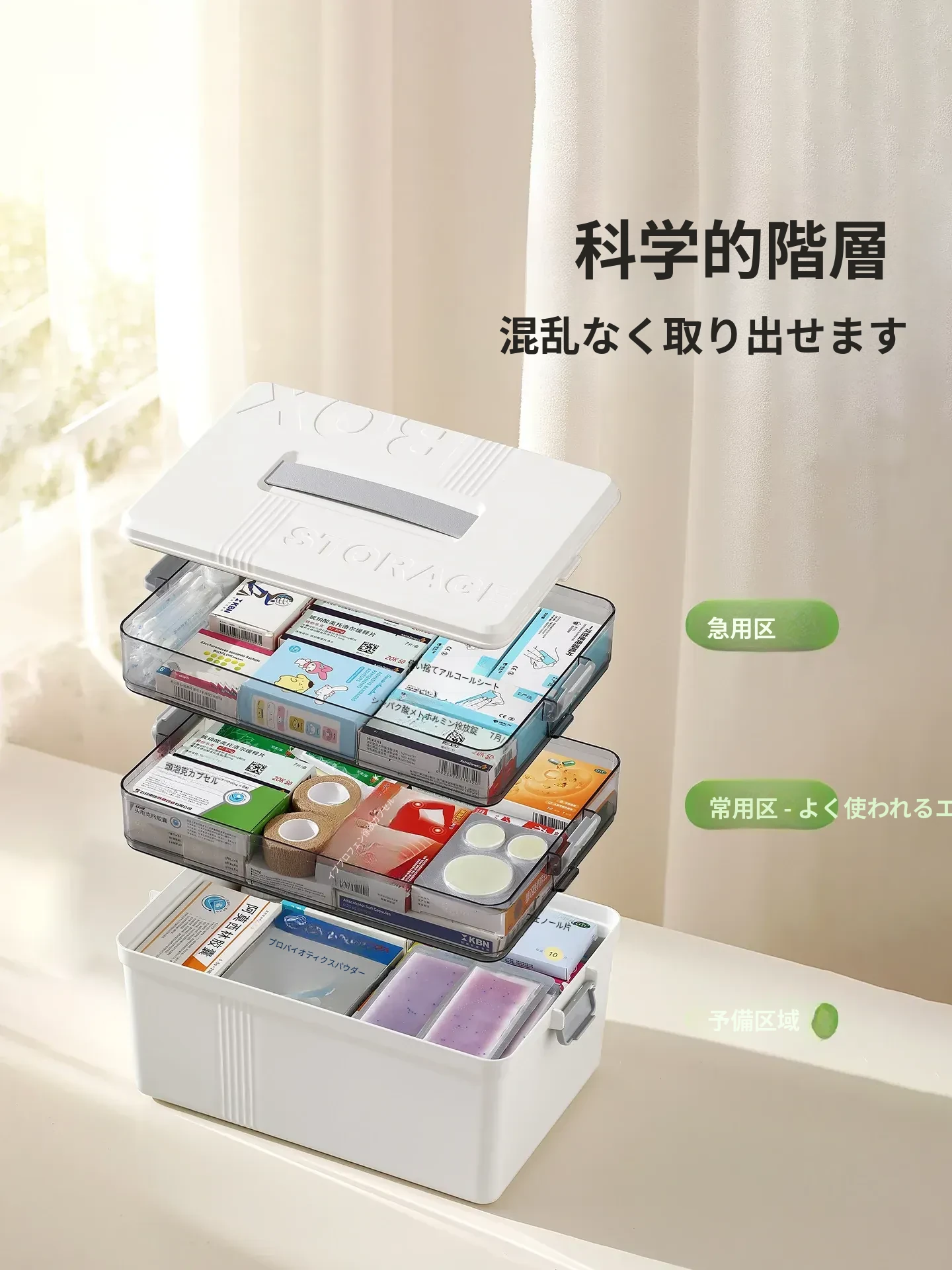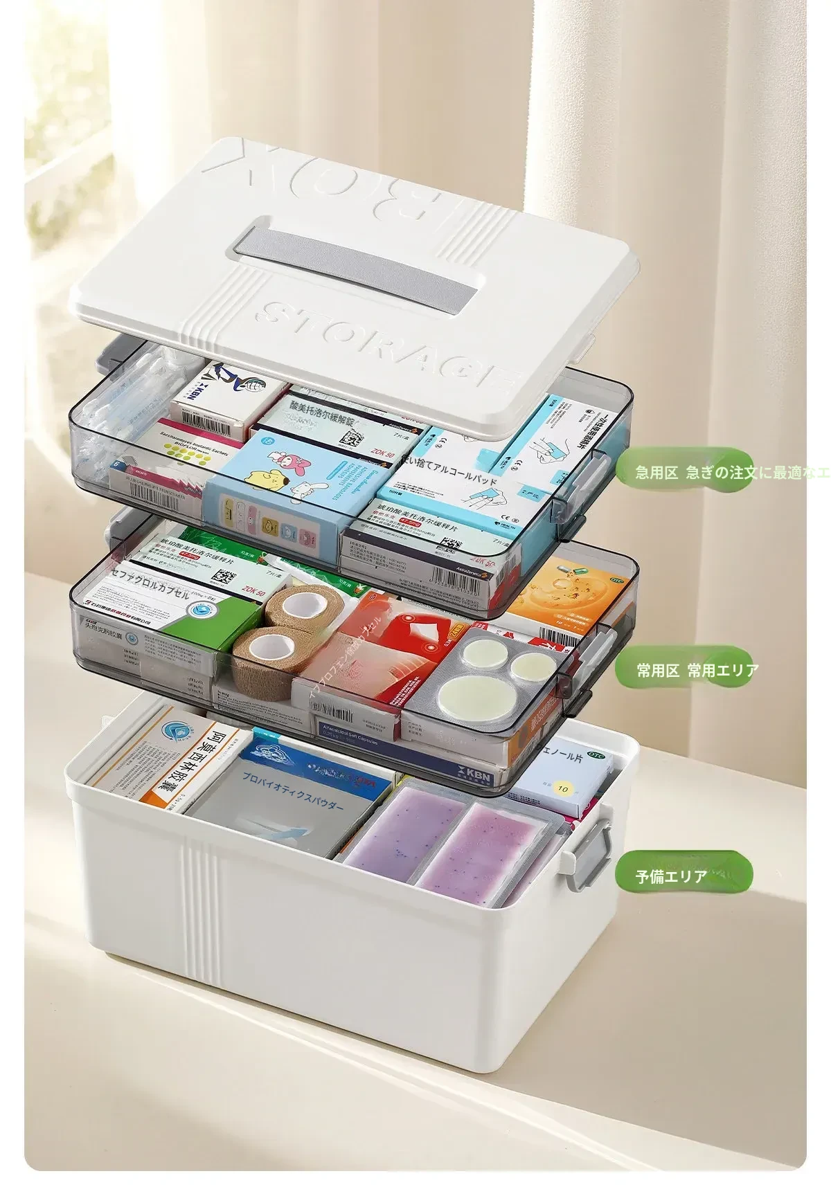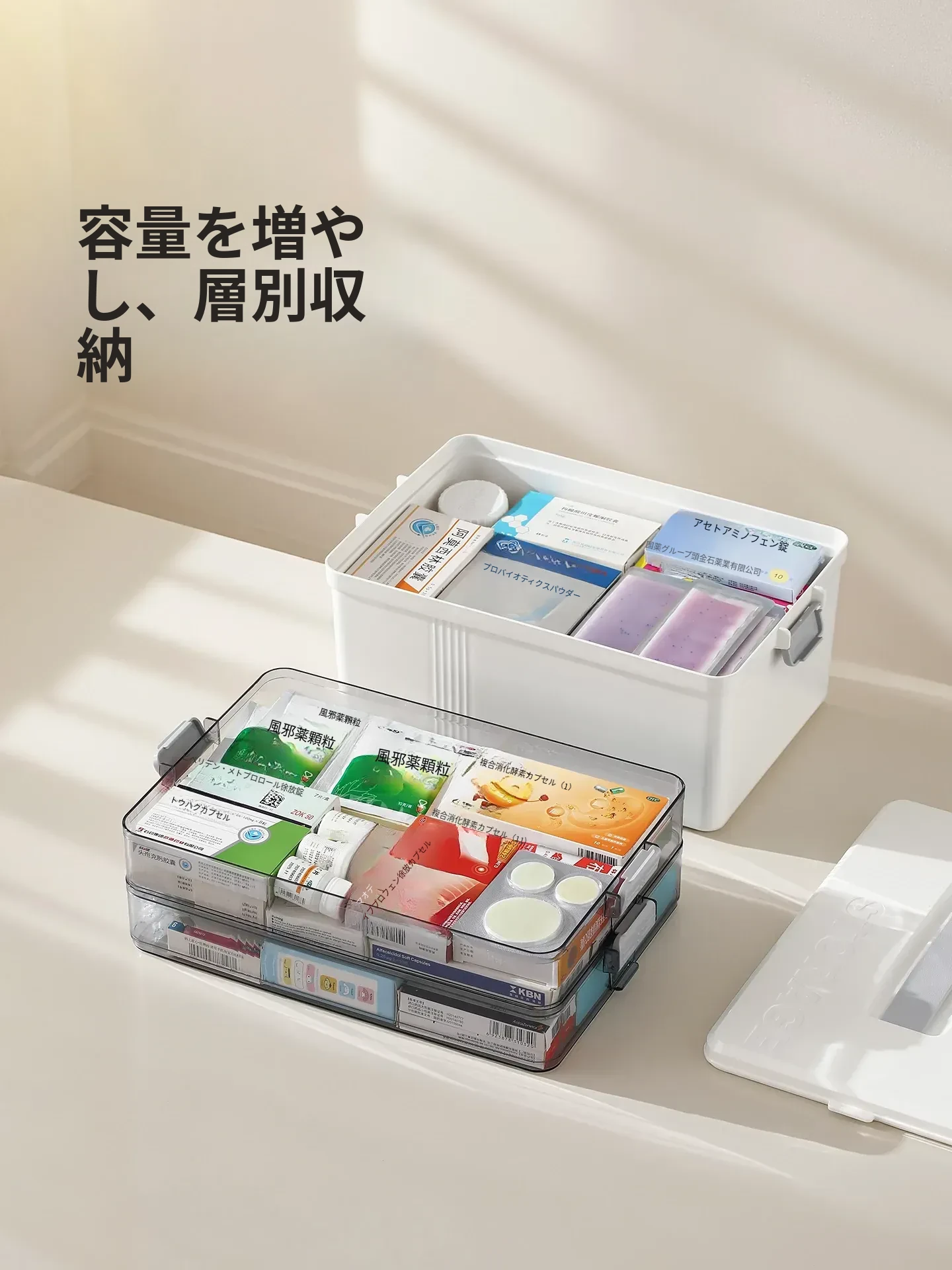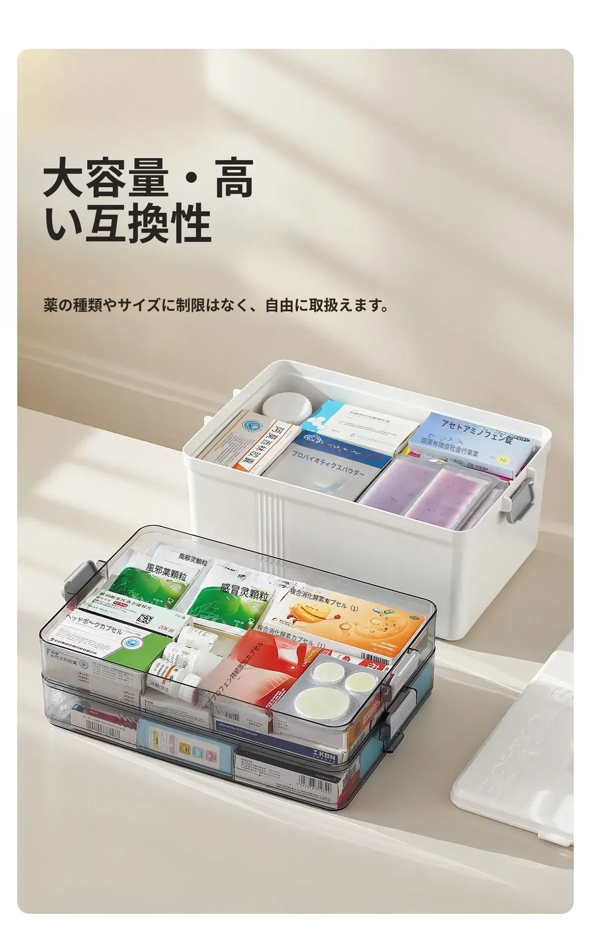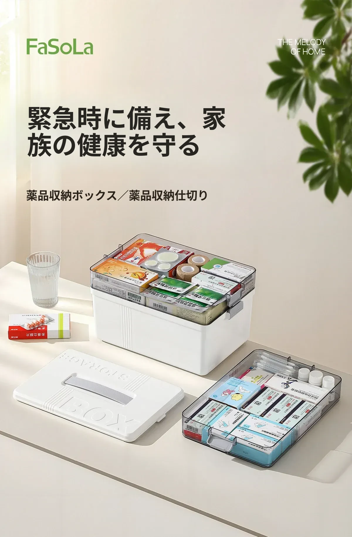 FaSoLa 薬品収納ボックス 大容量 仕切り付き 便利な携帯型 救急家庭用医薬品箱 - すっきり整理できて安心な毎日をサポート!