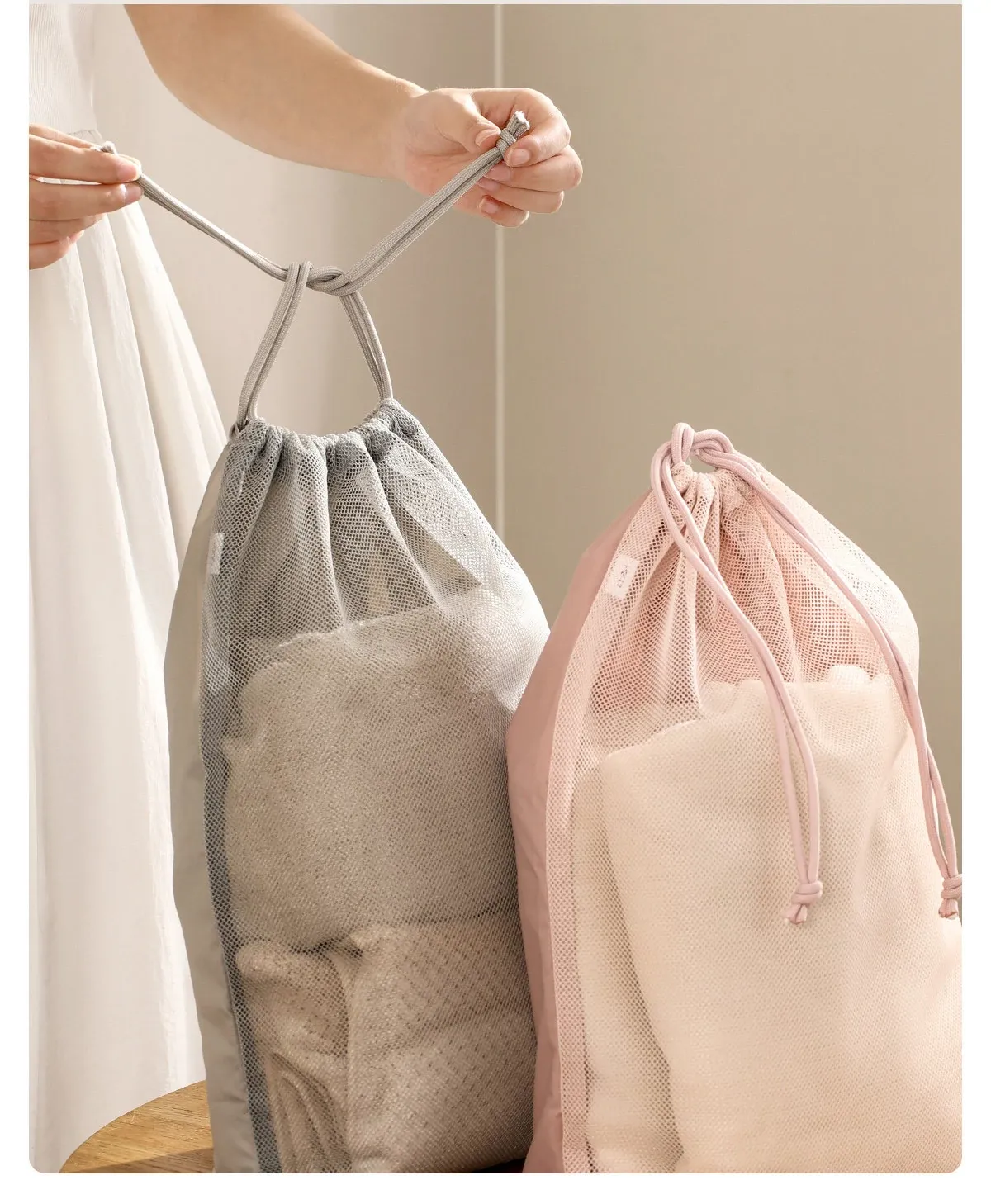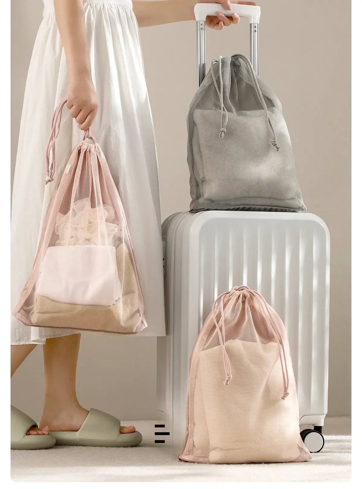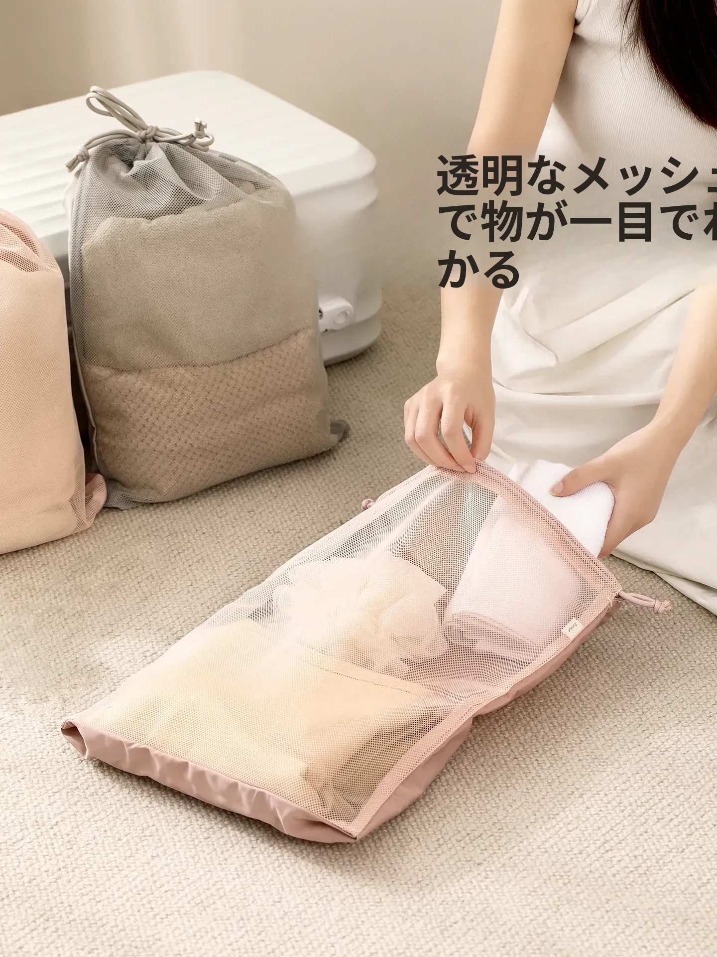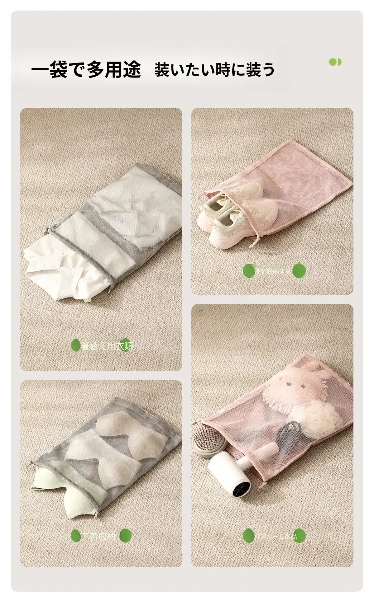 FaSoLa 旅行用束口袋 - 大容量透明メッシュ収納バッグ!衣類をスマートに整理でき、出張や旅行に最適。便利さとスタイルを兼ね備えたアイテムです!