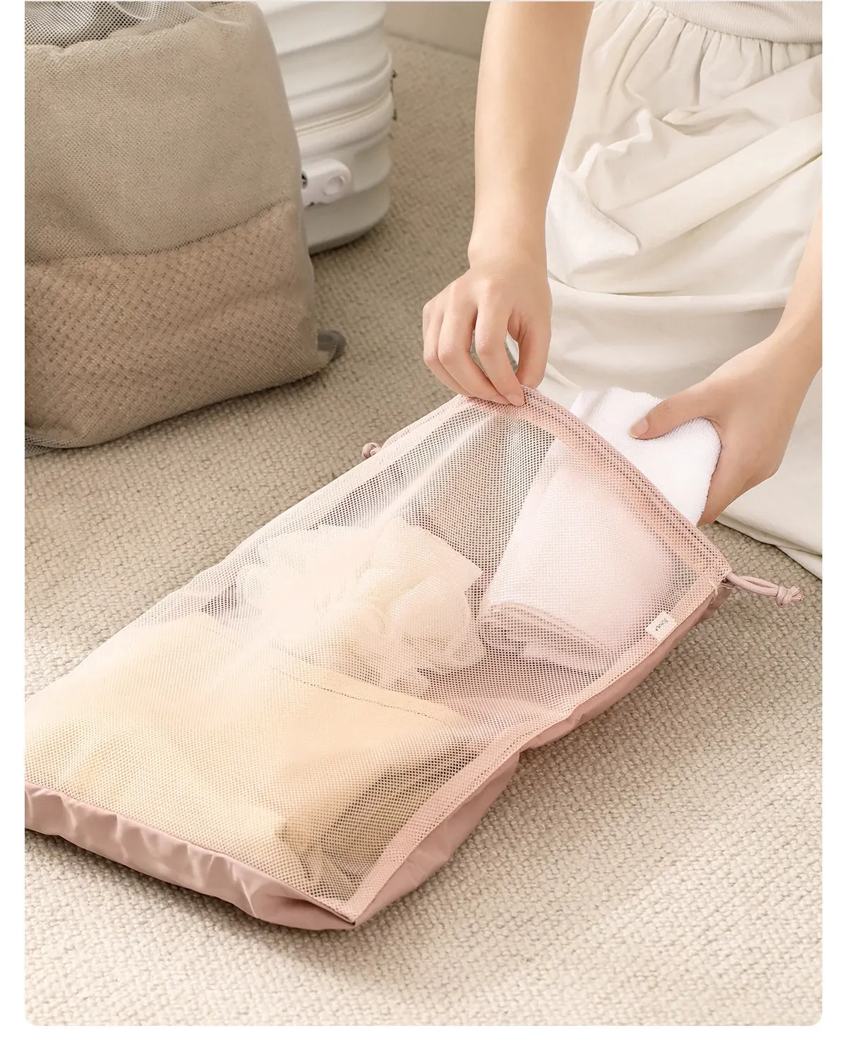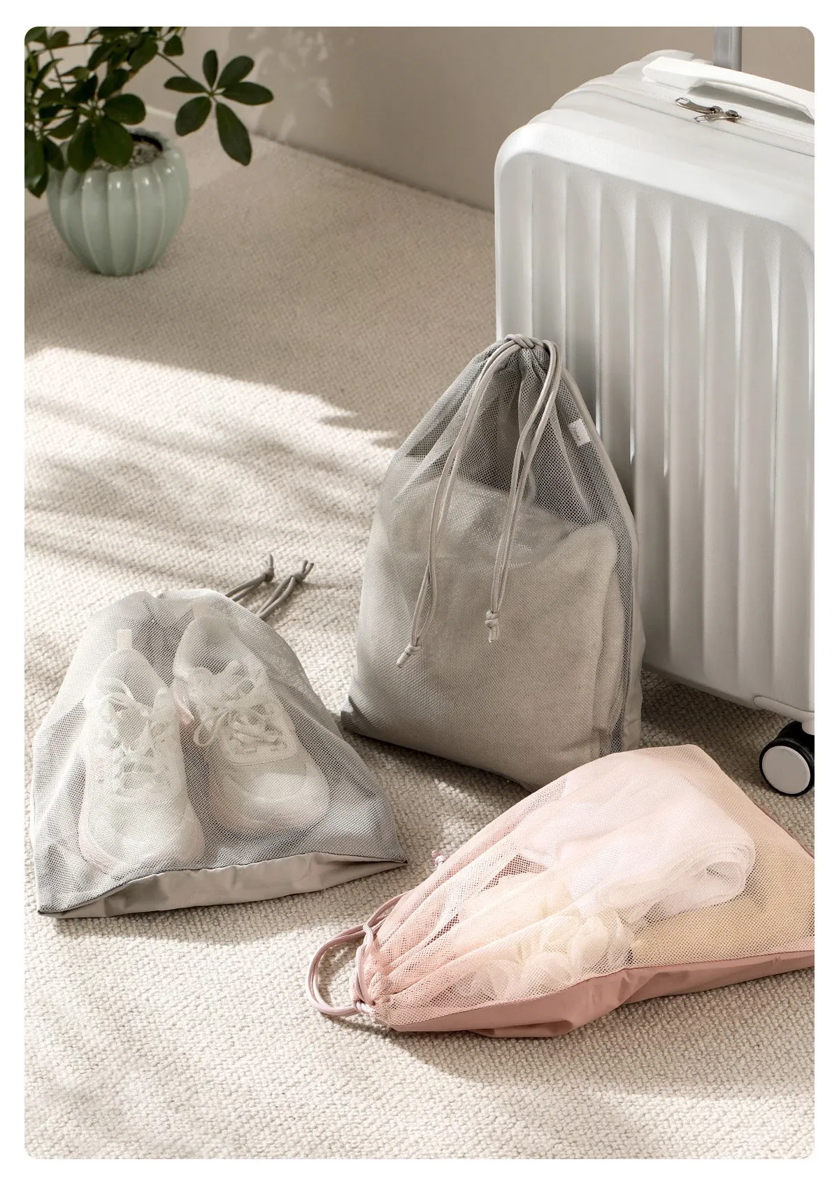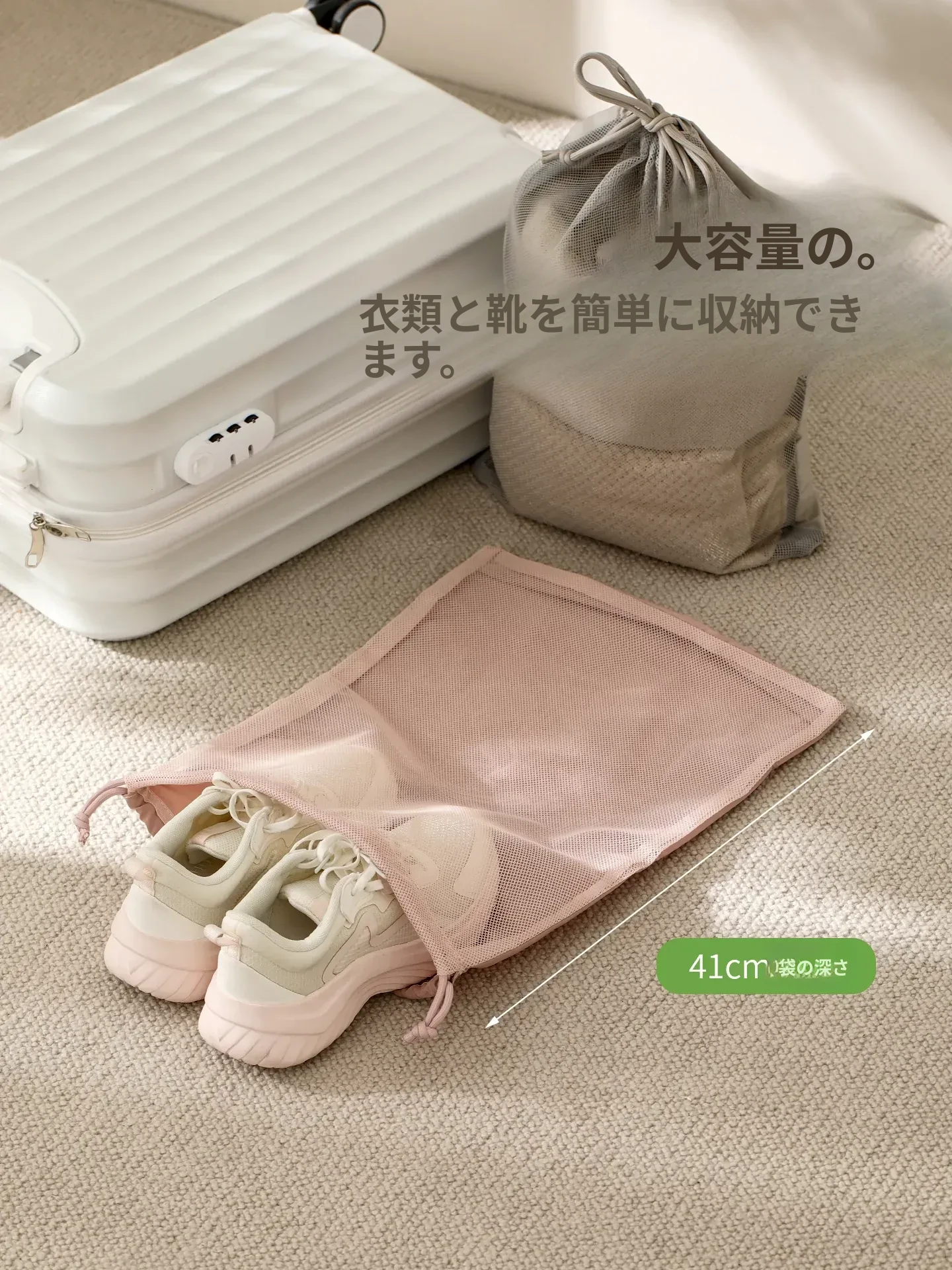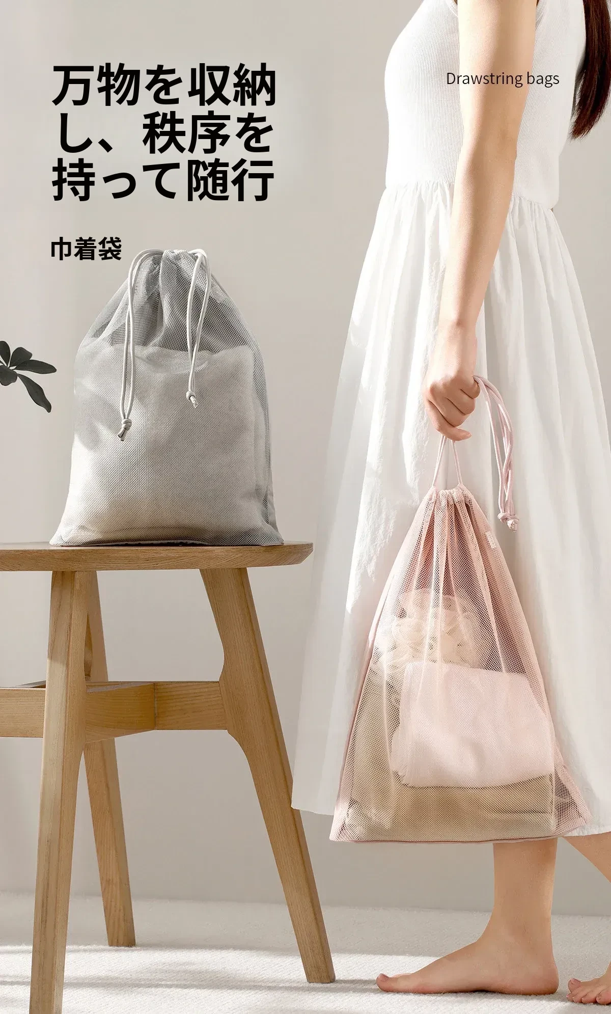 FaSoLa 旅行用束口袋 - 大容量透明メッシュ収納バッグ!衣類をスマートに整理でき、出張や旅行に最適。便利さとスタイルを兼ね備えたアイテムです!