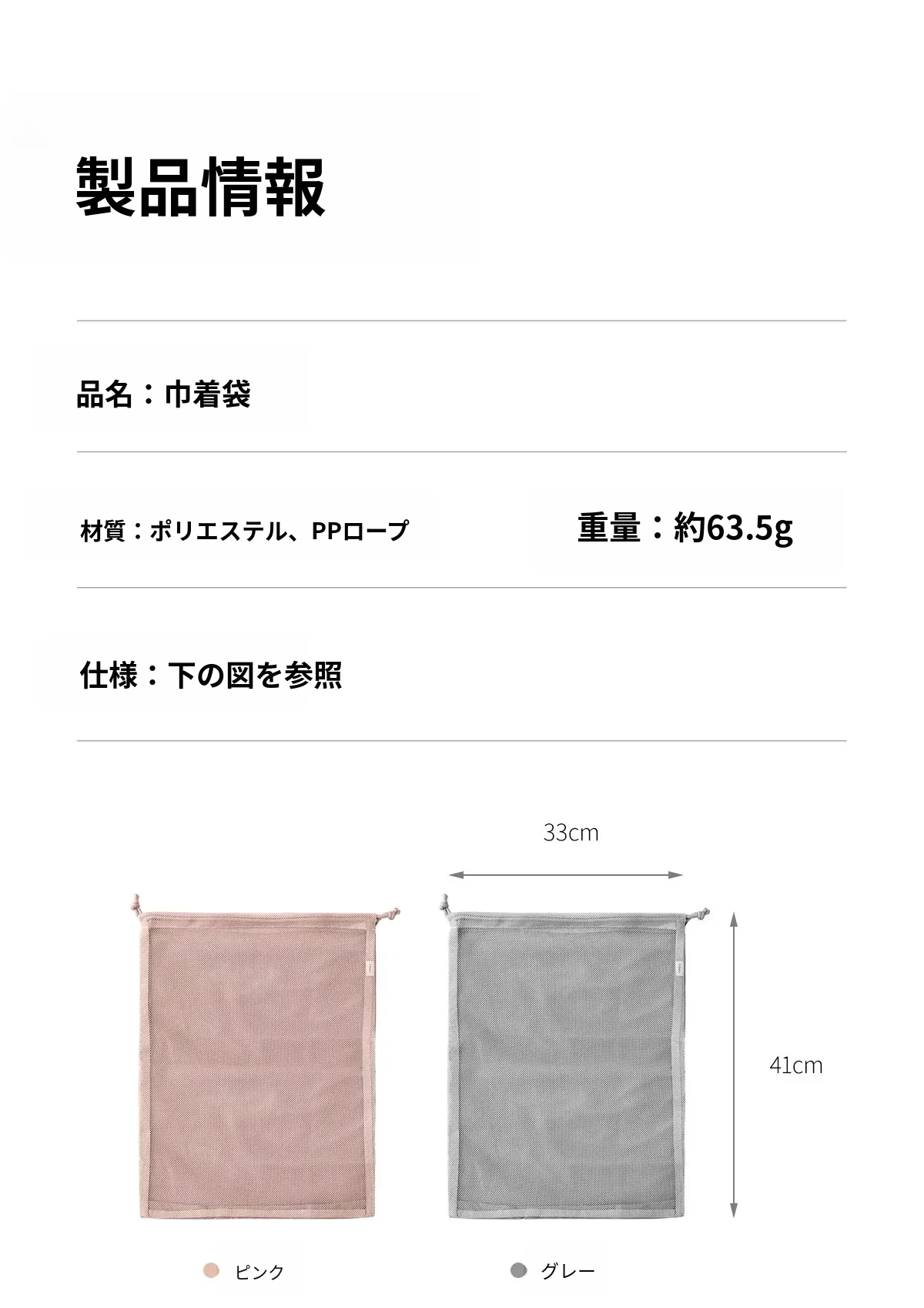 巾着袋ピンク(1個)+巾着袋グレー(1個)