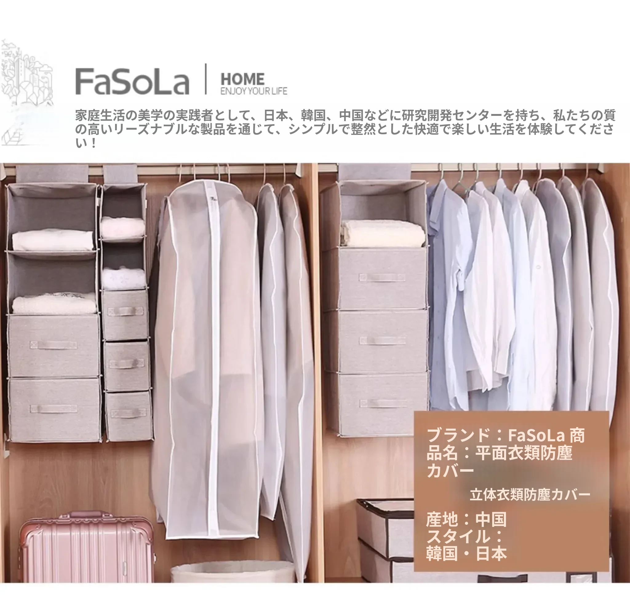 FaSoLa透明防水防潮衣服収納バッグ 大容量ハンガー式防塵カバー スーツや衣類をしっかり守る!お家の整理整頓に最適なアイテムです。