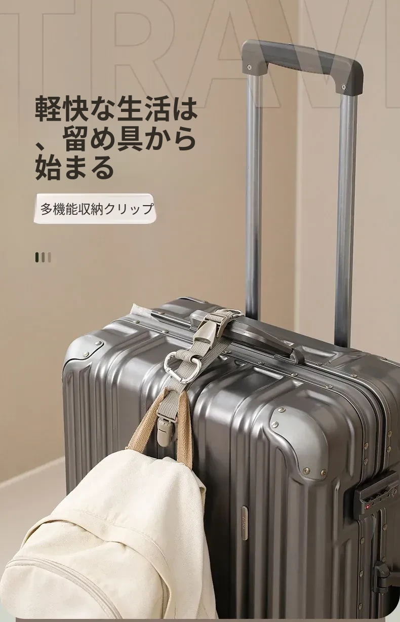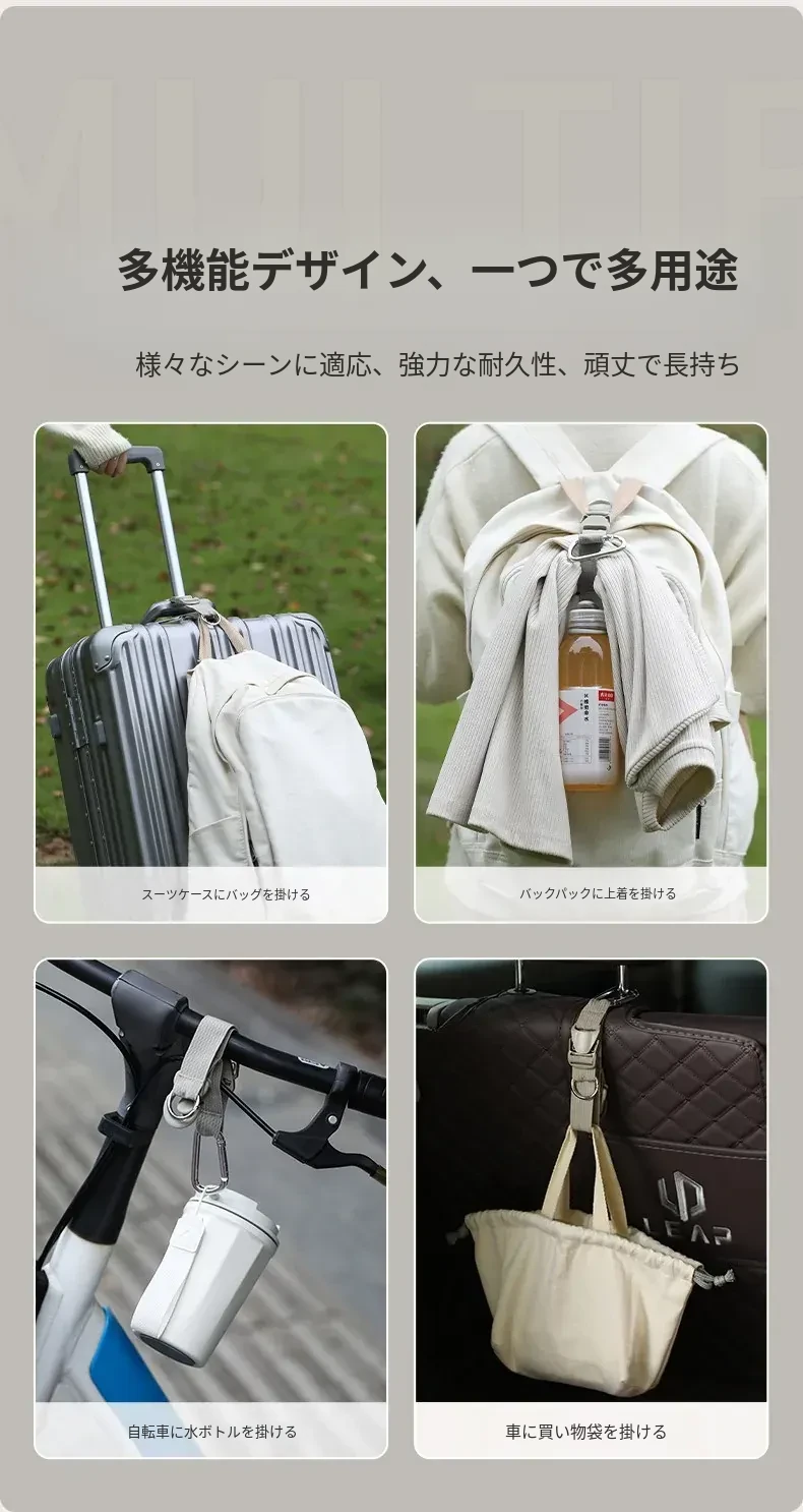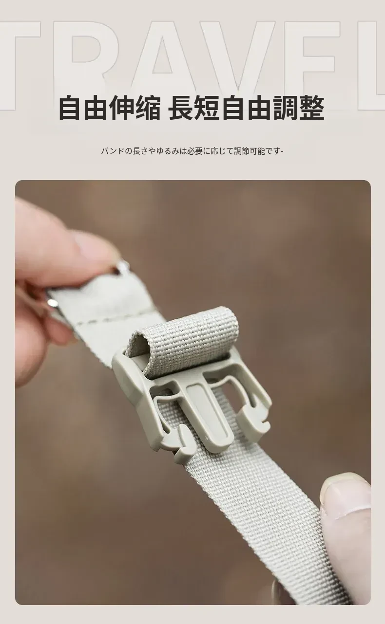 FaSoLa多機能バッグ用外付けカラビナ付きトラベルバンド - スーツケースやバックパックに最適!アウトドアにぴったりな便利な結束バンドで、荷物をしっかり固定できます。旅行やキャンプに欠かせないアイテム!