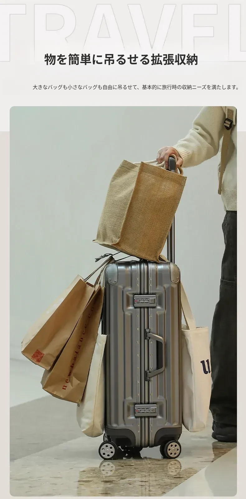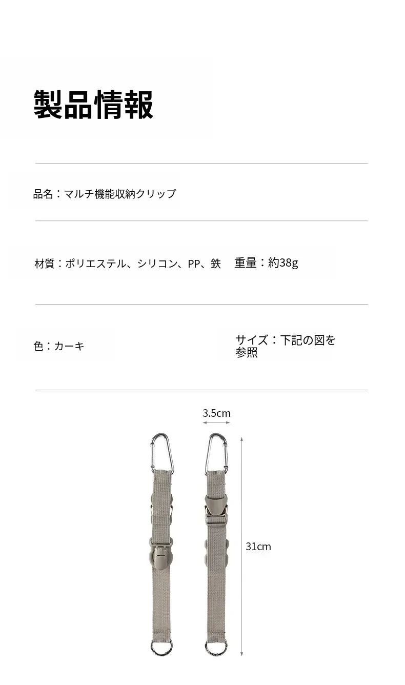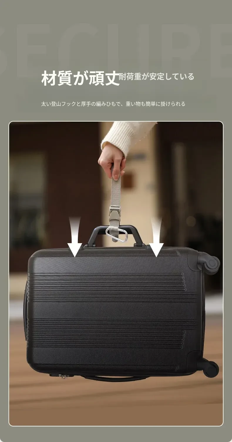 FaSoLa多機能バッグ用外付けカラビナ付きトラベルバンド - スーツケースやバックパックに最適!アウトドアにぴったりな便利な結束バンドで、荷物をしっかり固定できます。旅行やキャンプに欠かせないアイテム!