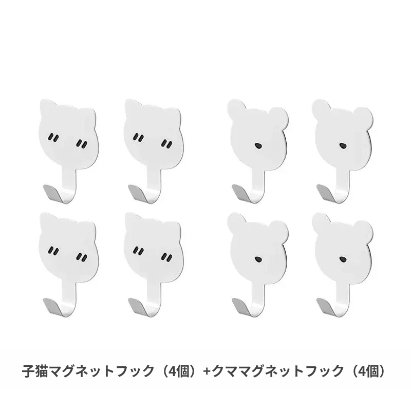 猫のマグネットフック(4個)+クマのマグネットフック(4個)