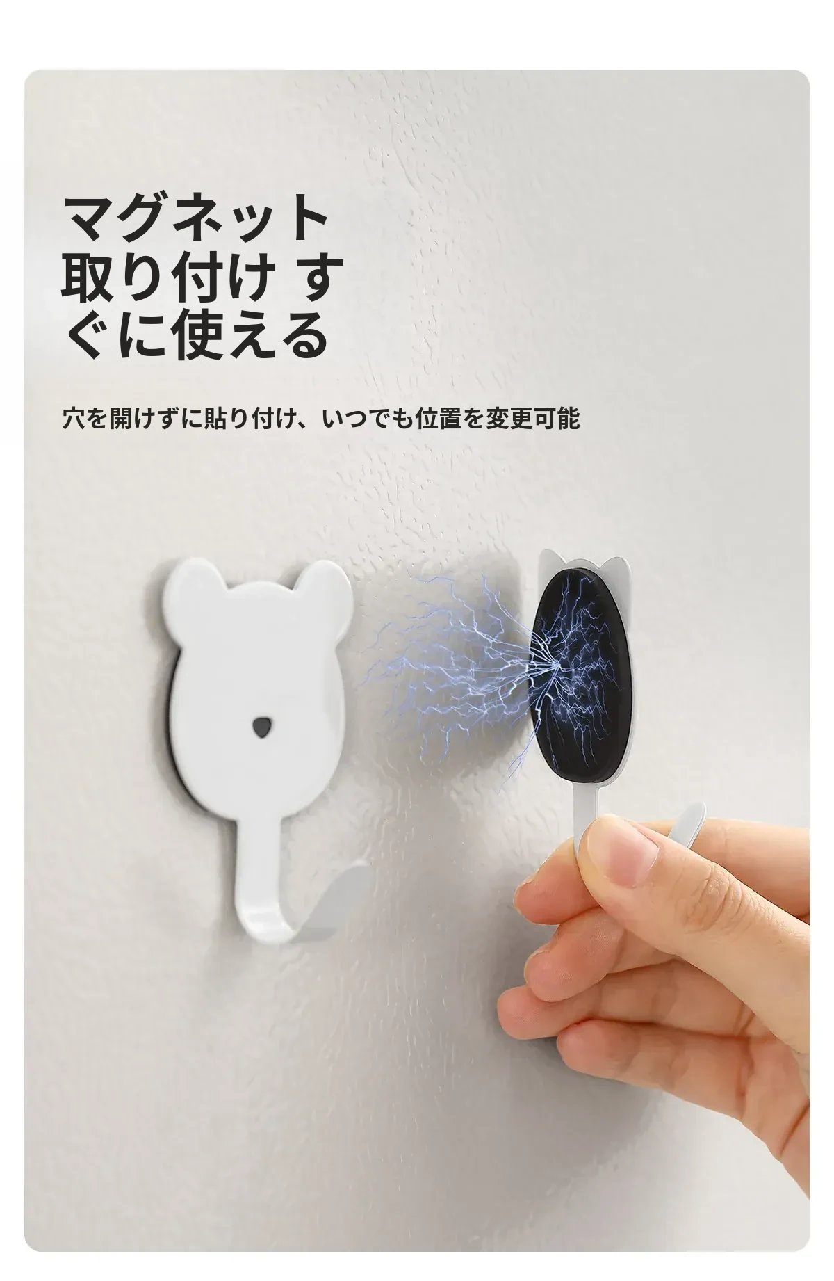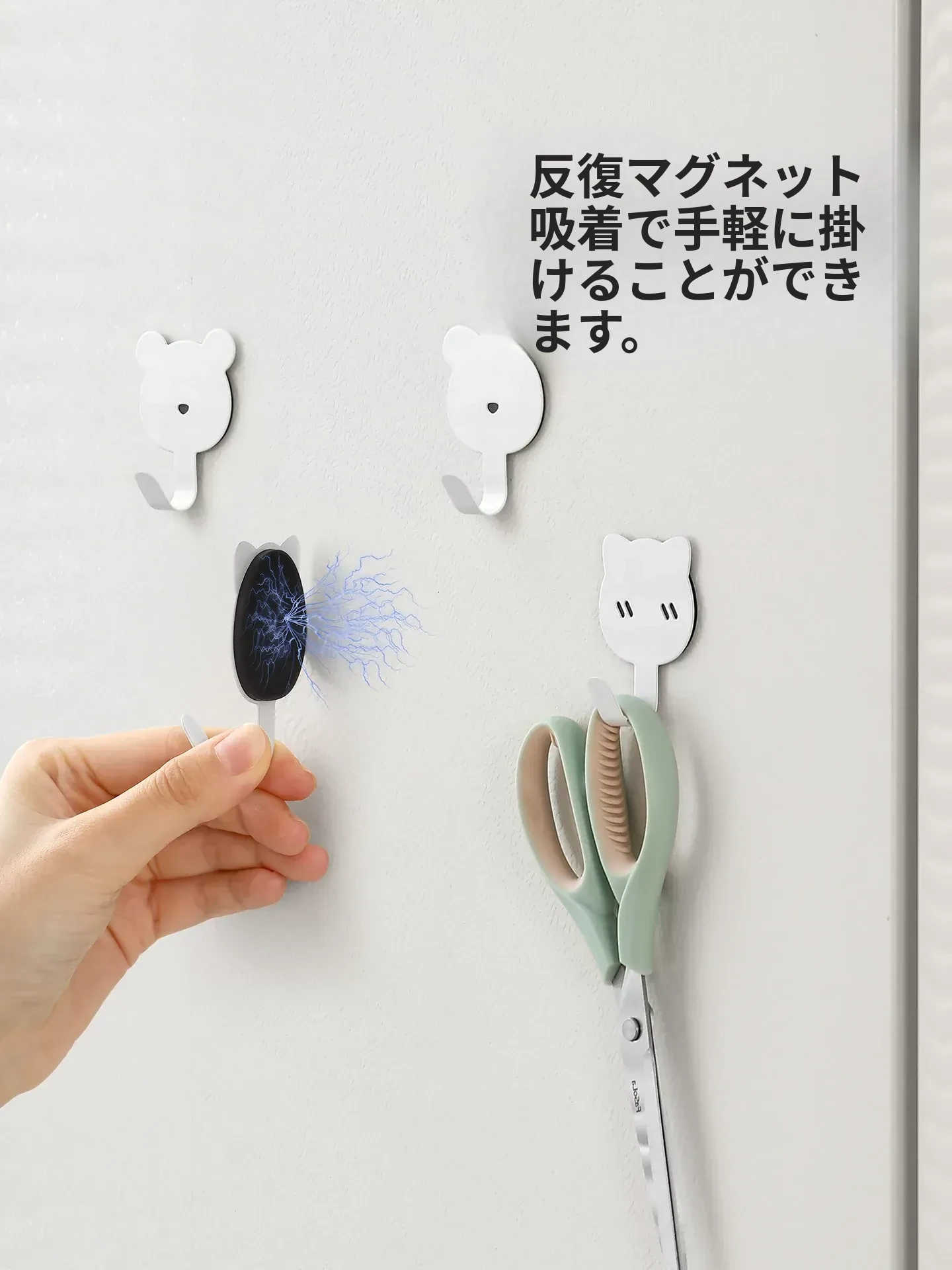 FaSoLaマグネット吸着収納フック - 穴あけ不要!冷蔵庫やキッチン、バスルームのドア裏に最適な無痕マグネットフックで、整理整頓を簡単に実現!