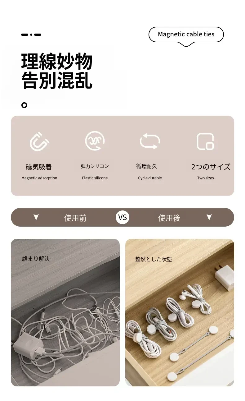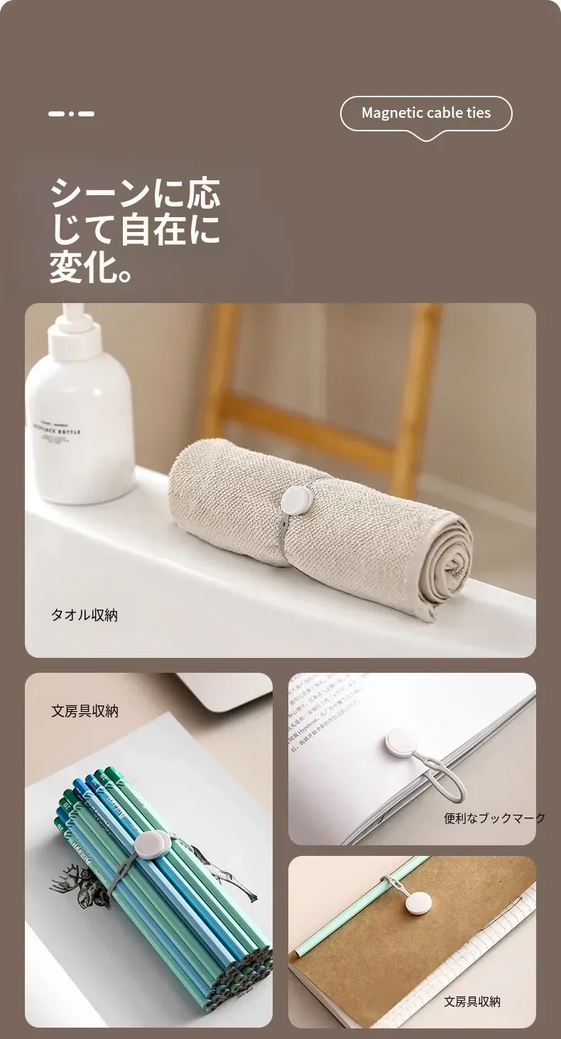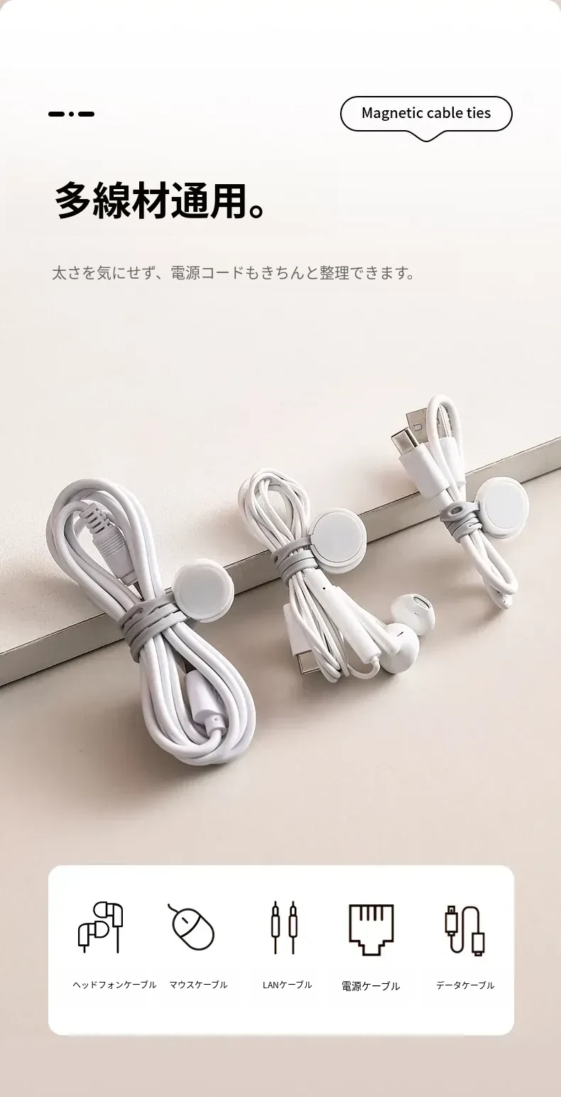 FaSoLaデータケーブルマグネット収納バンドシリコン多機能ケーブル整理器 充電ケーブル用バンド整理の必需品!あなたの生活をスマートにする整理整頓アイテム!