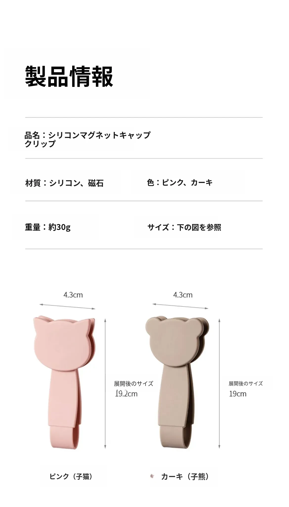 シリコンマグネットキャップクリップカーキ