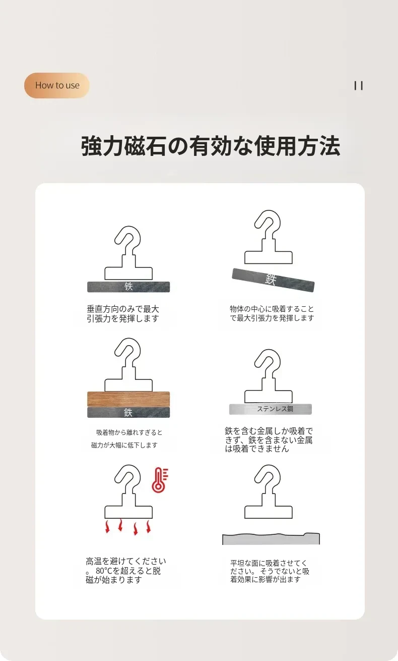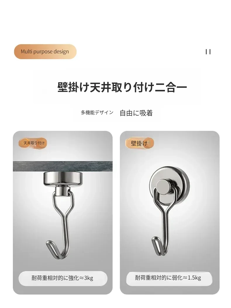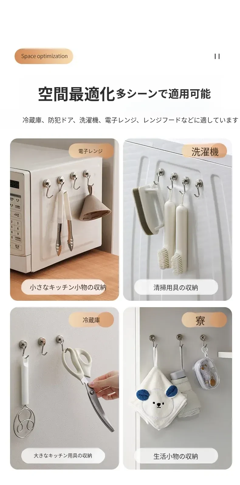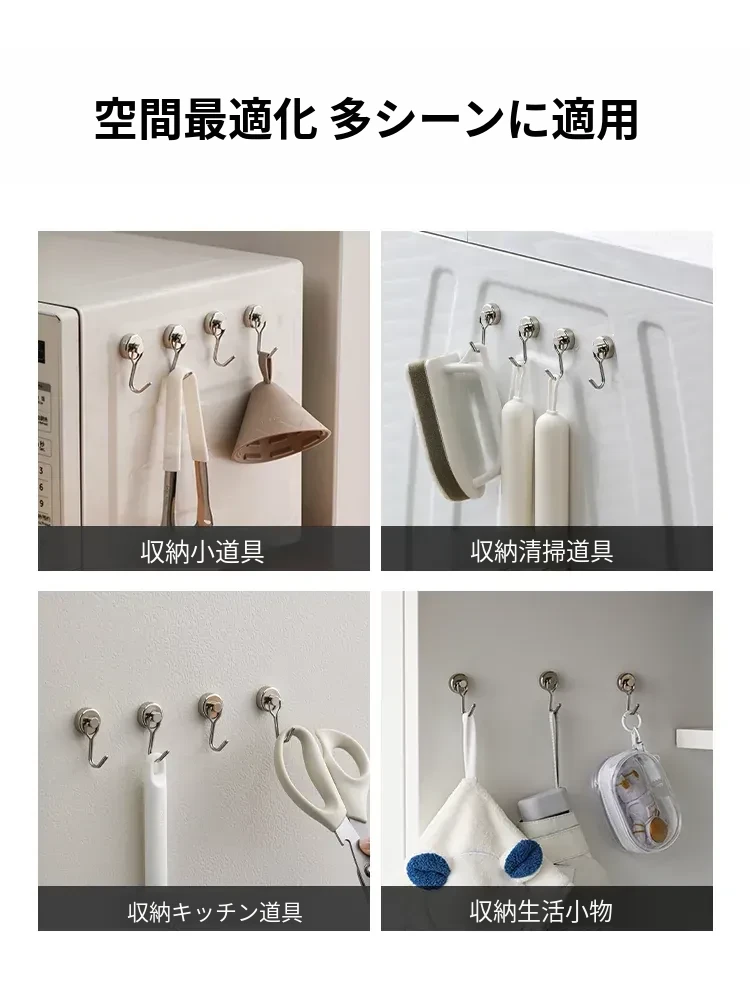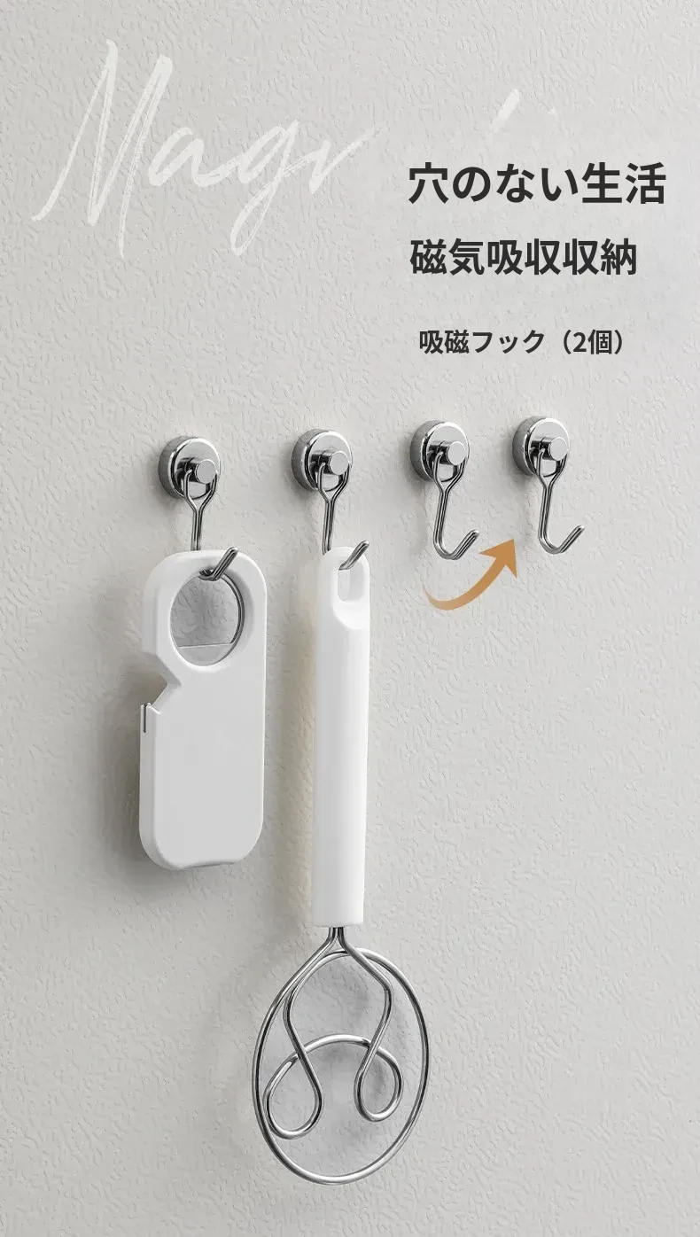 FaSoLaマグネットフック - 冷蔵庫やキッチン、バスルームに最適!傷をつけずに取り付けられる強力マグネット式キー掛けフックで、すっきり整理整頓!あなたの生活をもっと便利にします。