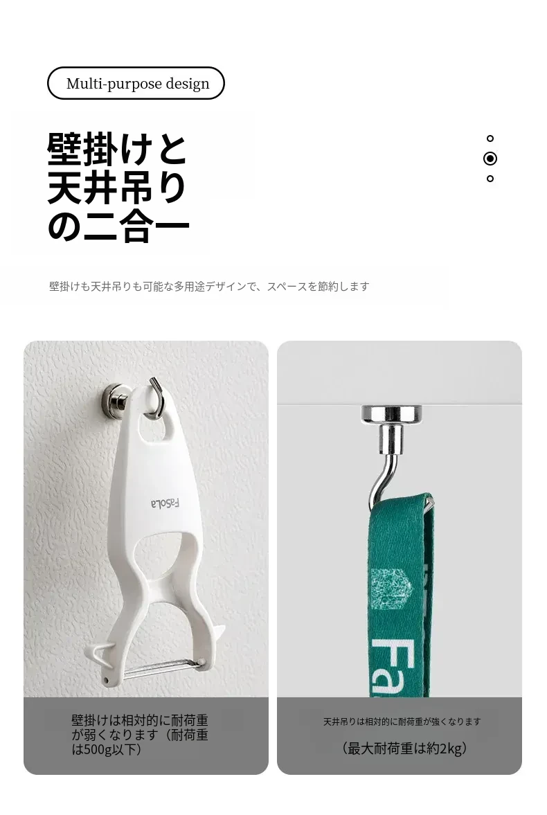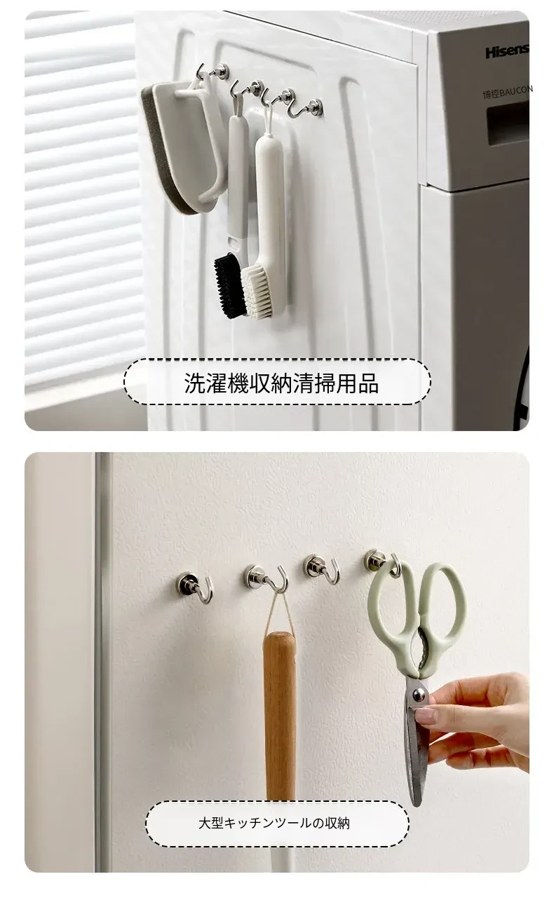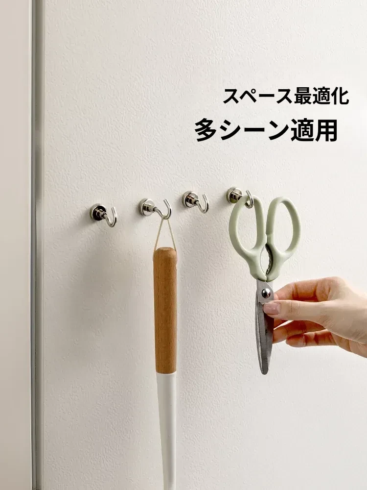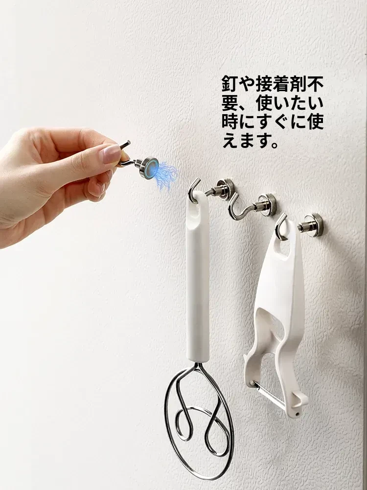 FaSoLaマグネットフック - 強力吸引力で壁に傷をつけず取り付け簡単!バスルームやキッチン、ドアの裏側にもぴったり。無痕で美しく、あらゆる場所をスッキリ整理!