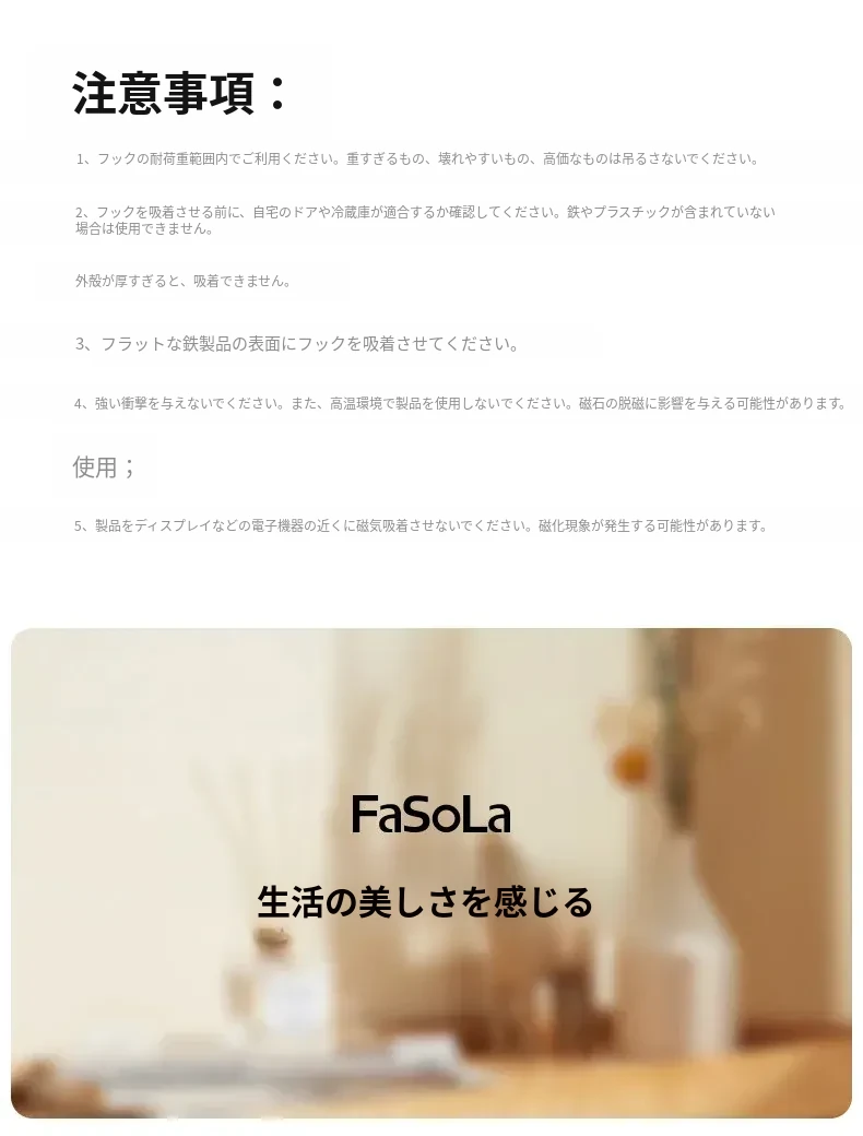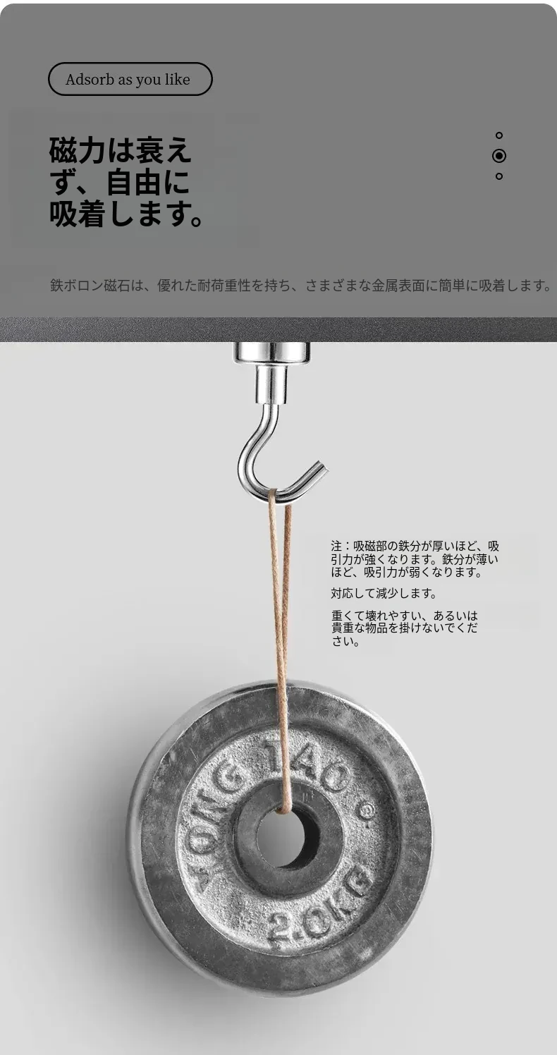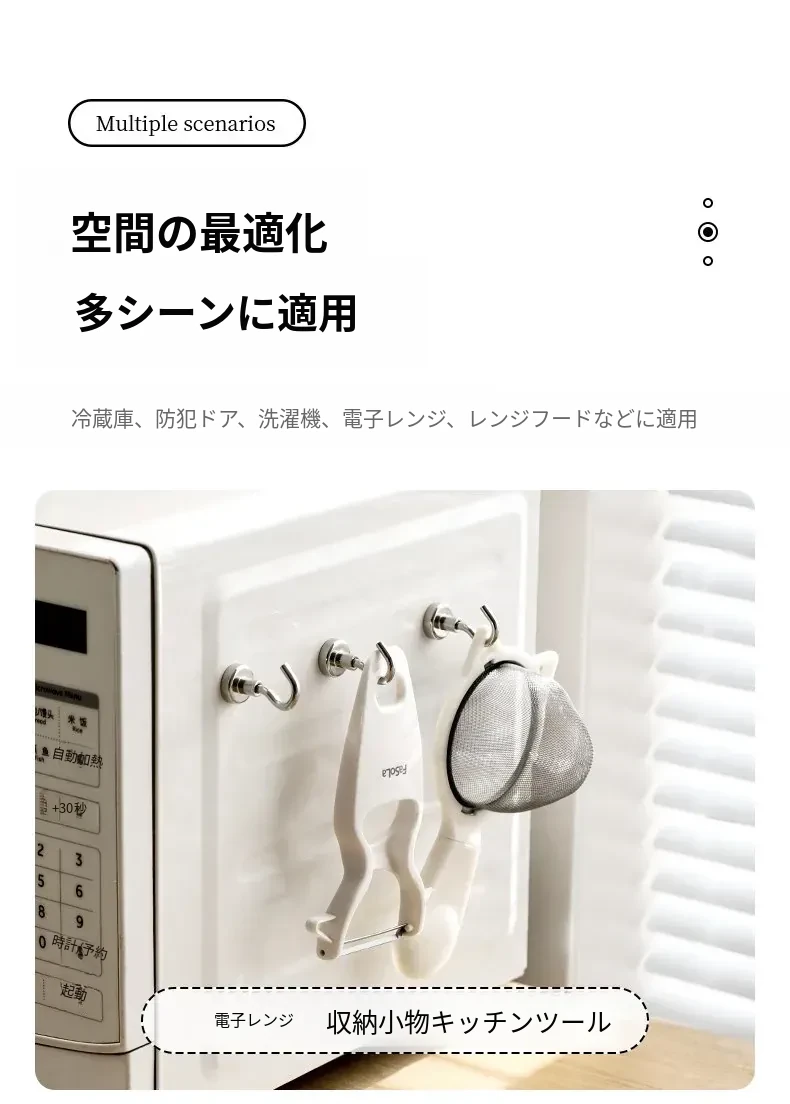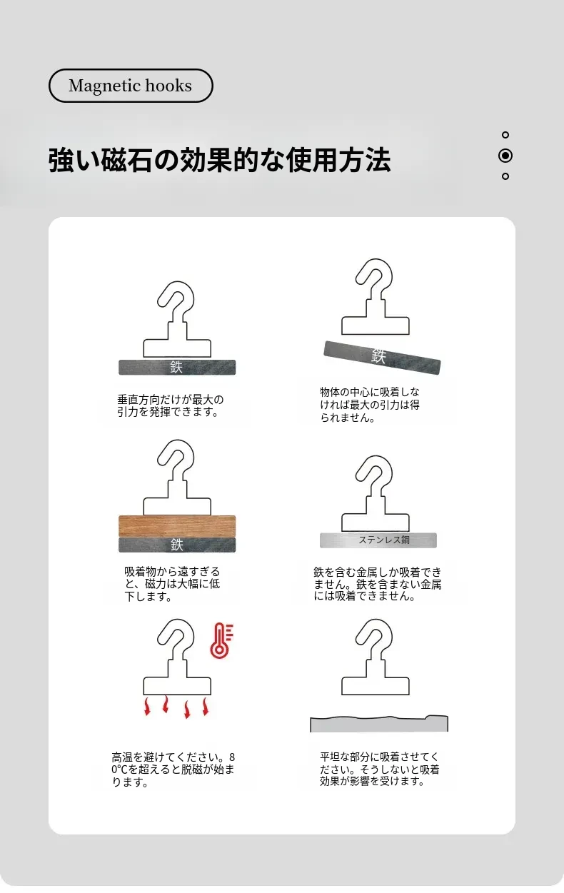 FaSoLaマグネットフック - 強力吸引力で壁に傷をつけず取り付け簡単!バスルームやキッチン、ドアの裏側にもぴったり。無痕で美しく、あらゆる場所をスッキリ整理!