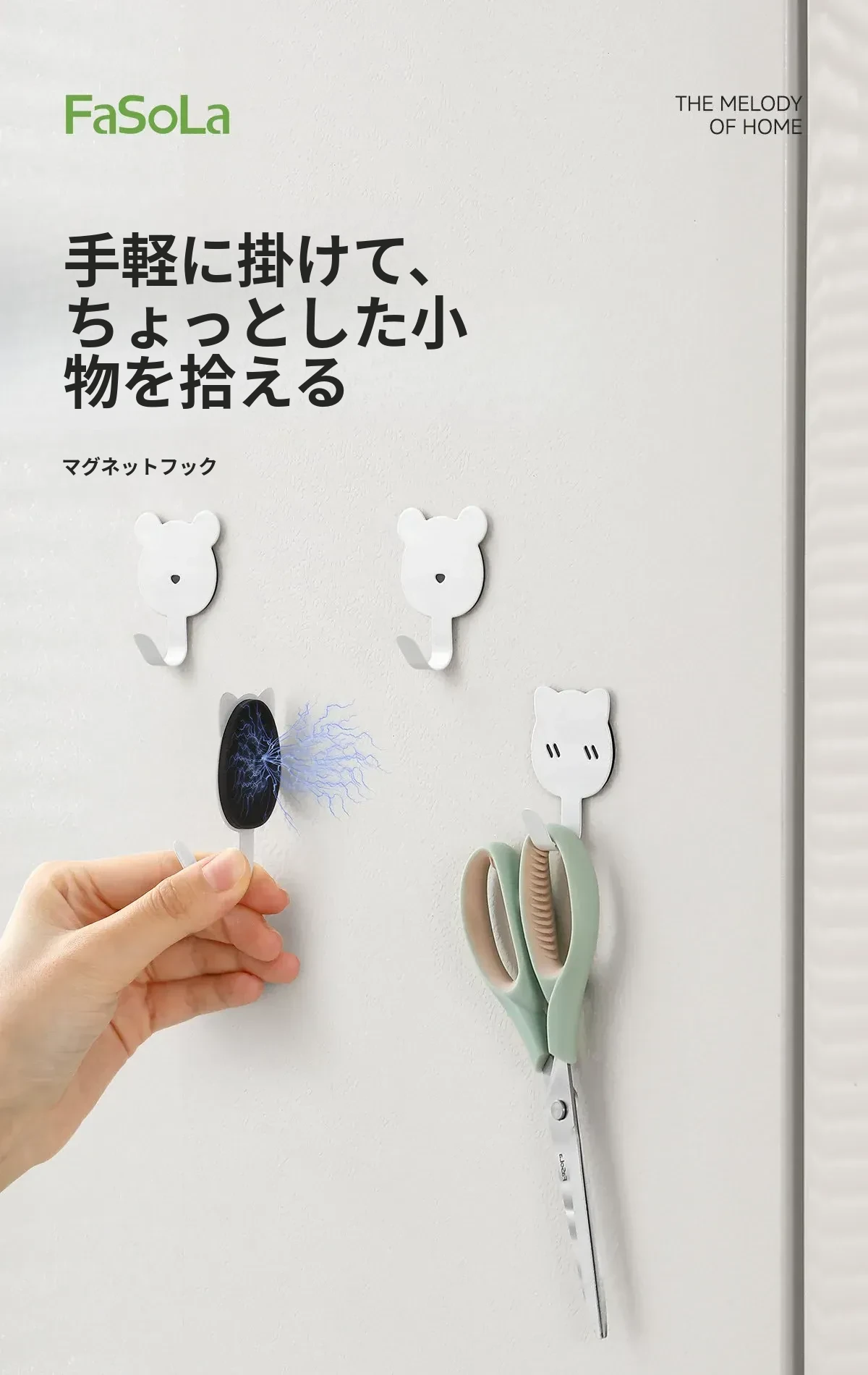 FaSoLa 磁気吸着フック - 壁に取り付ける新しい収納方法!冷蔵庫の側面やキッチン、バスルームに最適。穴を開けずに簡単取り付け、しっかり固定できるマグネット式。整理整頓をサポートします!