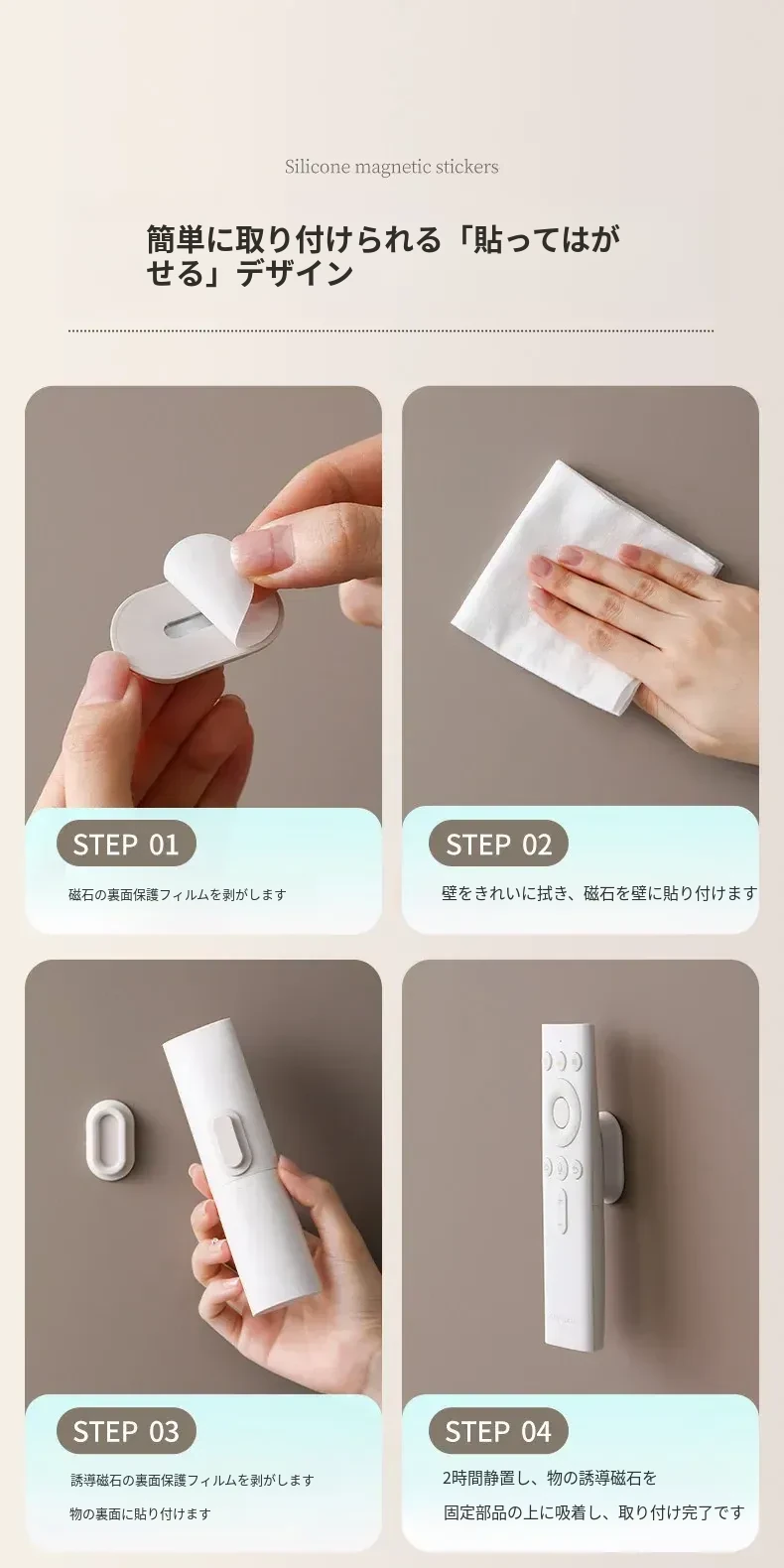 FaSoLaマグネットリモコン収納ホルダー - 壁掛け式強力マグネットシリコンフックで、穴あけ不要!テレビやエアコンのリモコンをすっきり整理、簡単アクセスで生活を便利に!