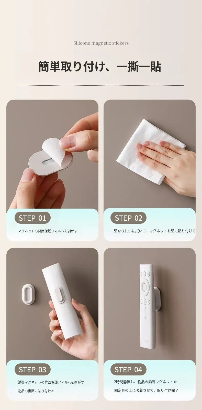 FaSoLaリモコンマグネットシール テレビ・エアコン用リモコン収納 壁掛け式 強力マグネットフック 取り付け簡単!穴あけ不要でお部屋をスッキリ整理!