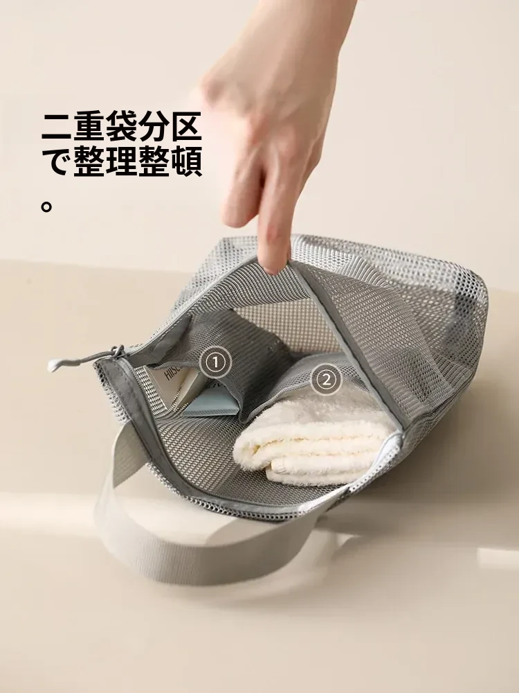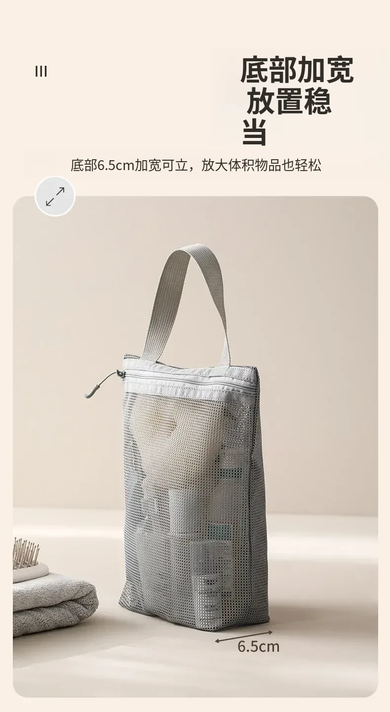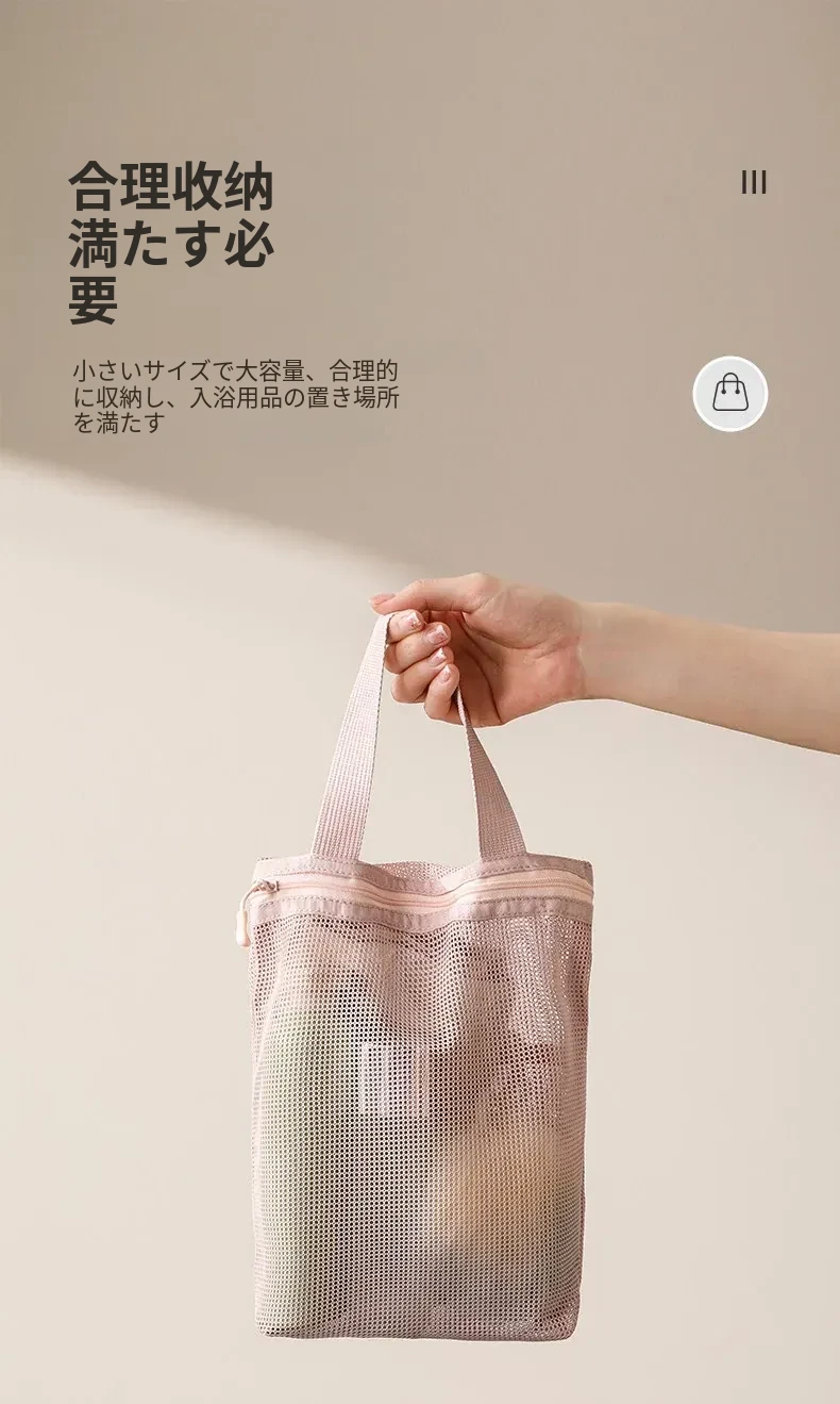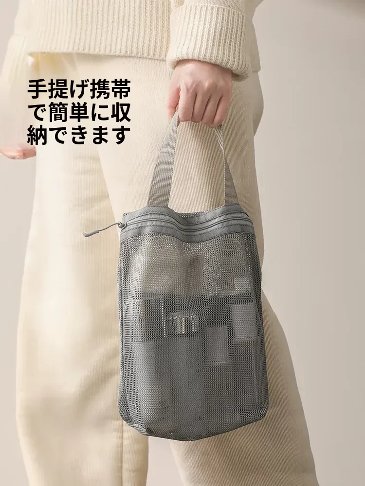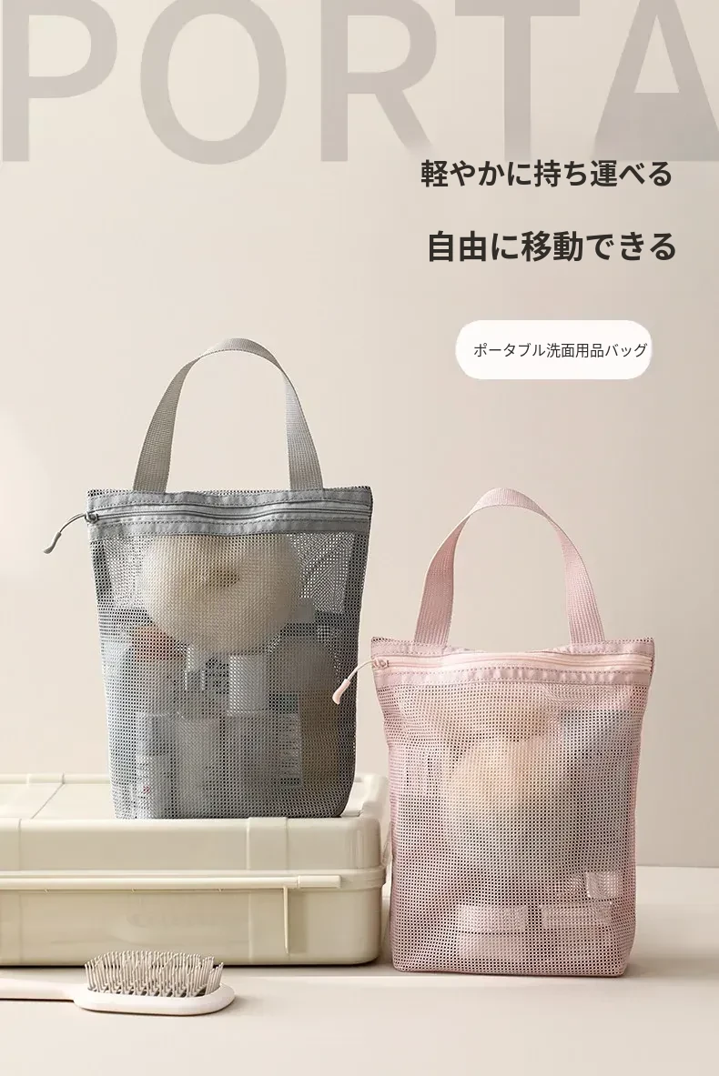 FaSoLa メッシュトイレタリーケース 男女兼用 旅行・出張に最適なポータブル化粧ポーチ 浴室収納バッグ 手提げ型水切り袋で、スマートな整理整頓を実現!