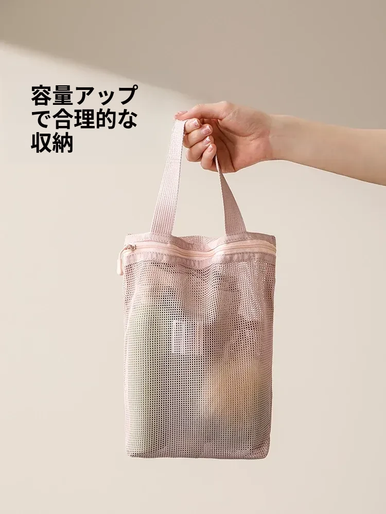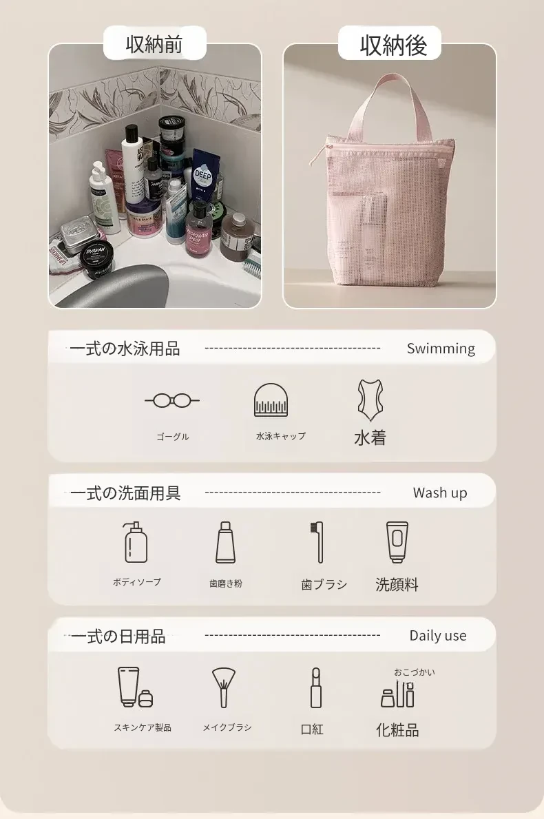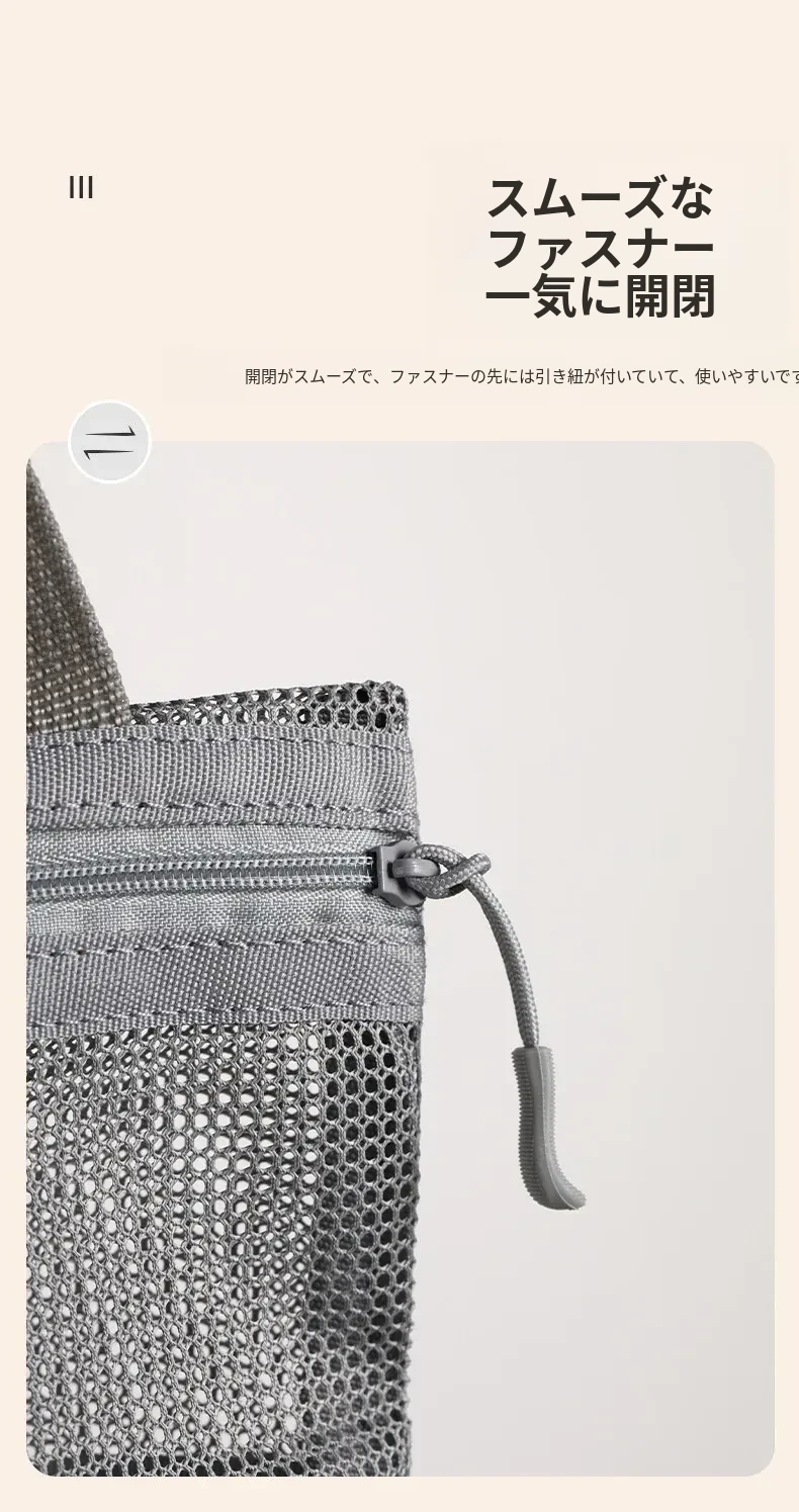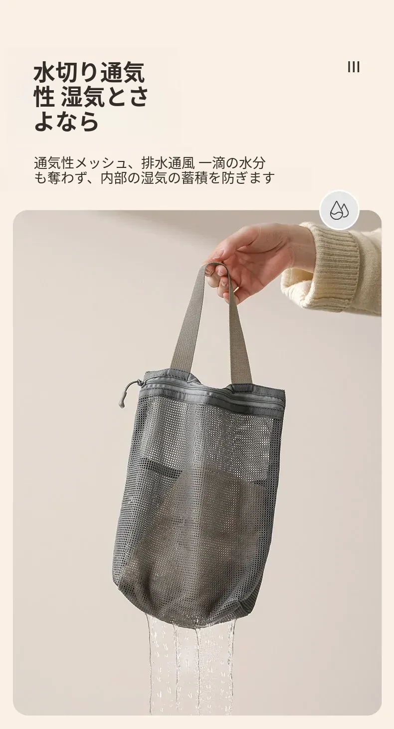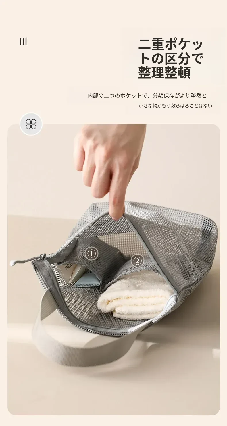FaSoLa メッシュトイレタリーケース 男女兼用 旅行・出張に最適なポータブル化粧ポーチ 浴室収納バッグ 手提げ型水切り袋で、スマートな整理整頓を実現!