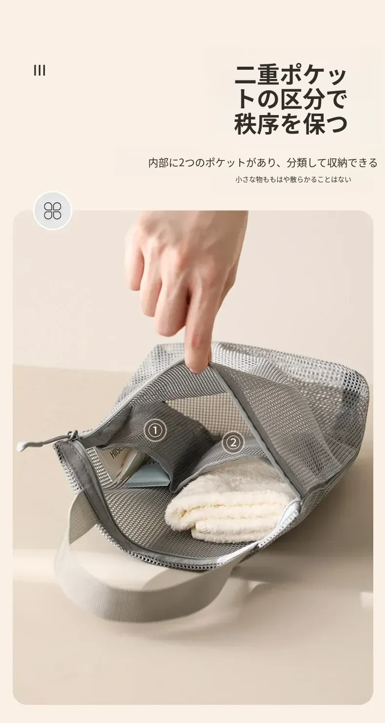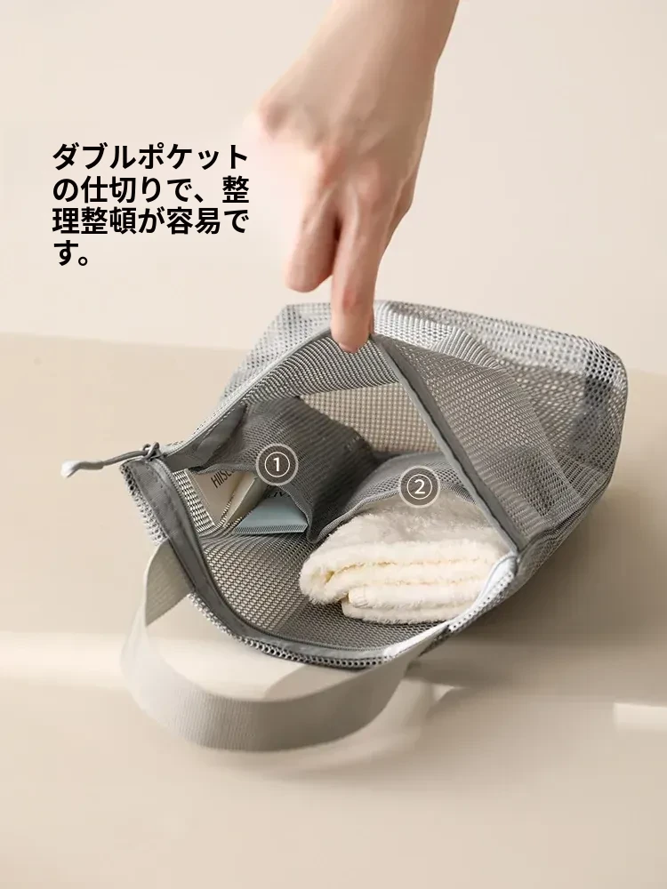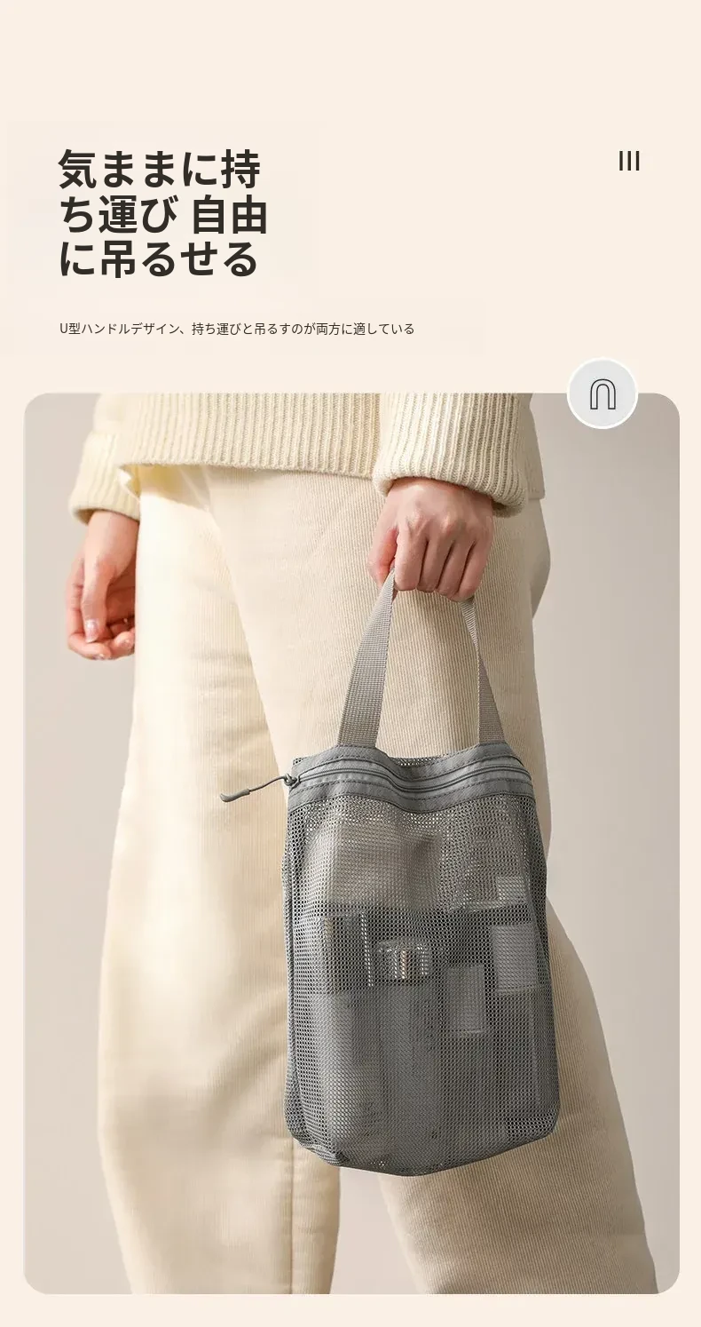 FaSoLaメッシュ洗面用ポーチ - 旅行や出張に最適なコンパクトな化粧ポーチ!持ち運び便利で、通気性抜群のデザイン。水泳や入浴時の収納にも最適!あなたの生活をもっと快適に。