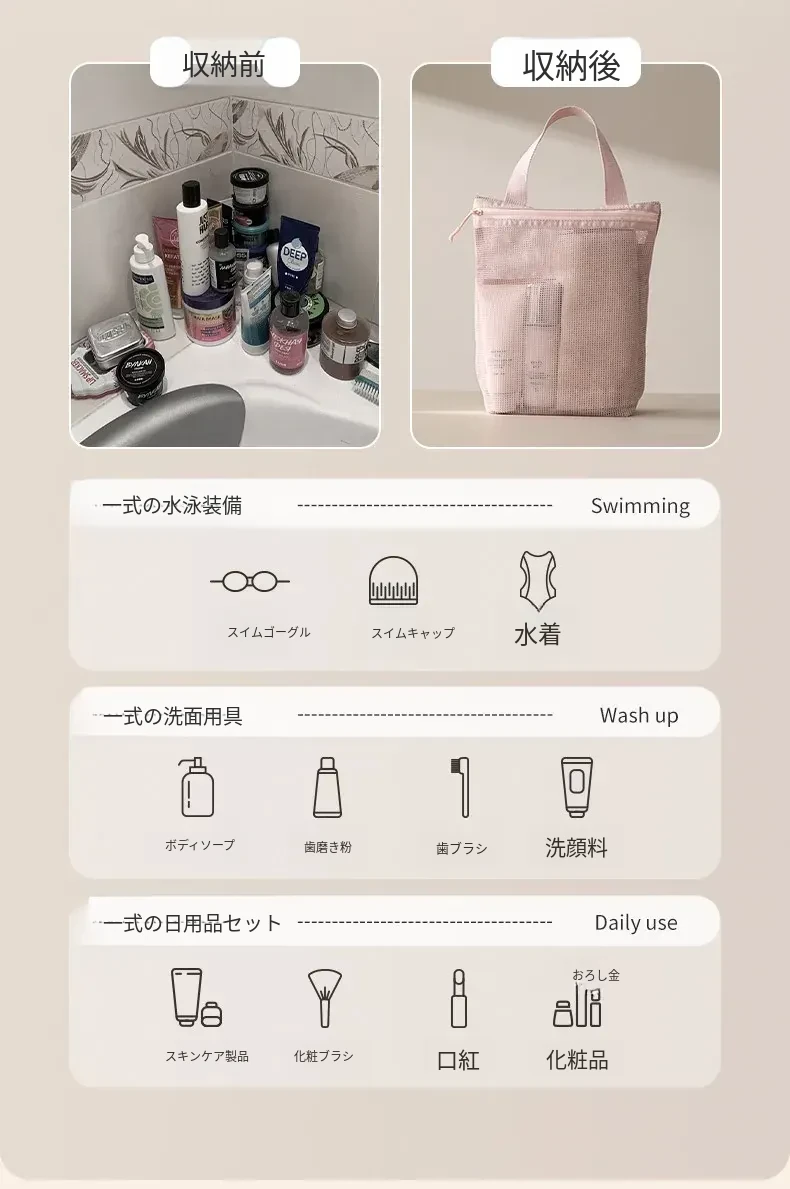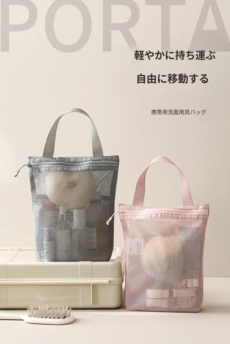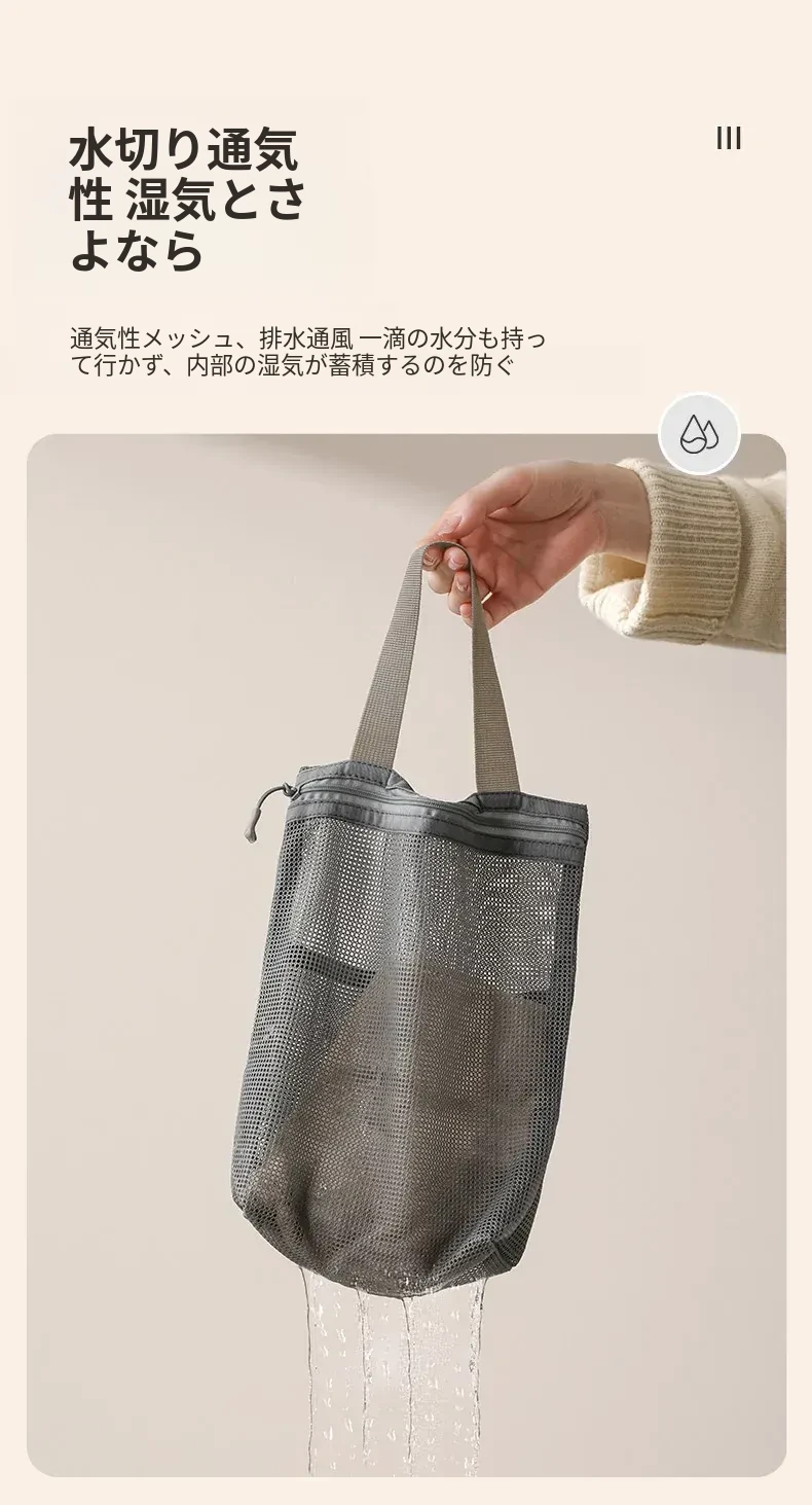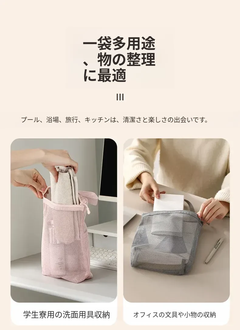 FaSoLaメッシュ洗面用ポーチ - 旅行や出張に最適なコンパクトな化粧ポーチ!持ち運び便利で、通気性抜群のデザイン。水泳や入浴時の収納にも最適!あなたの生活をもっと快適に。