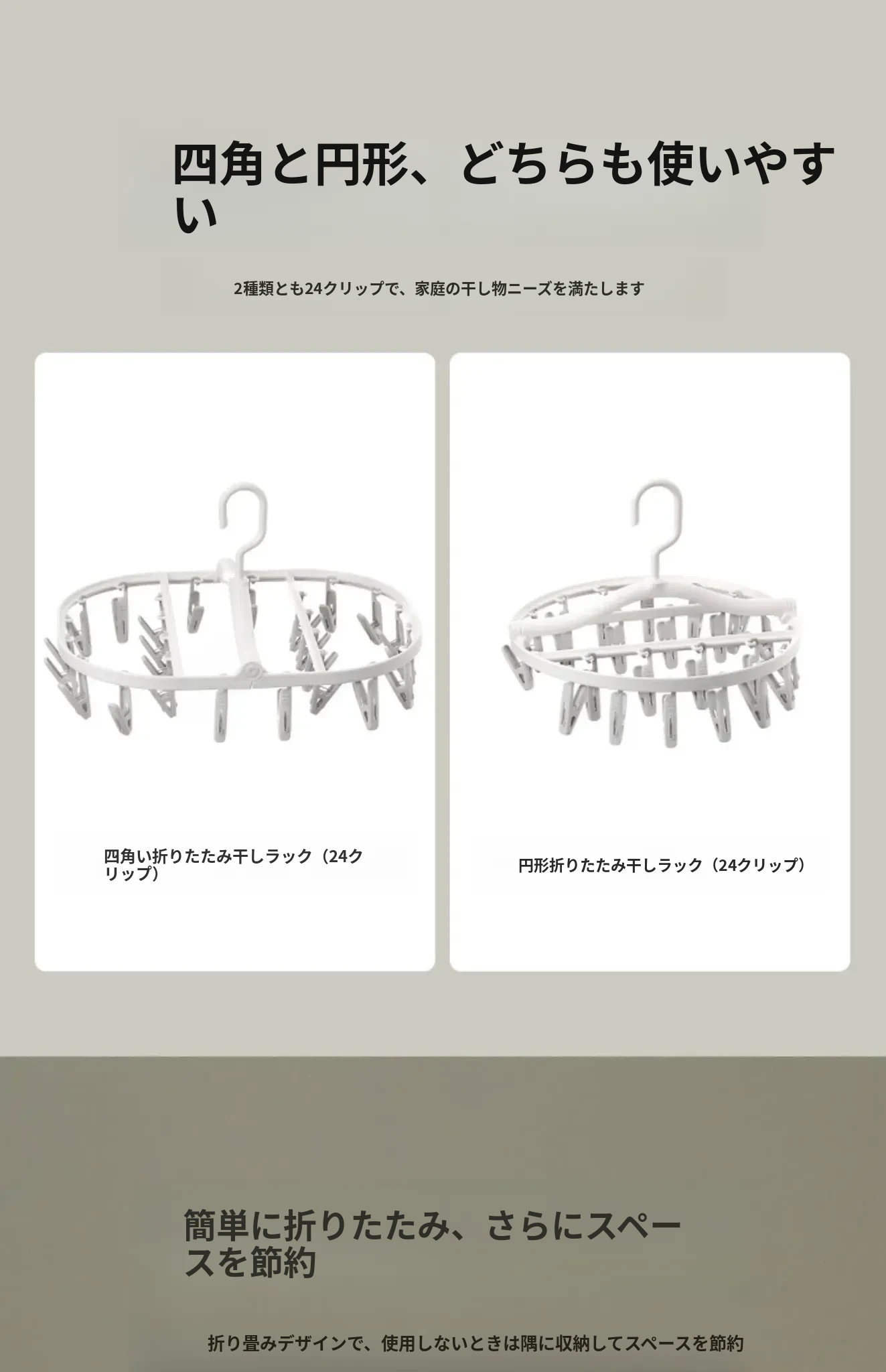 丸型折りたたみ干し架(24クリップ)