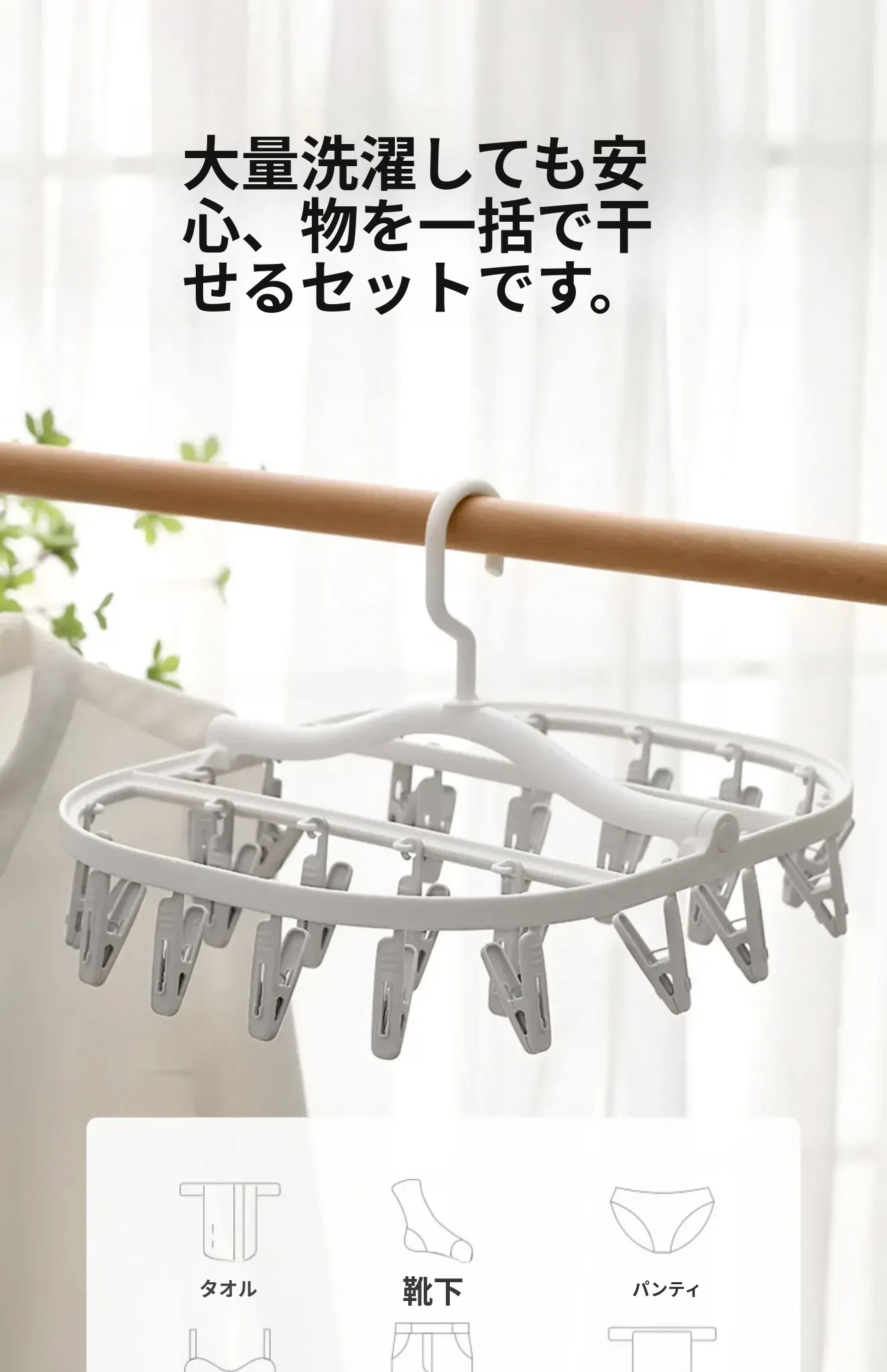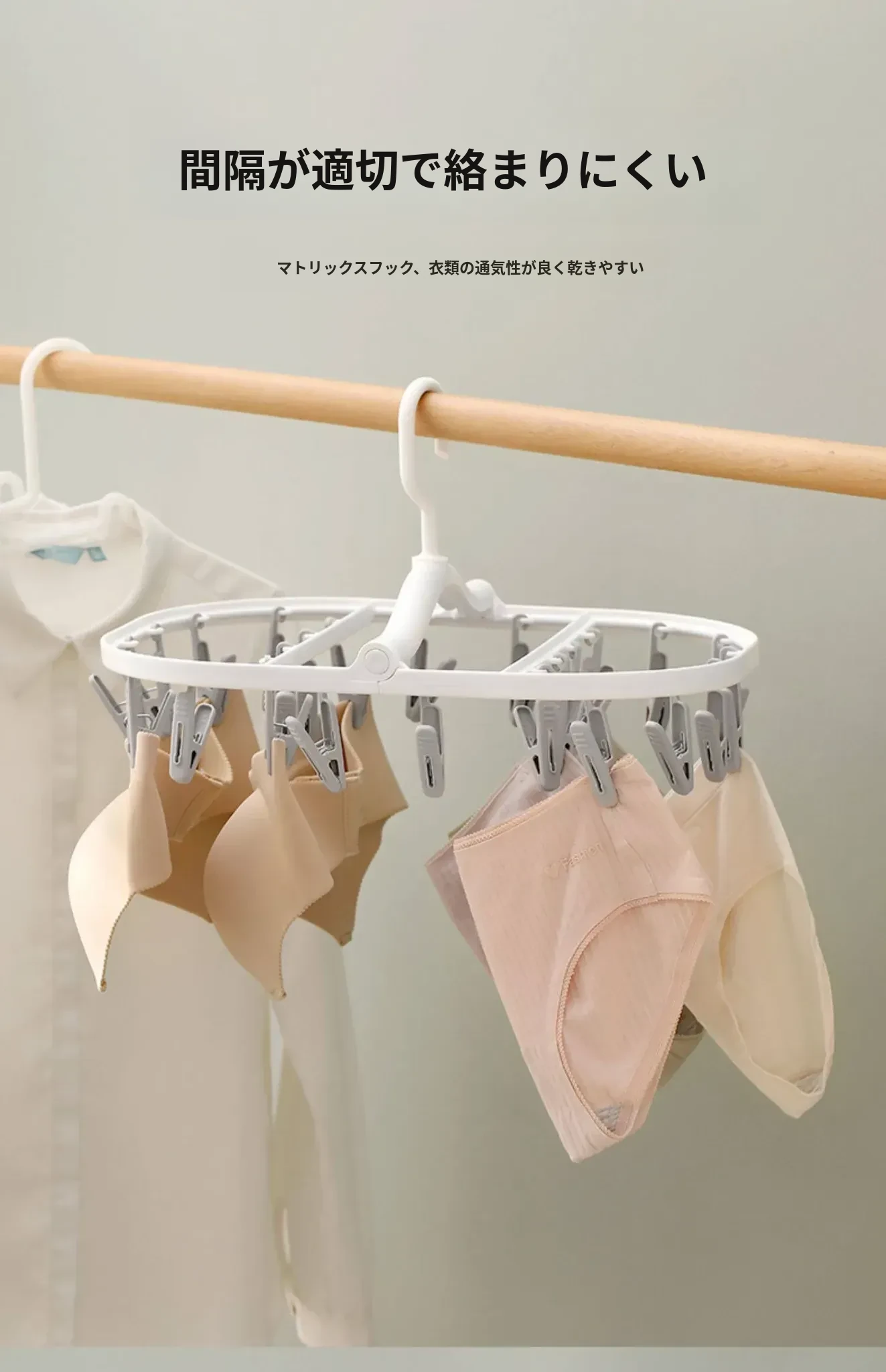 FaSoLaソックス干しハンガー 多機能クリップ付き 靴下・下着・インナーのための便利な乾燥ラック!おしゃれで実用的、スペースを節約する必需品!