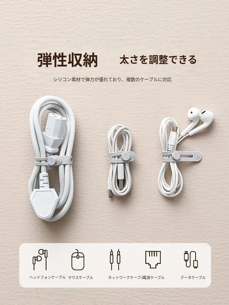 FaSoLaデータケーブル充電ケーブル収納多機能整理ツール!シリコン製のイヤホン整理バンドで絡まりを防止!スマートな収納で、あなたのデジタルライフを快適にサポートします!