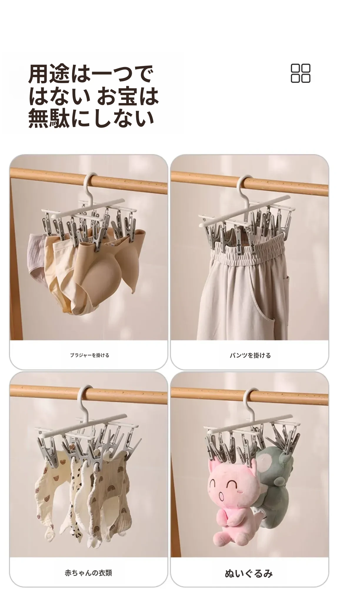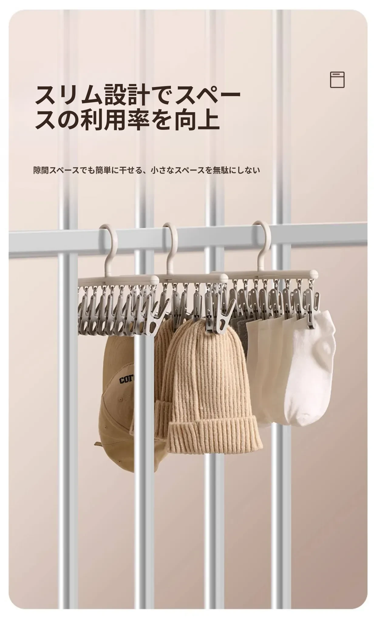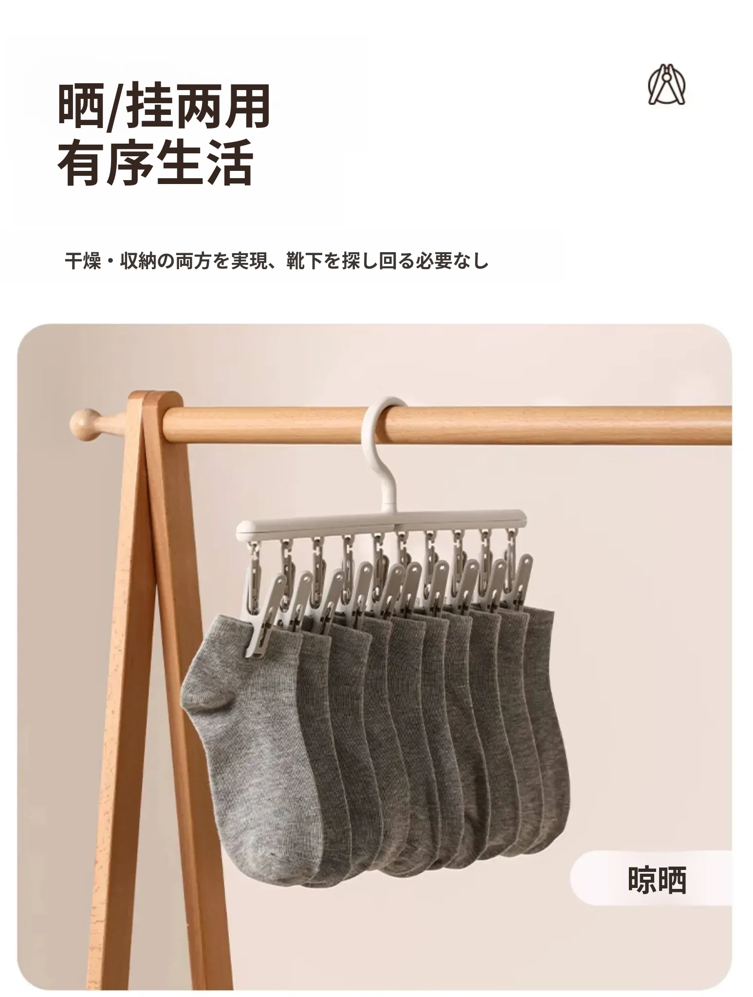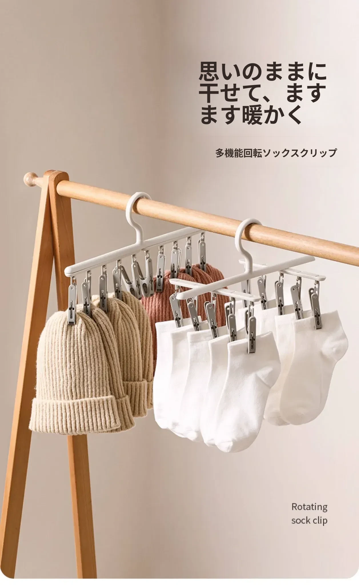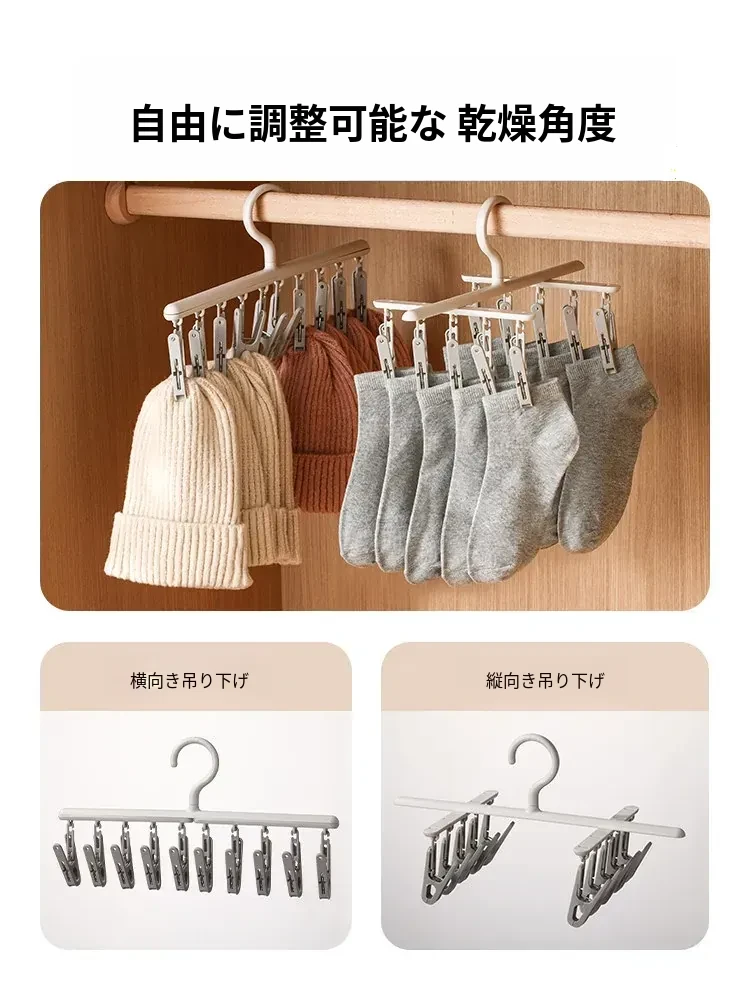 FaSoLa洗濯干しラック - 革新的な靴下干し神器!多機能で、学生寮に最適な下着・靴下用ハンギングラック。コンパクトで使いやすく、しっかりとしたクリップで安心!
