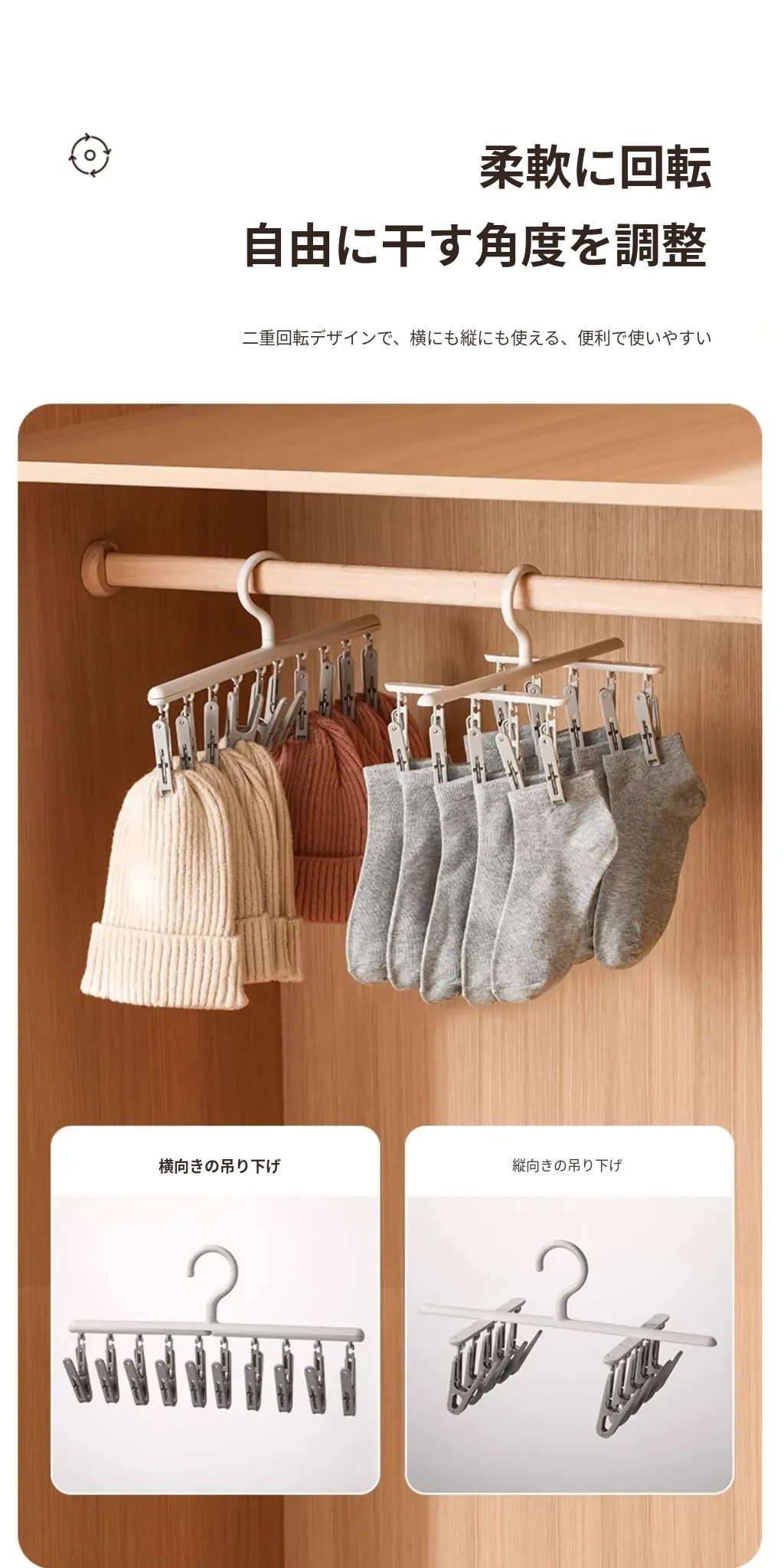 多機能回転ソックスクリップ(10クリップ)2個セット