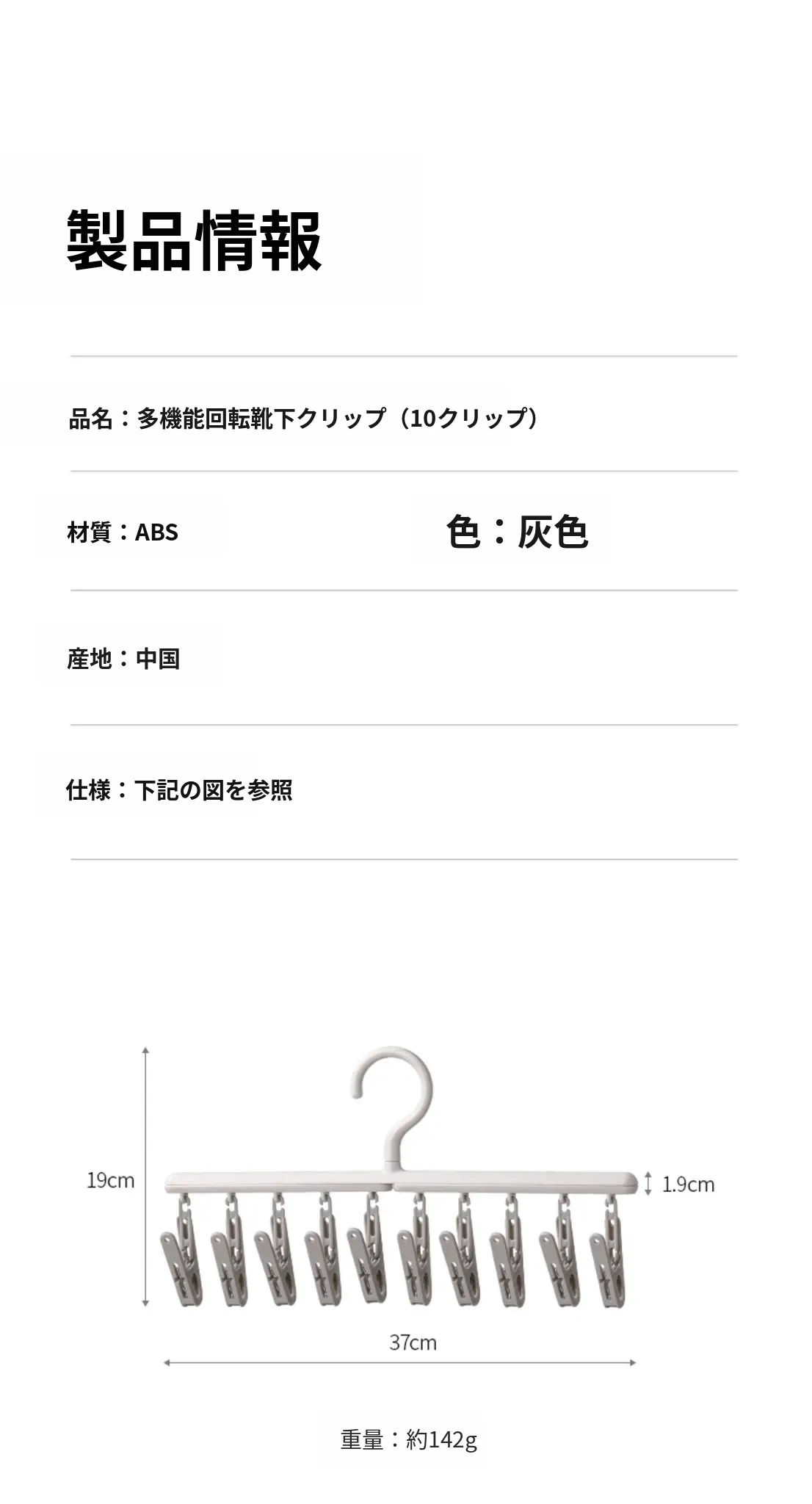 多機能回転ソックスクリップ(10クリップ)1個セット