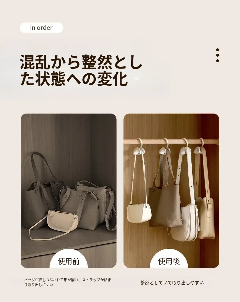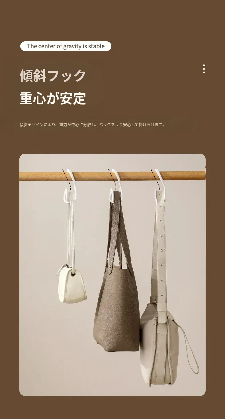 FaSoLaバッグフック アーチ型バッグハンガー!ネクタイやスカーフ、帽子も掛けられる衣類収納の必需品。ベルトや多機能ハンガーとしても活躍する、スマートな収納アイテムです!