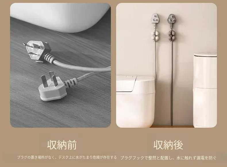 FaSoLaマルチ機能プラグフック - 穴あけ不要!強力粘着で電源コードをスッキリ収納、キッチンの壁をおしゃれに整理整頓する必需品!