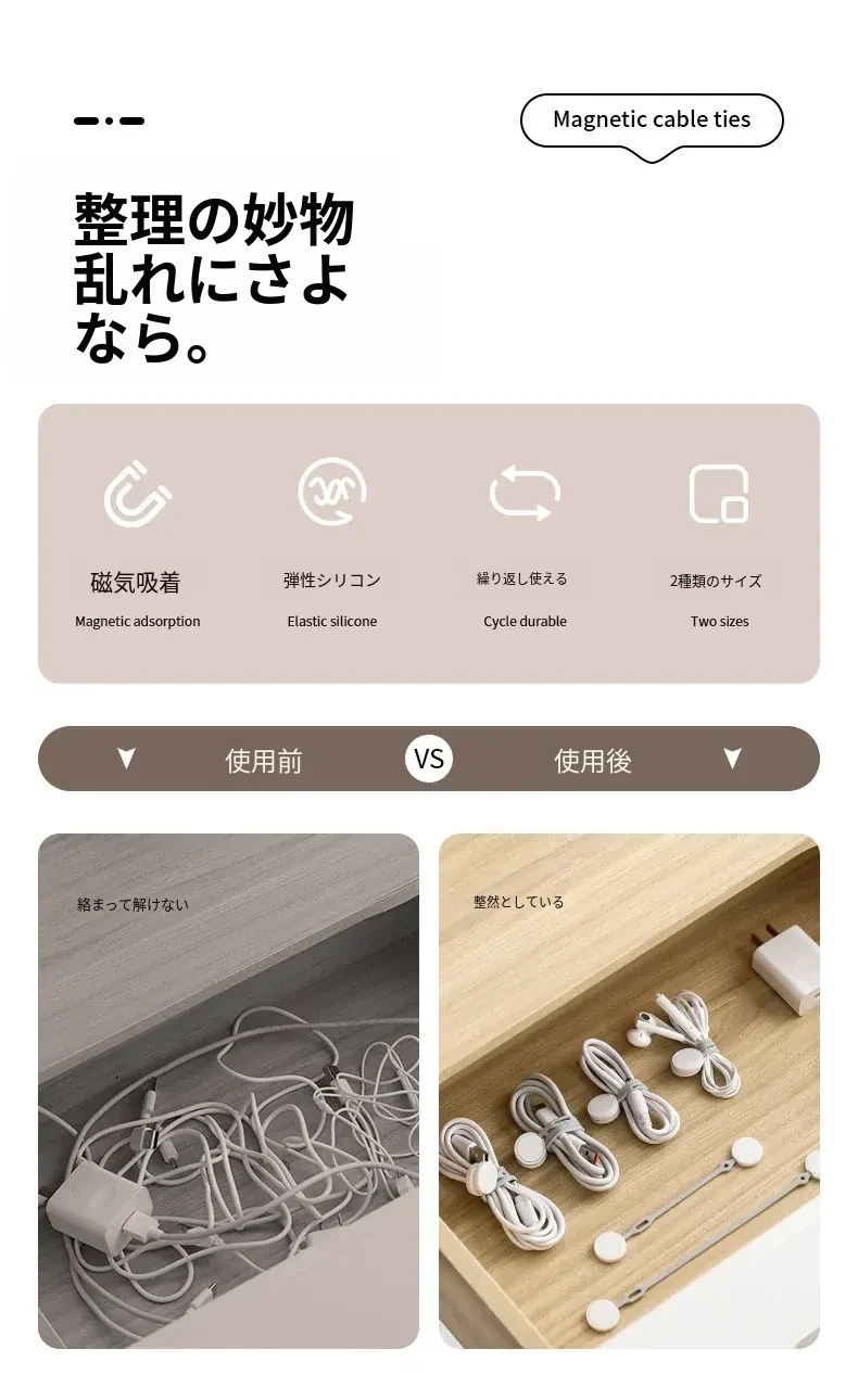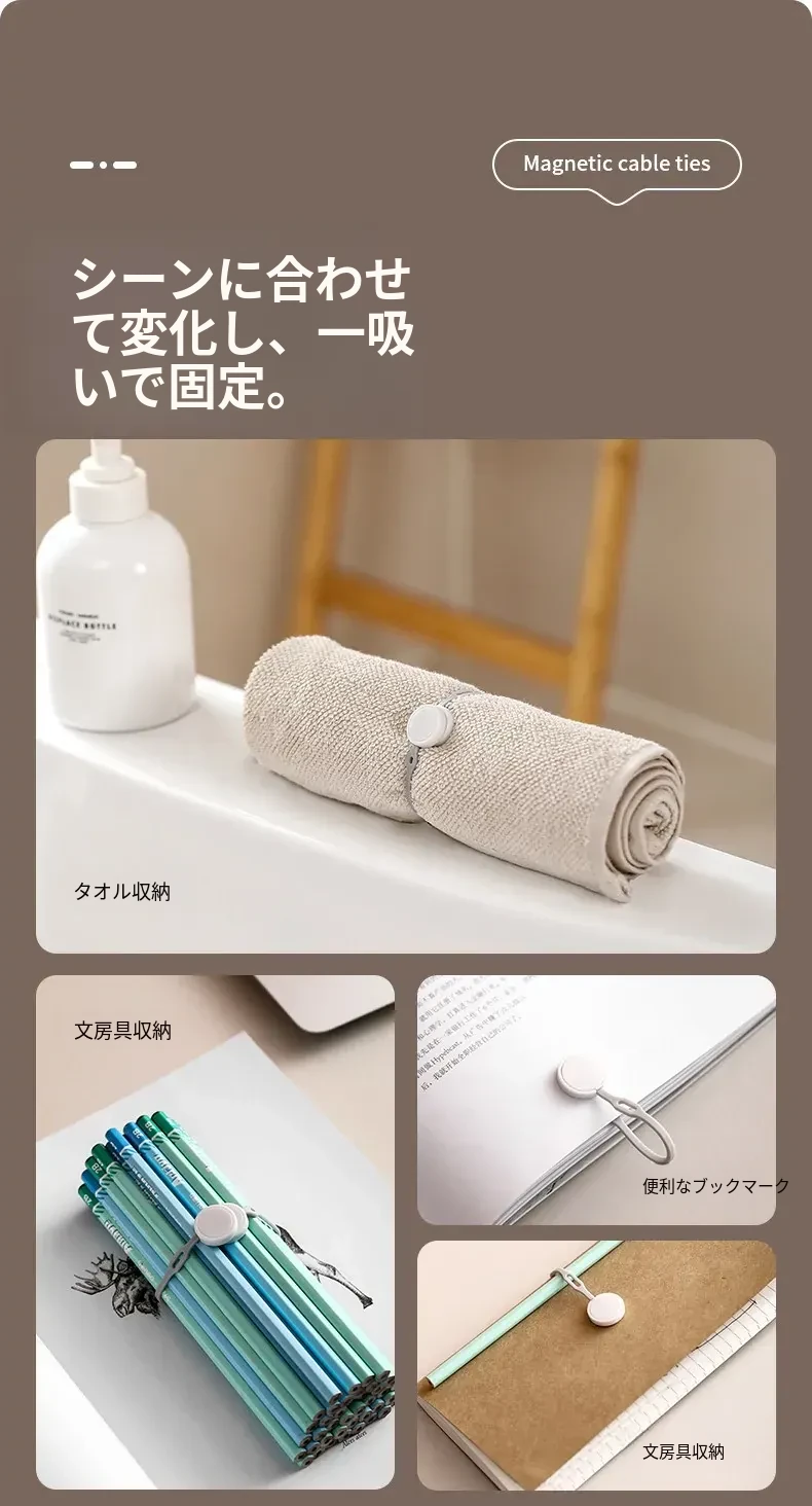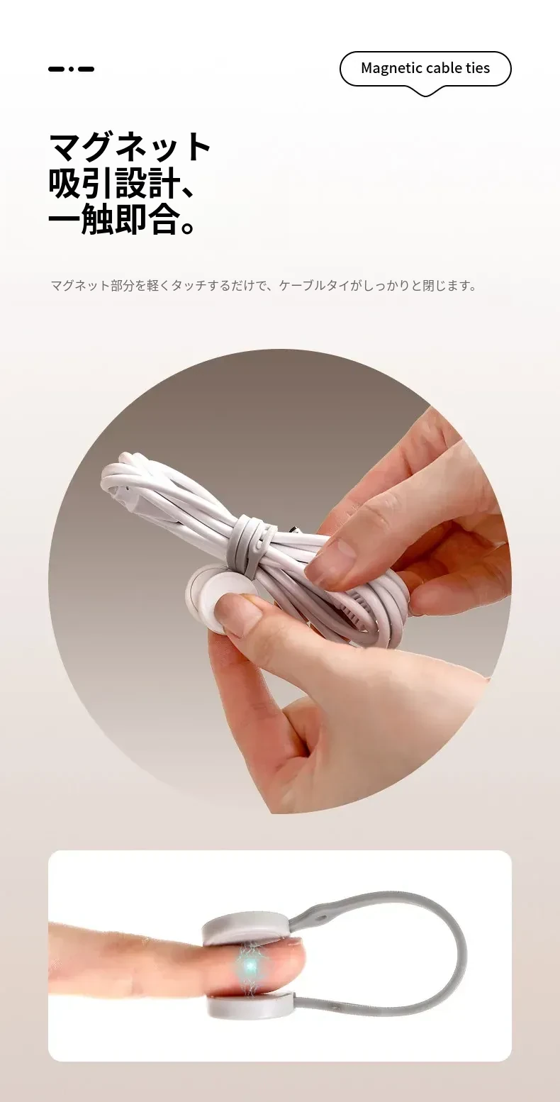 FaSoLa マルチ機能データケーブル整理器 磁石付き収納バンド シリコン充電ケーブル束ねバンド 弾性ロープ 整理整頓を簡単に実現!
