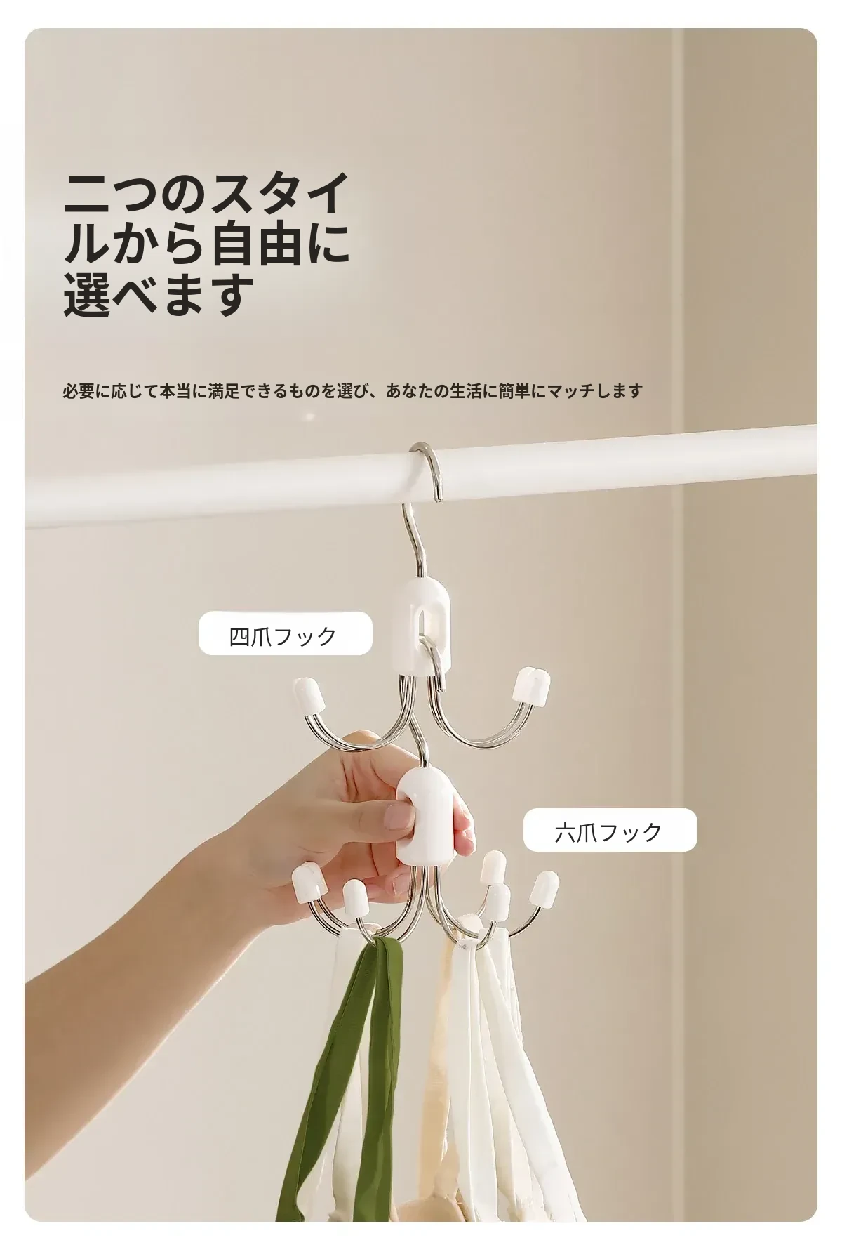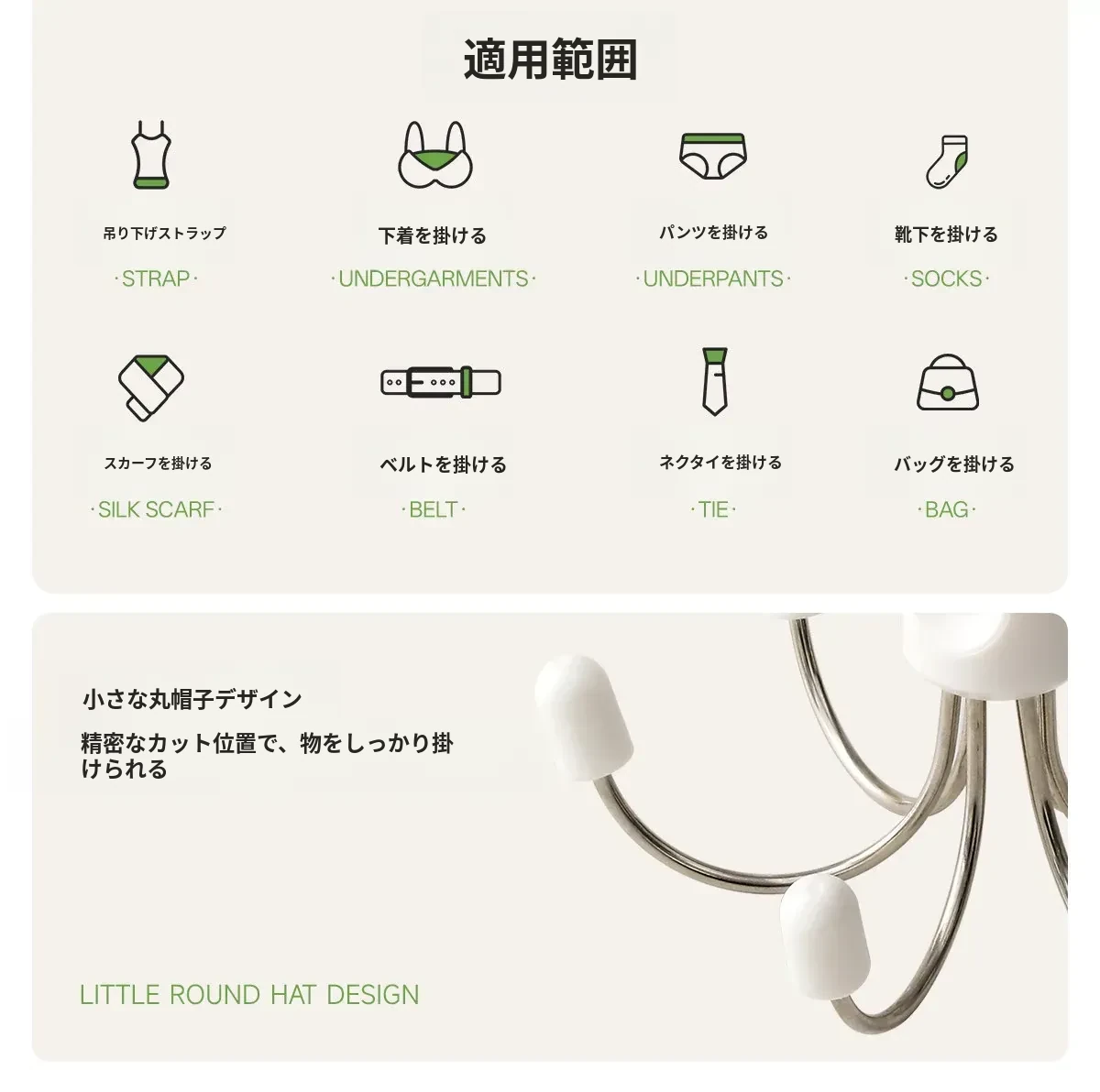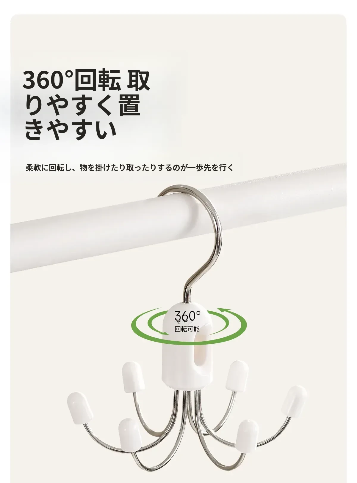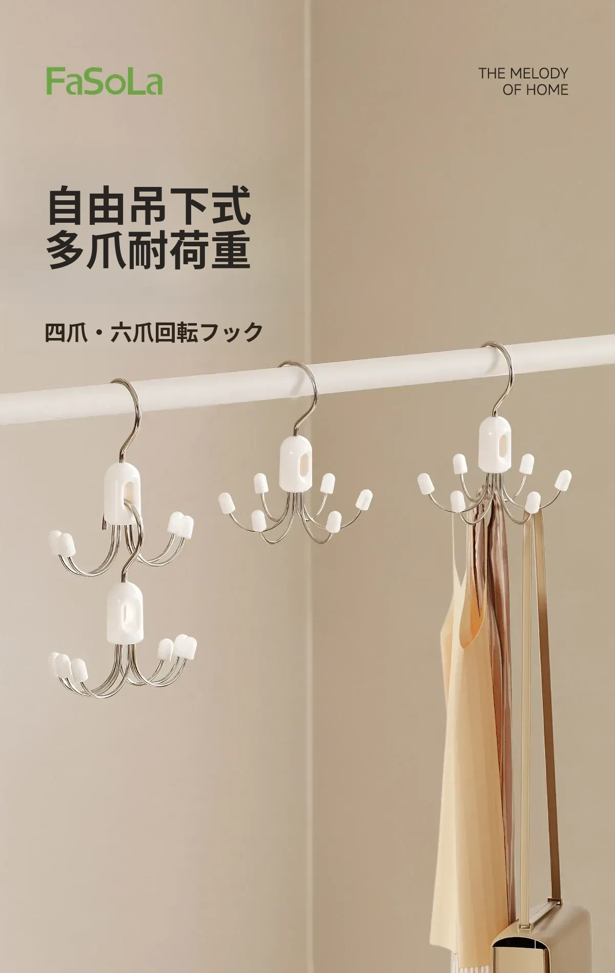 FaSoLa 六爪回転フック - 家庭用バッグ・下着・ストラップ・帽子を掛ける多機能フック!寮やクローゼットの収納に最適!スペースを有効活用して、お部屋をすっきり整理整頓!