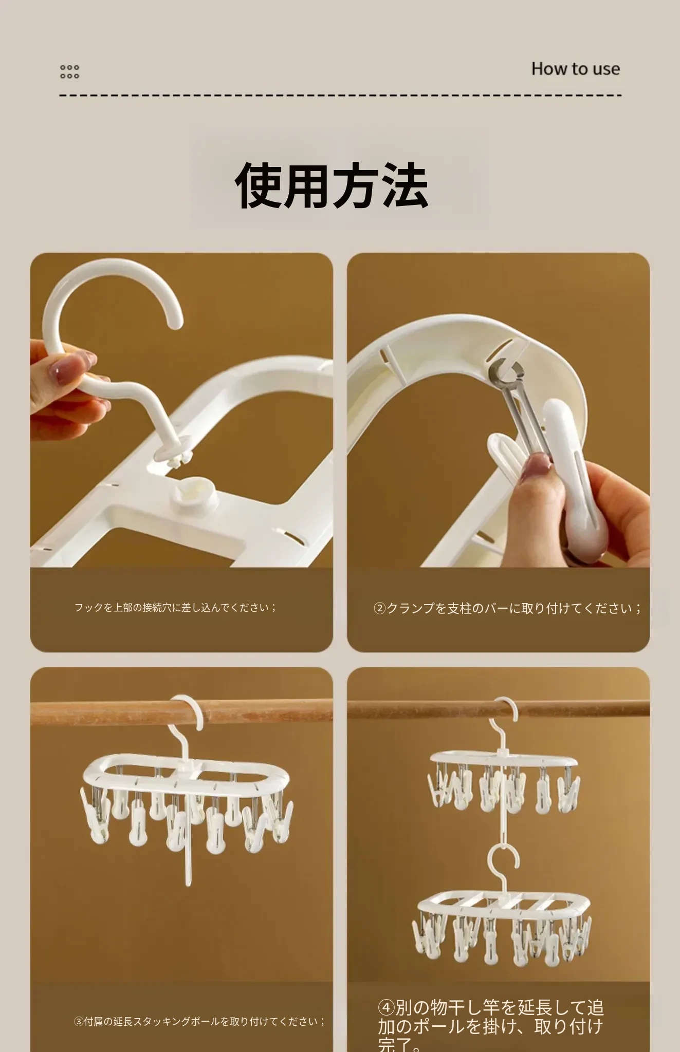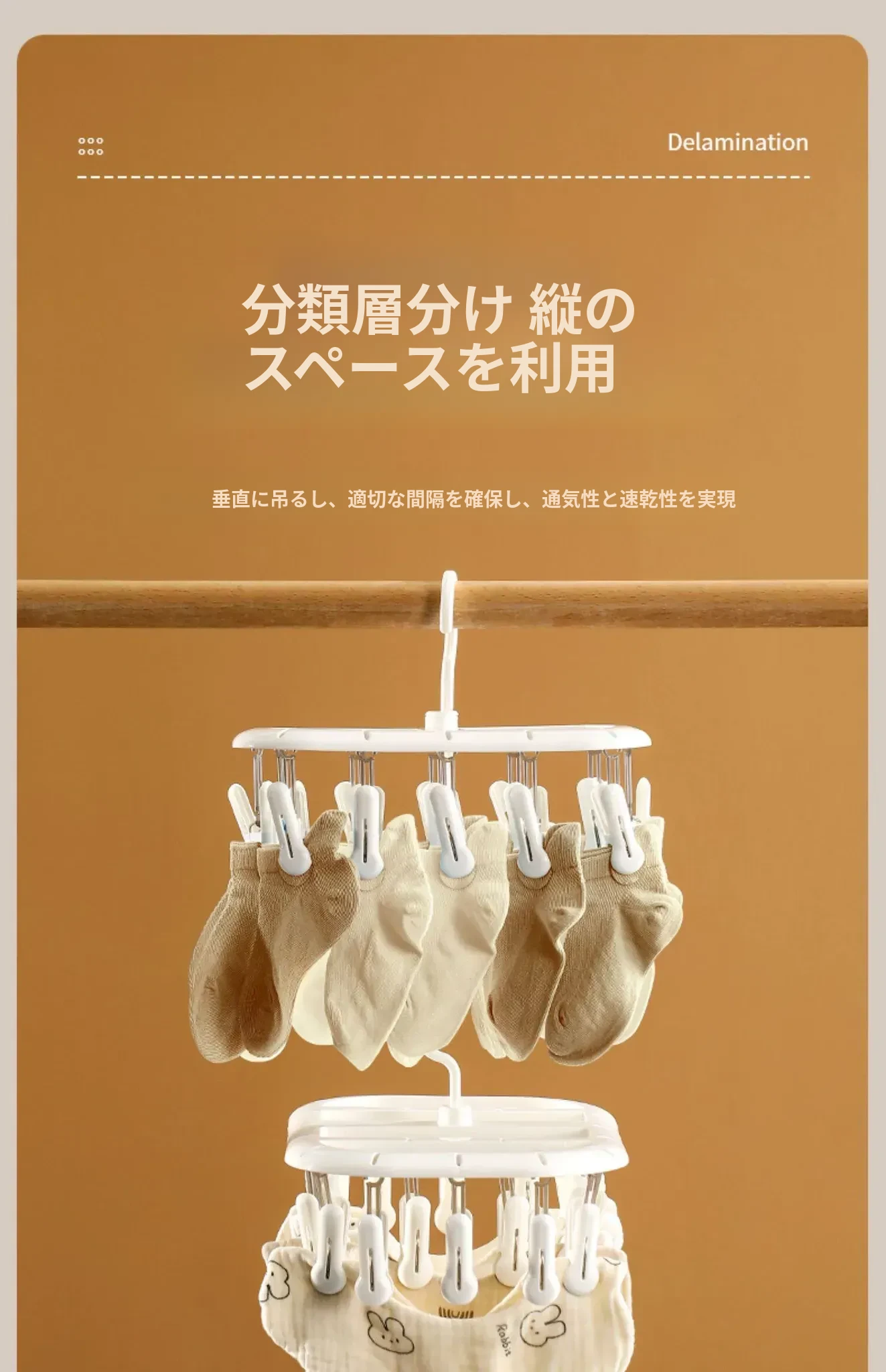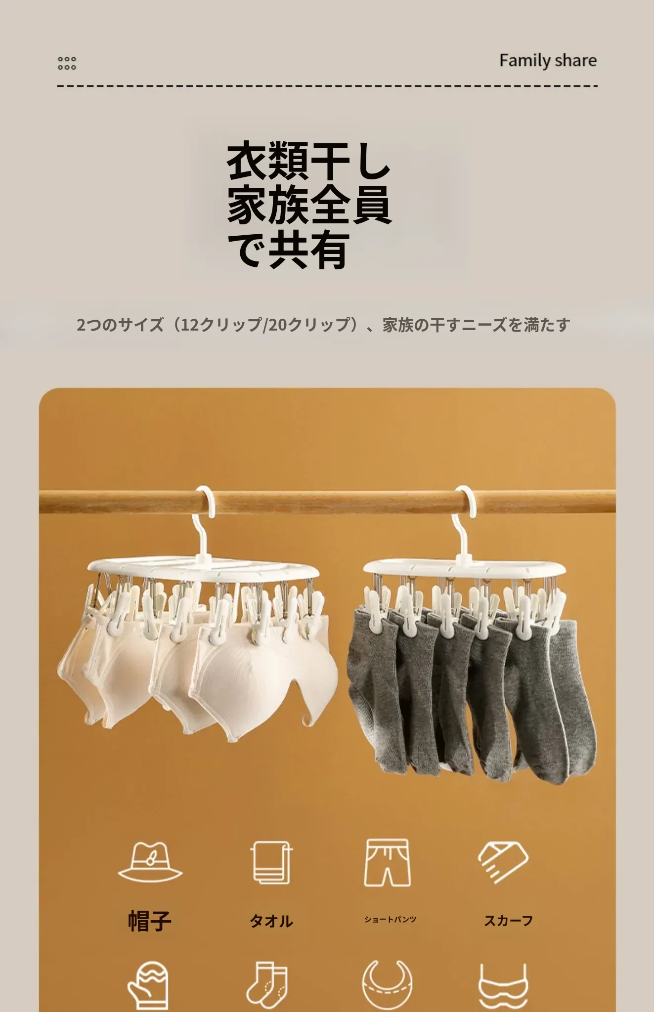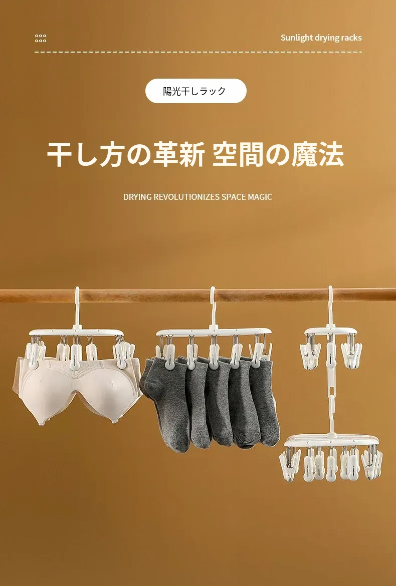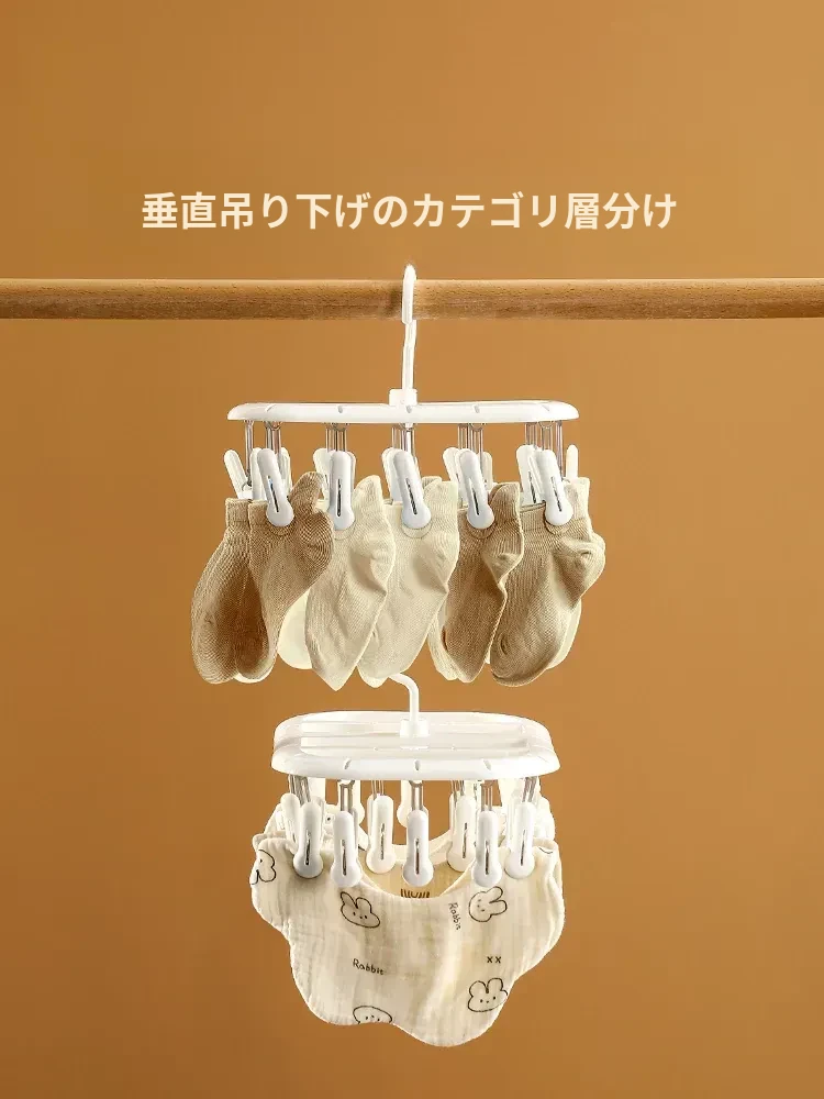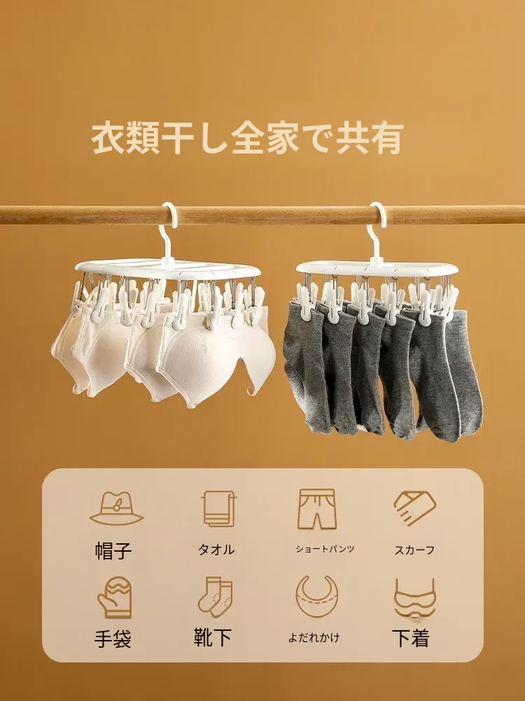 FaSoLa家庭用靴下干燥ラック 学生寮・子供向け 多機能・風に強い・クリップ付き下着・衣類干しラック