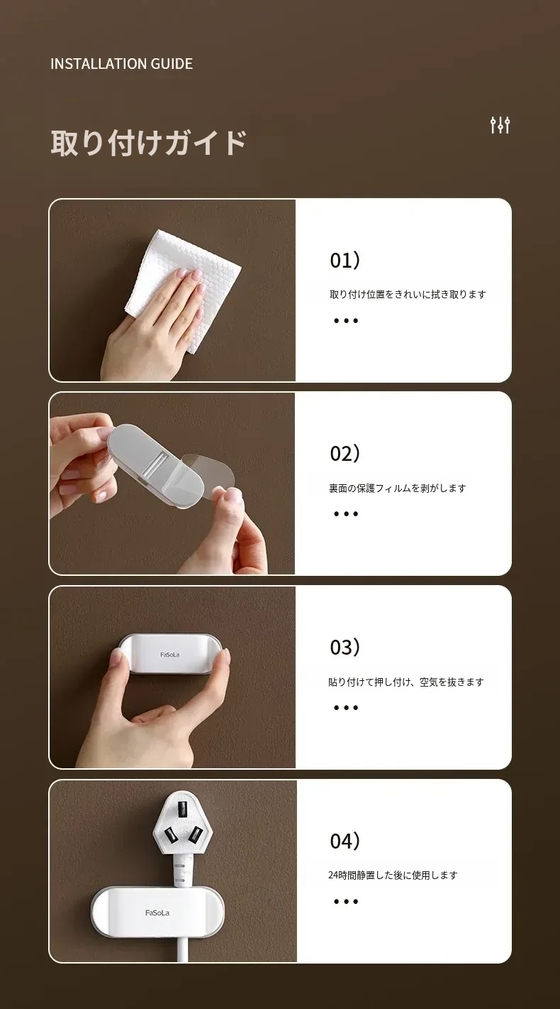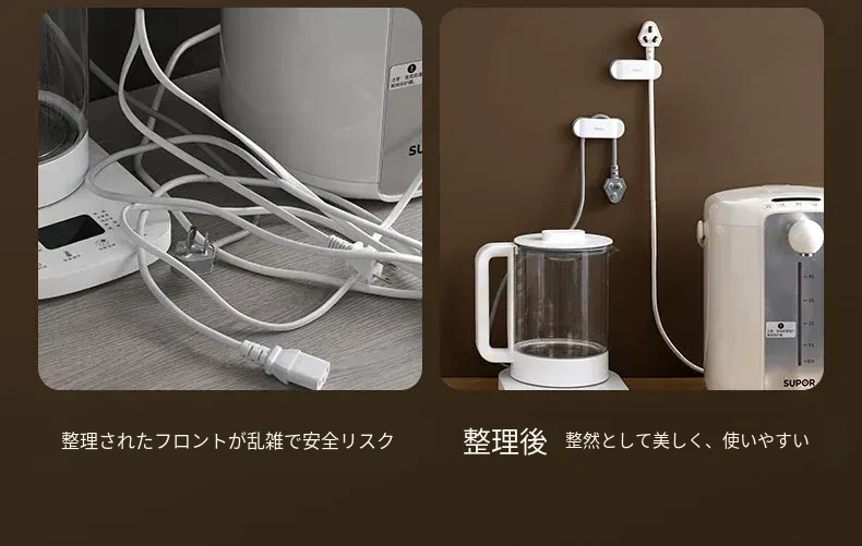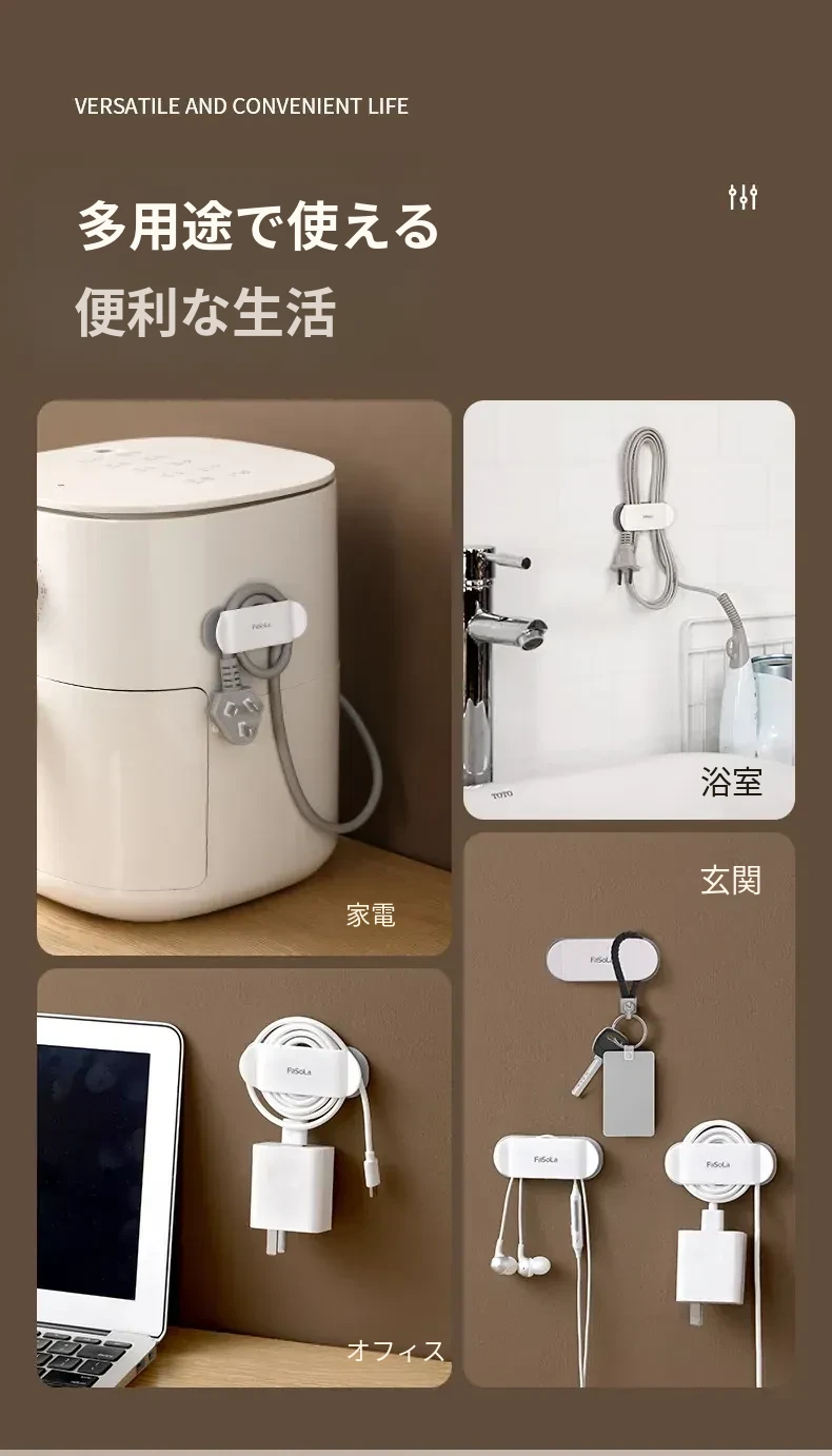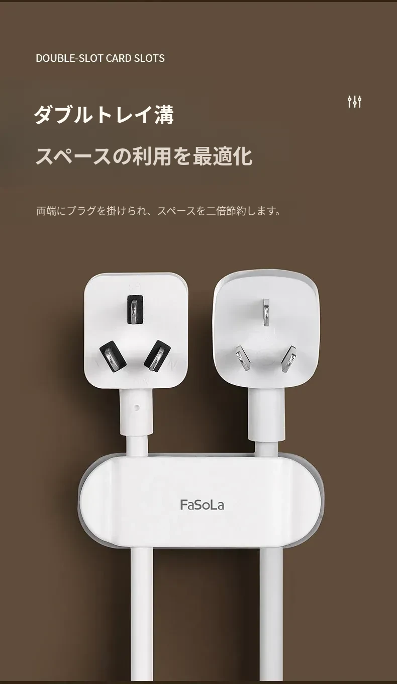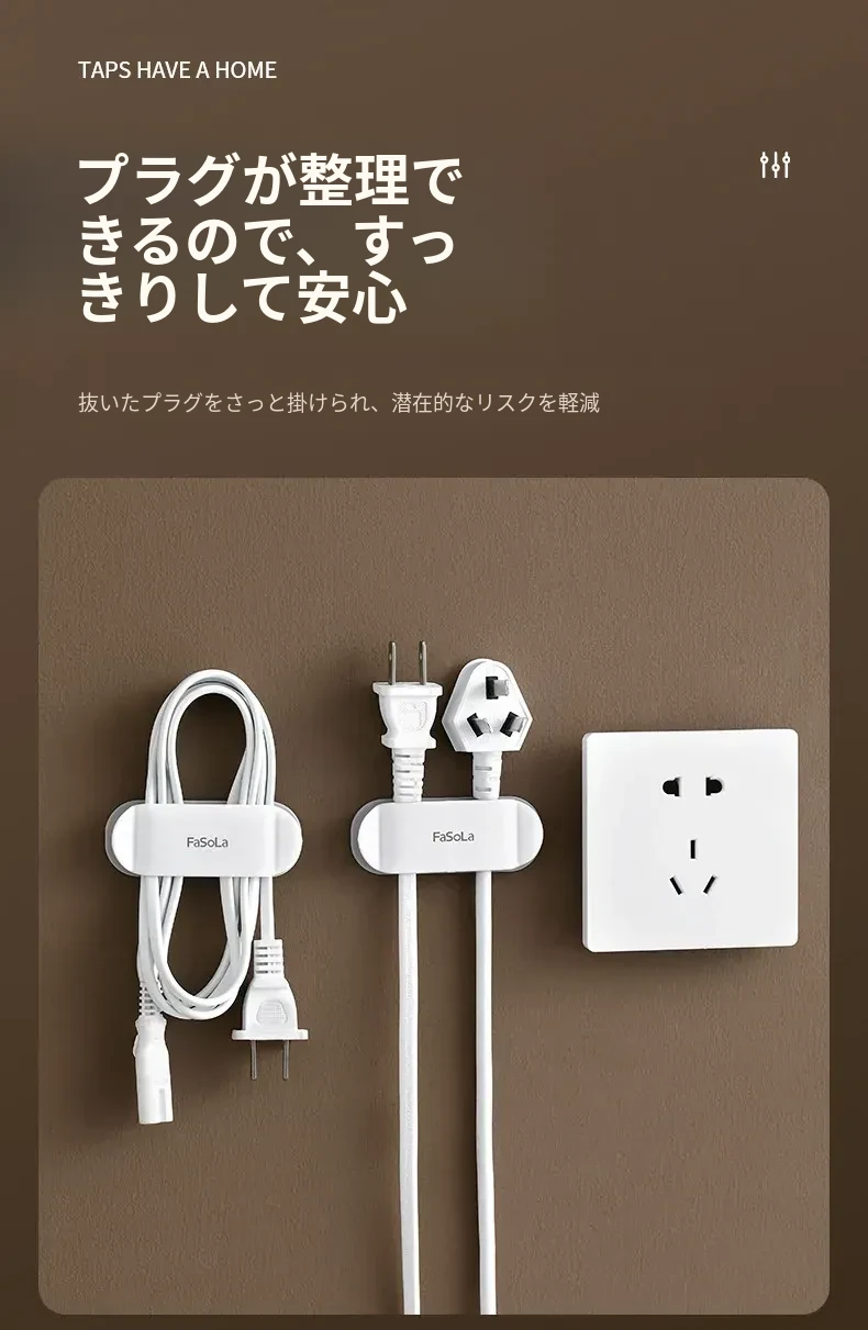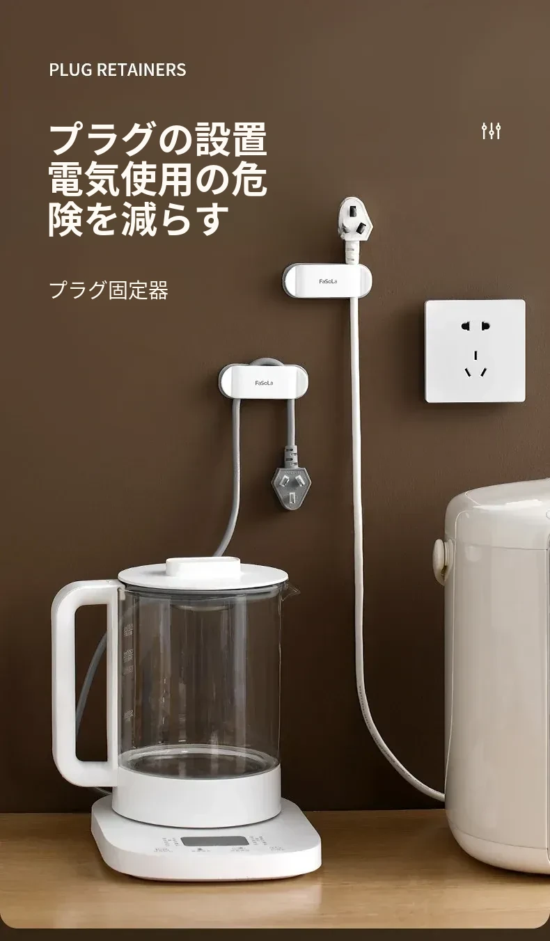 FaSoLaフック付きプラグ固定器 - 穴あけ不要のコンセントフック!キッチンや壁にぴったりの電源コード収納アイテムで、スッキリ整理整頓を実現!使いやすく、おしゃれなデザインで、あなたの生活を便利にします!