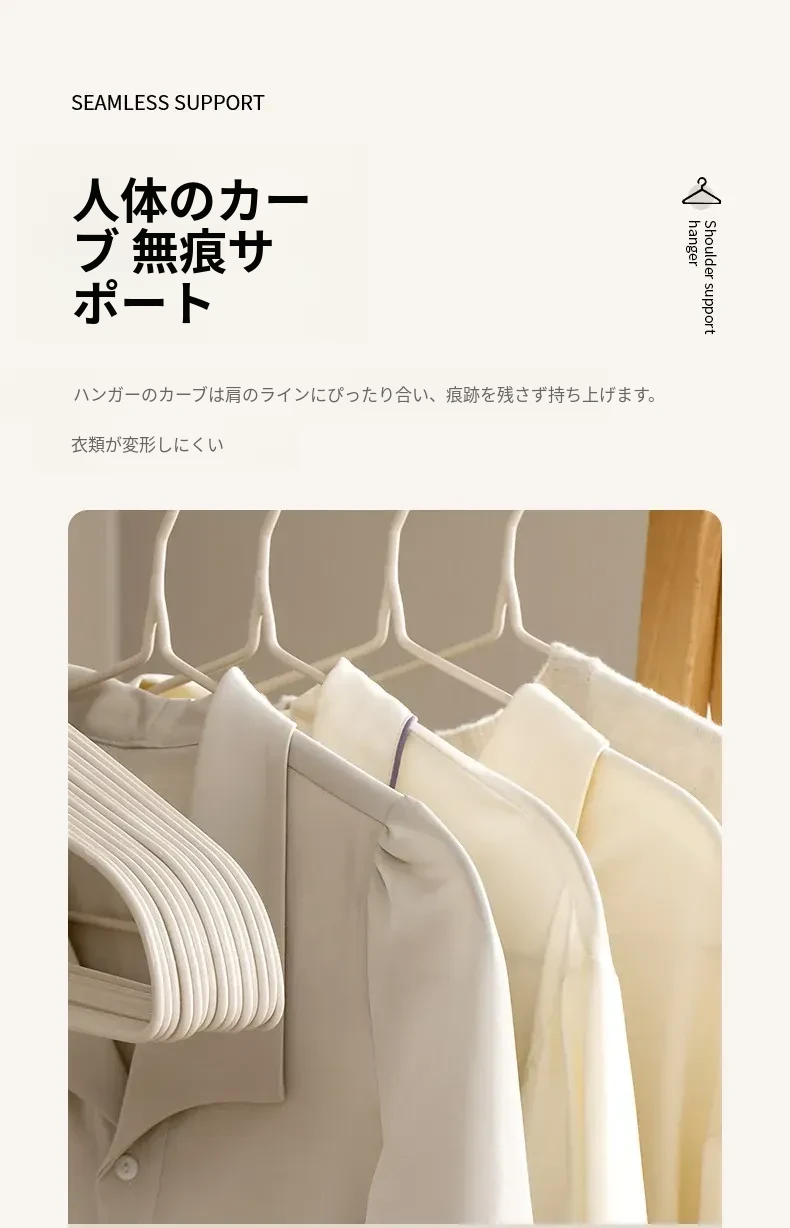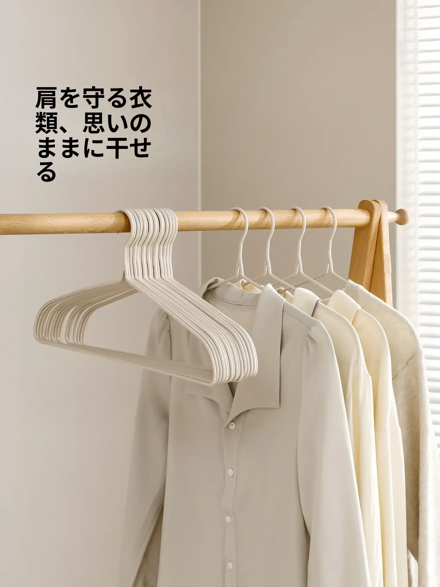 FaSoLa 肩を守るハンガー - シームレスで肩のラインを崩さず、家庭や学生寮でも使える衣類干しに最適!衣服を優しくサポートし、シワを防ぎます。