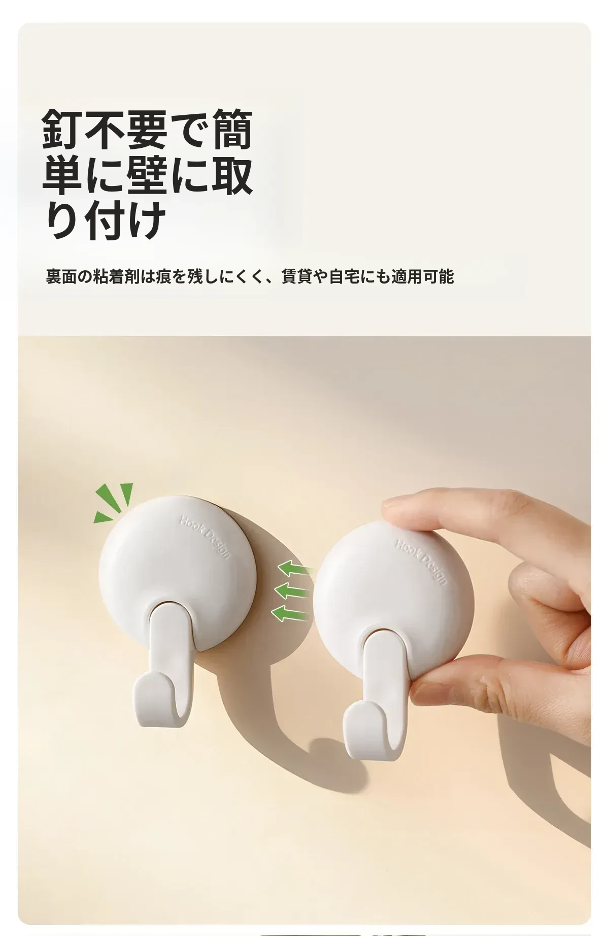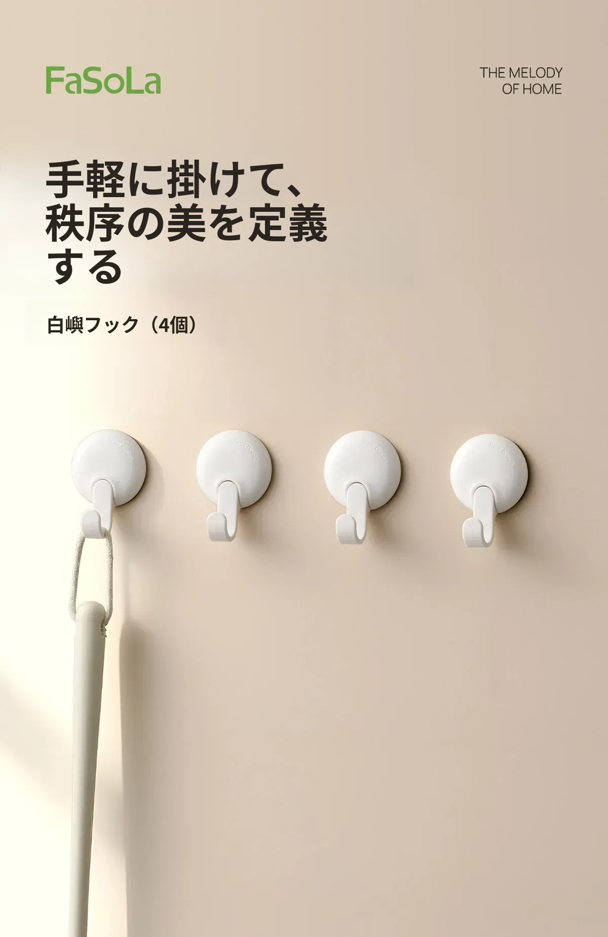 FaSoLa収納フック - 壁に穴を開けずに簡単取り付け!キッチンやバスルーム、寮の壁に最適な無痕粘着フックで、すっきり整理整頓を実現!おしゃれで実用的な収納アイテムです。