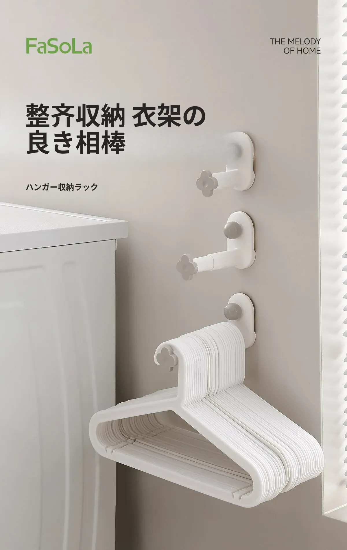 FaSoLa衣架収納神器!穴なしで取り付け簡単!家庭用バルコニー壁掛け多機能伸縮ハンガー、無痕で衣類をスッキリ整理!おしゃれで便利な収納アイテム!