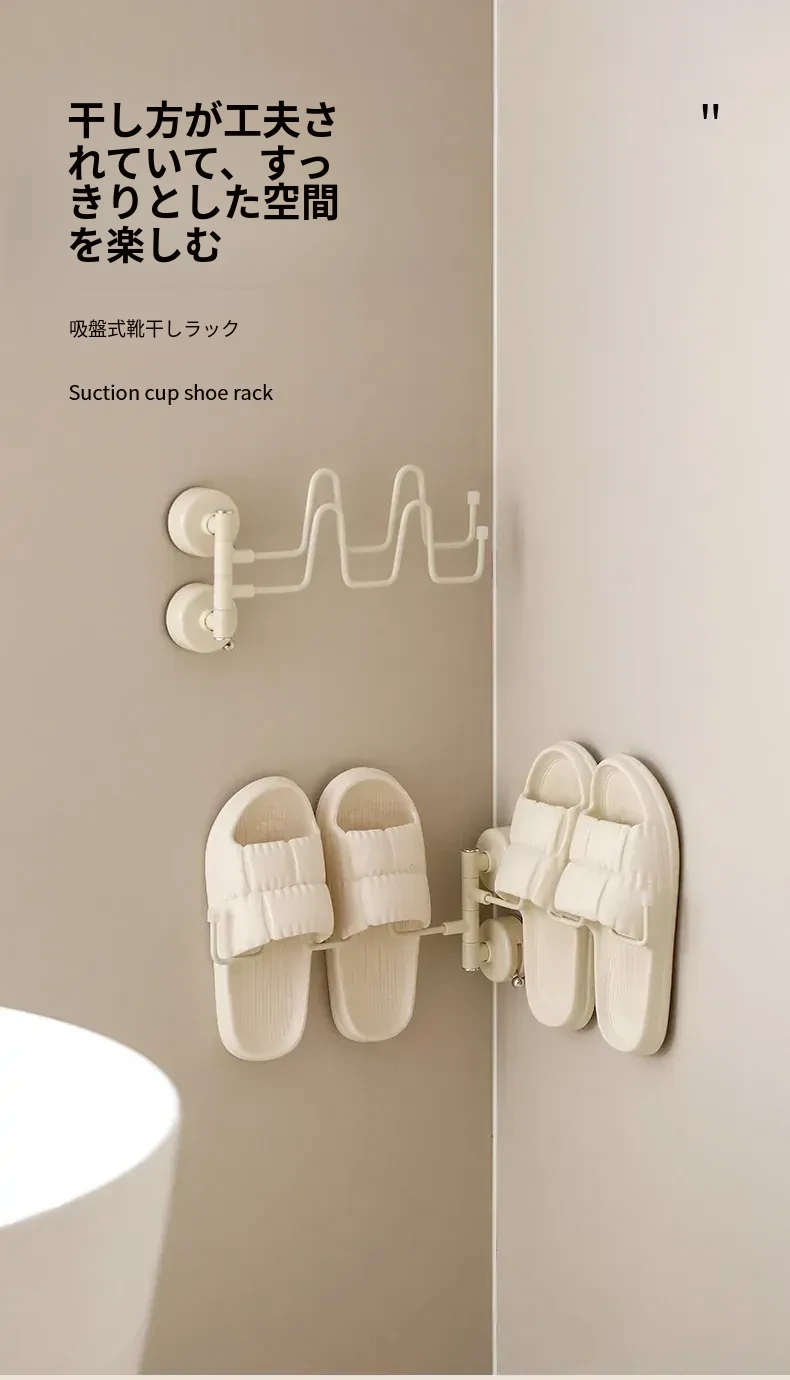 FaSoLa穴なし靴ラック - バルコニーでの靴やスリッパの収納に最適!吸盤付きで壁掛け可能なバスルーム用の水切りラック。省スペースで整理整頓を実現する必須アイテム!