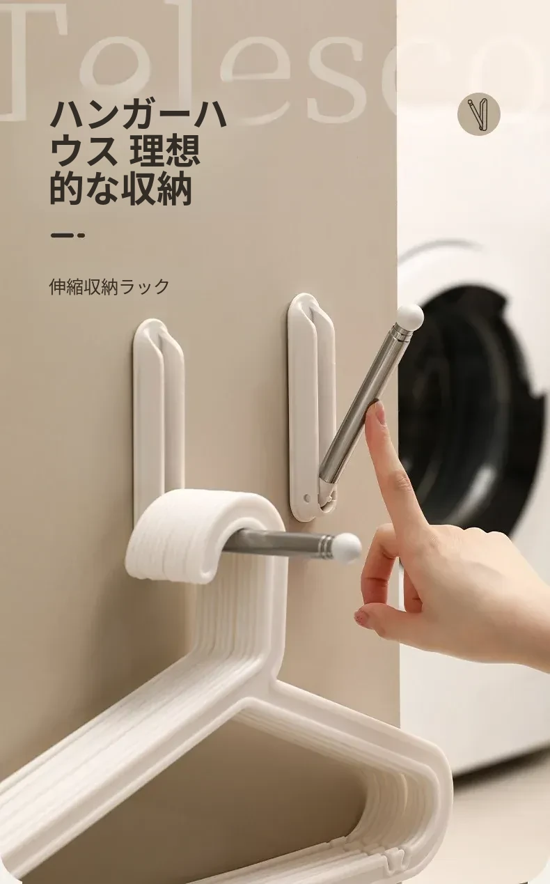 FaSoLa孔なし伸縮式ハンガーバー - 容量抜群の衣類干し台、家のバルコニーや壁に最適!折りたたみ可能で、スペースを有効活用!