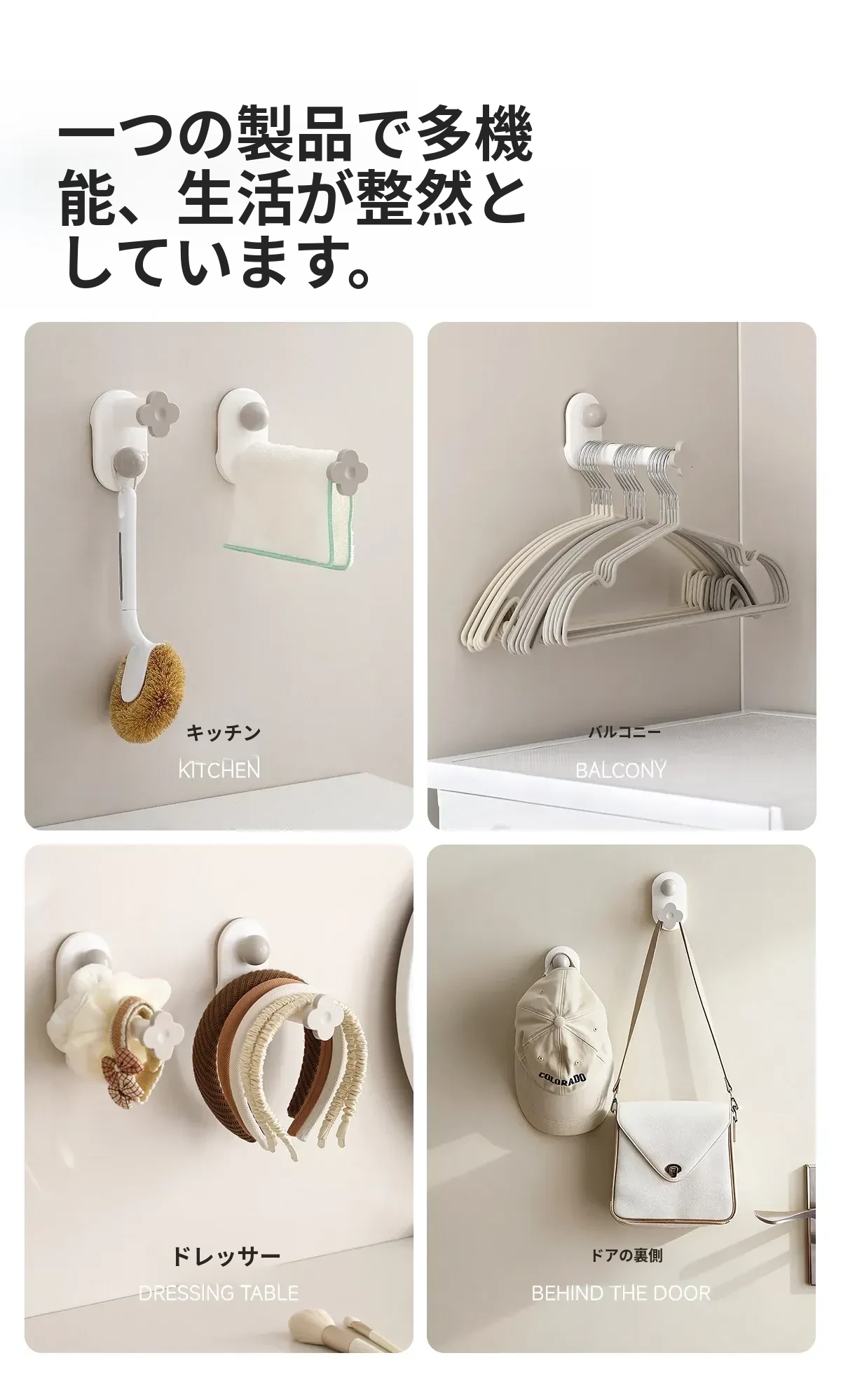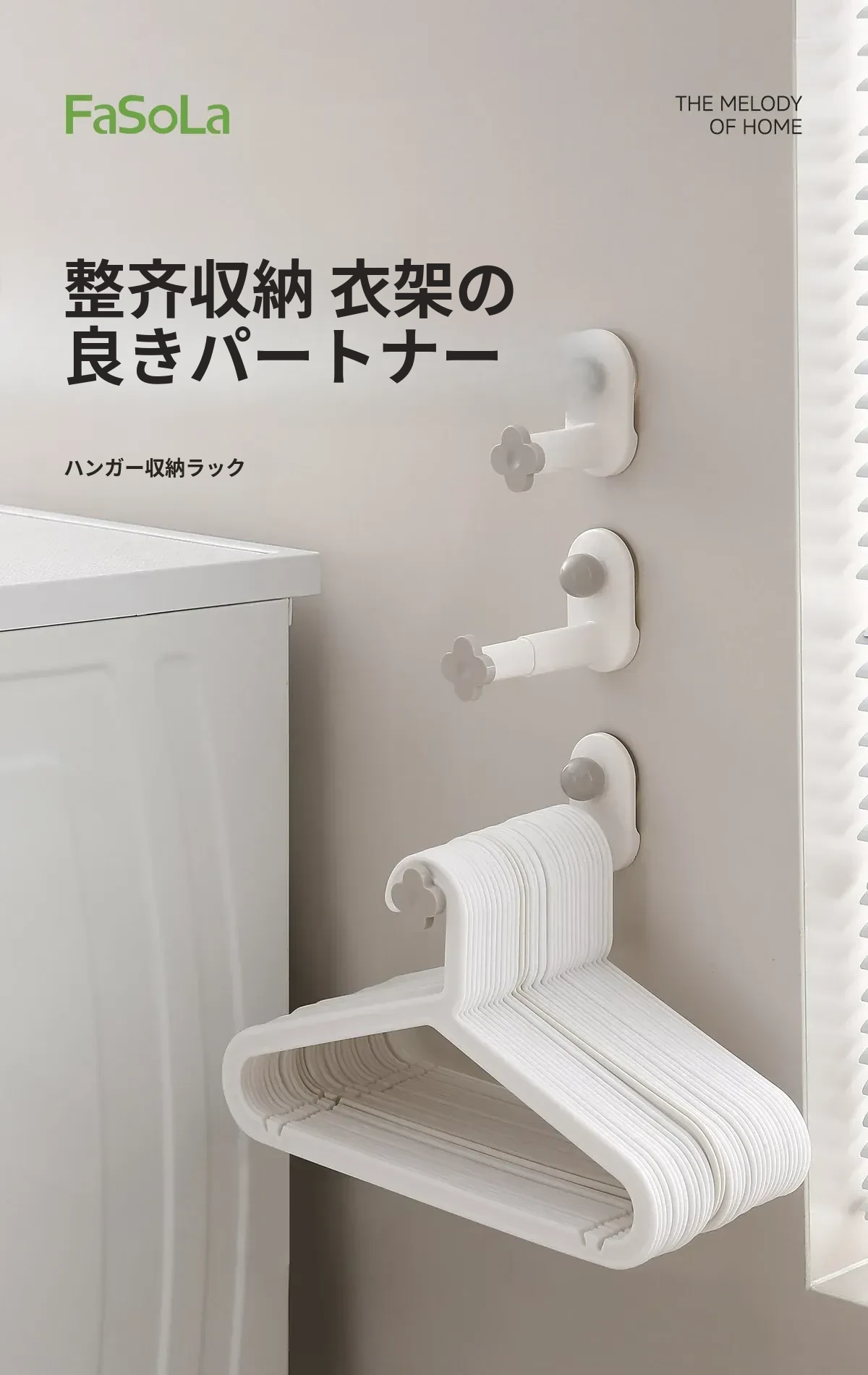 FaSoLa衣架収納マジック!穴あけ不要の家庭用バルコニー壁掛け多機能伸縮ハンガー。衣類をすっきり整理できる無痕ハンガーで、空間を有効活用!