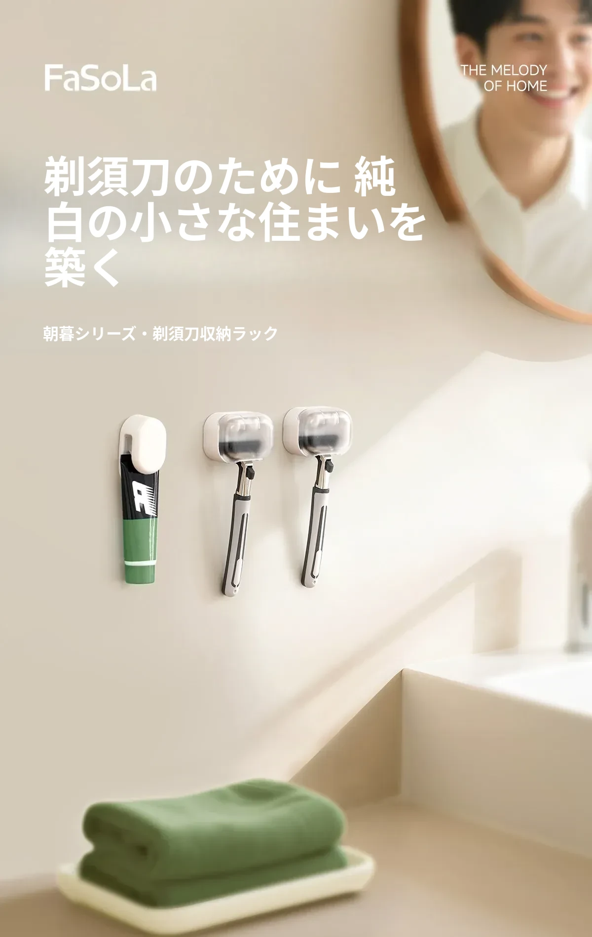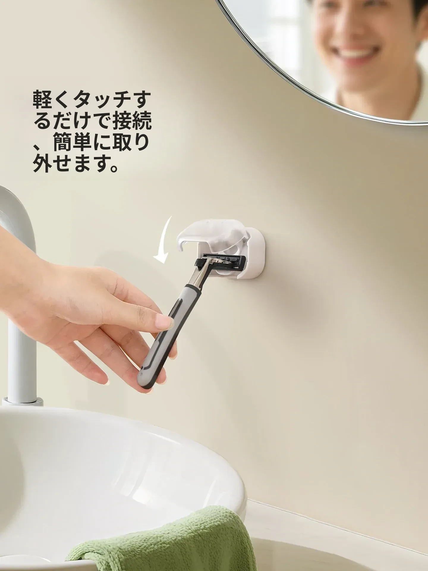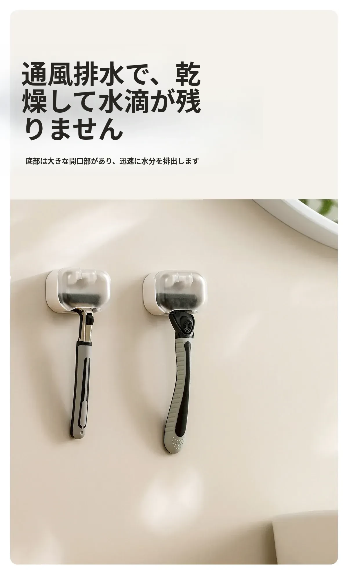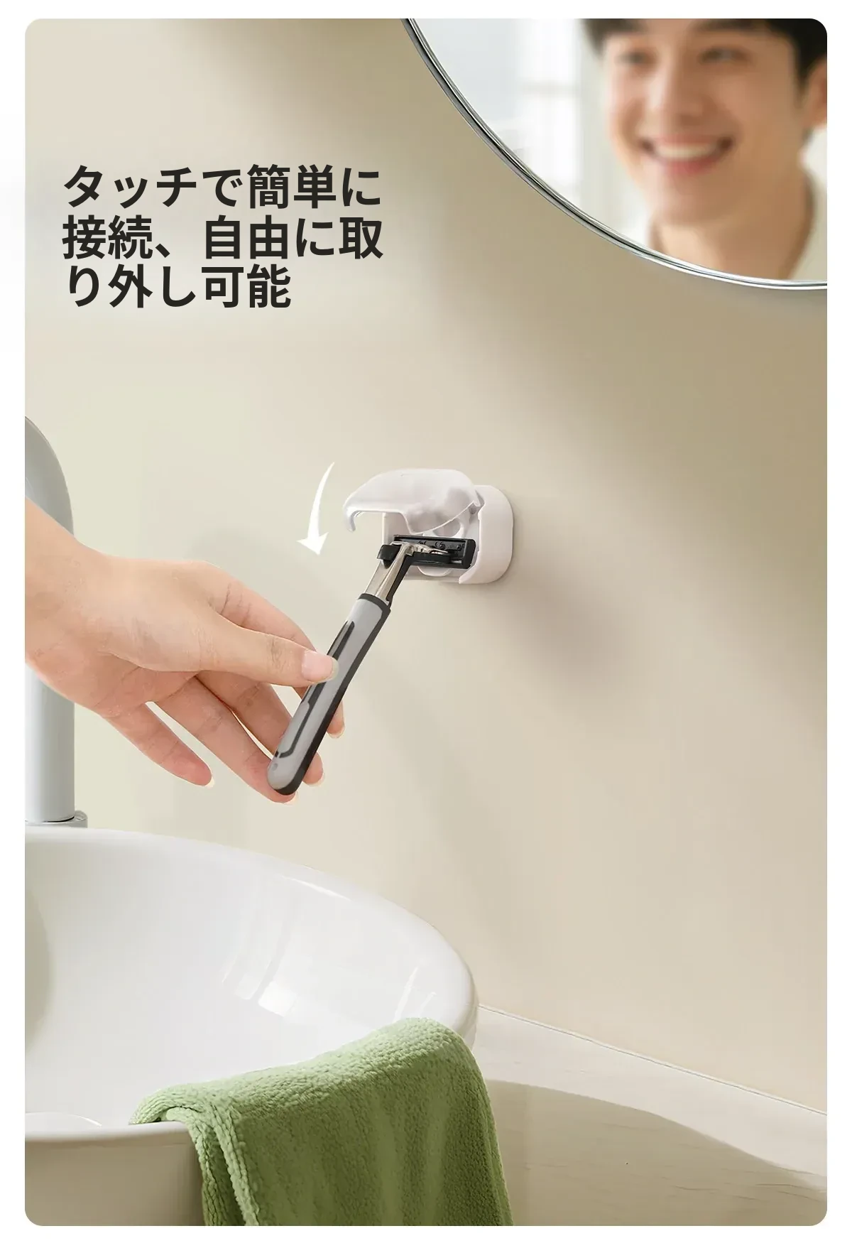 FaSoLa 壁掛け剃刀収納ラック - 穴を開けずに取り付け可能!バスルームやトイレに最適な手動シェーバーフックで、すっきりとした空間を実現。あなたの毎日のシェービングをもっと便利に!