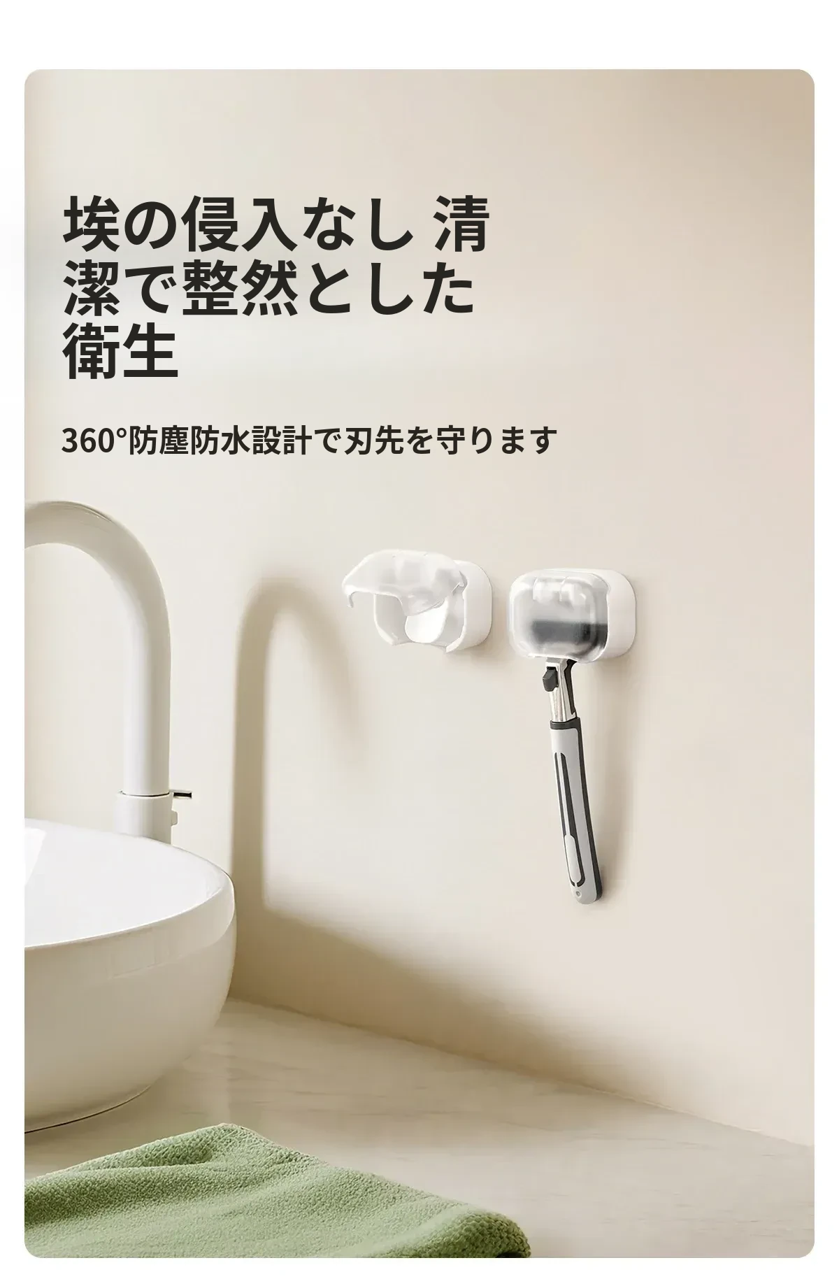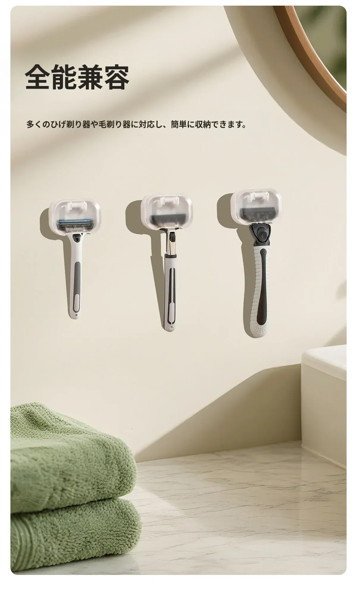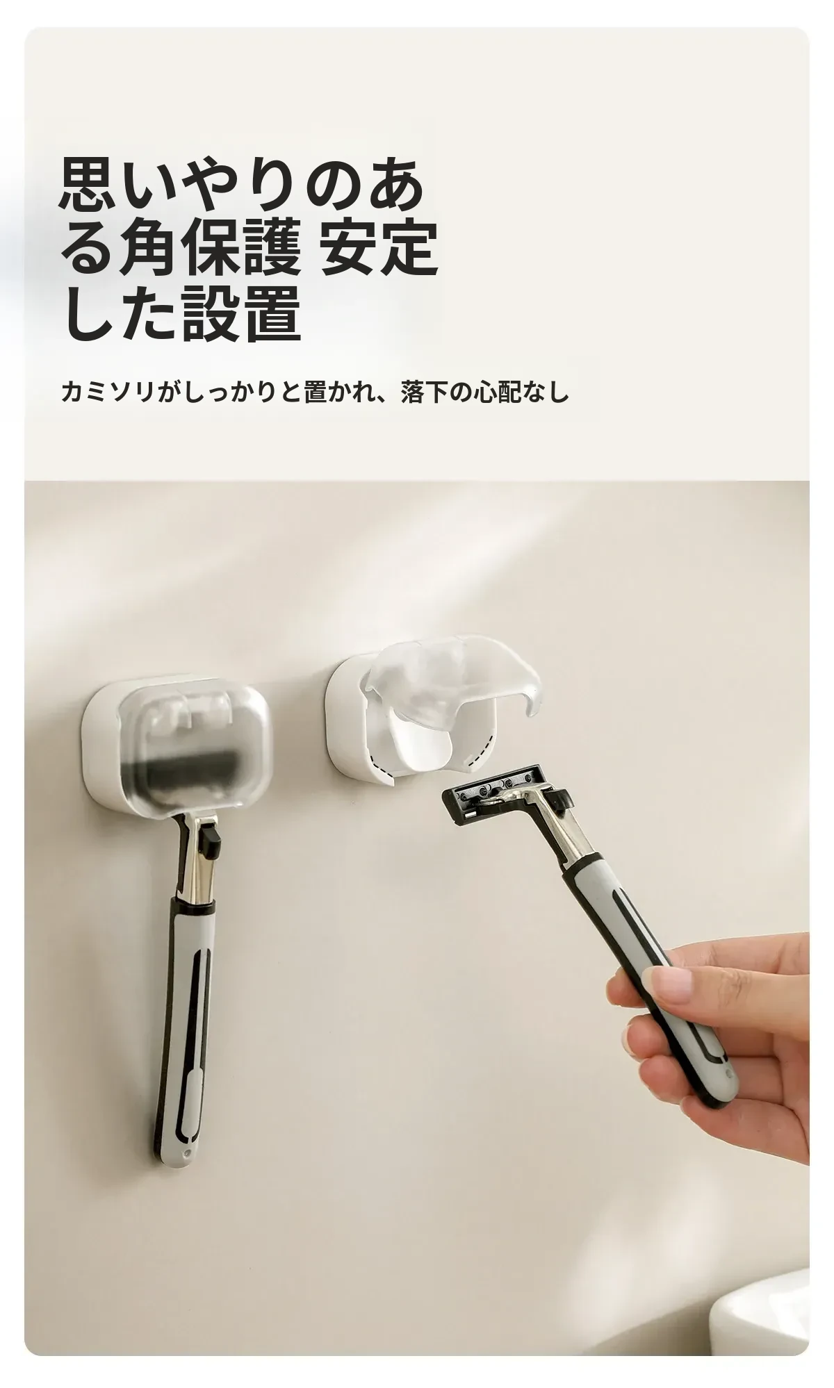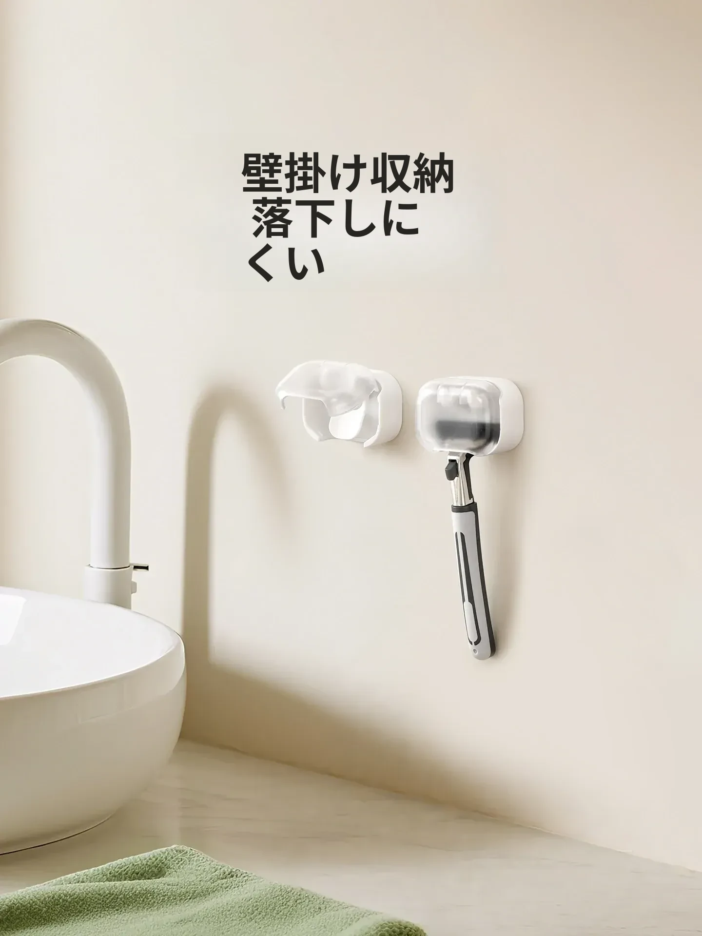 FaSoLa 壁掛け剃刀収納ラック - 穴を開けずに取り付け可能!バスルームやトイレに最適な手動シェーバーフックで、すっきりとした空間を実現。あなたの毎日のシェービングをもっと便利に!