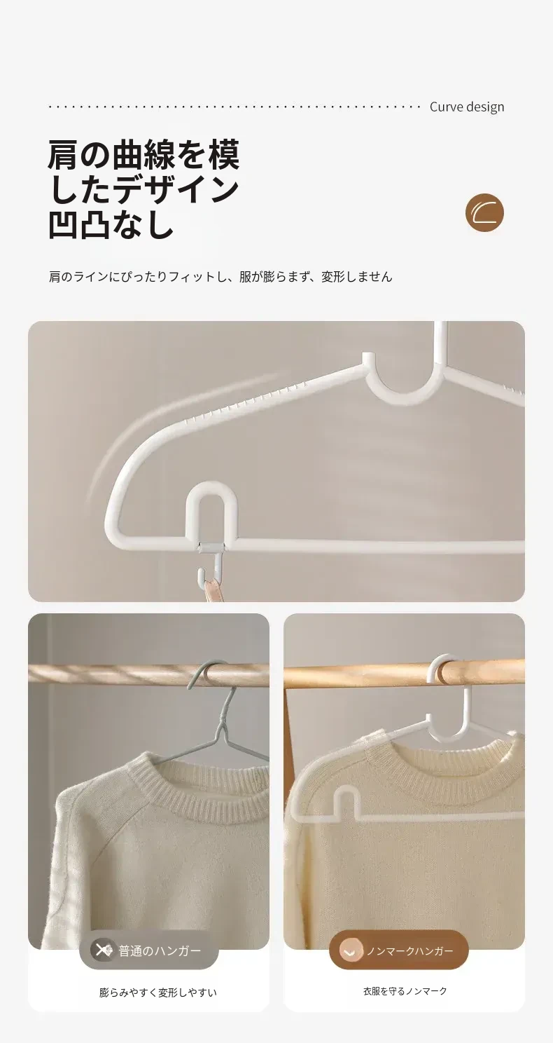FaSoLa家庭用無痕防滑ハンガー - 肩に優しい!学生寮にも最適なプラスチック製衣類ハンガー、衣類をしっかり支える便利なアイテム!