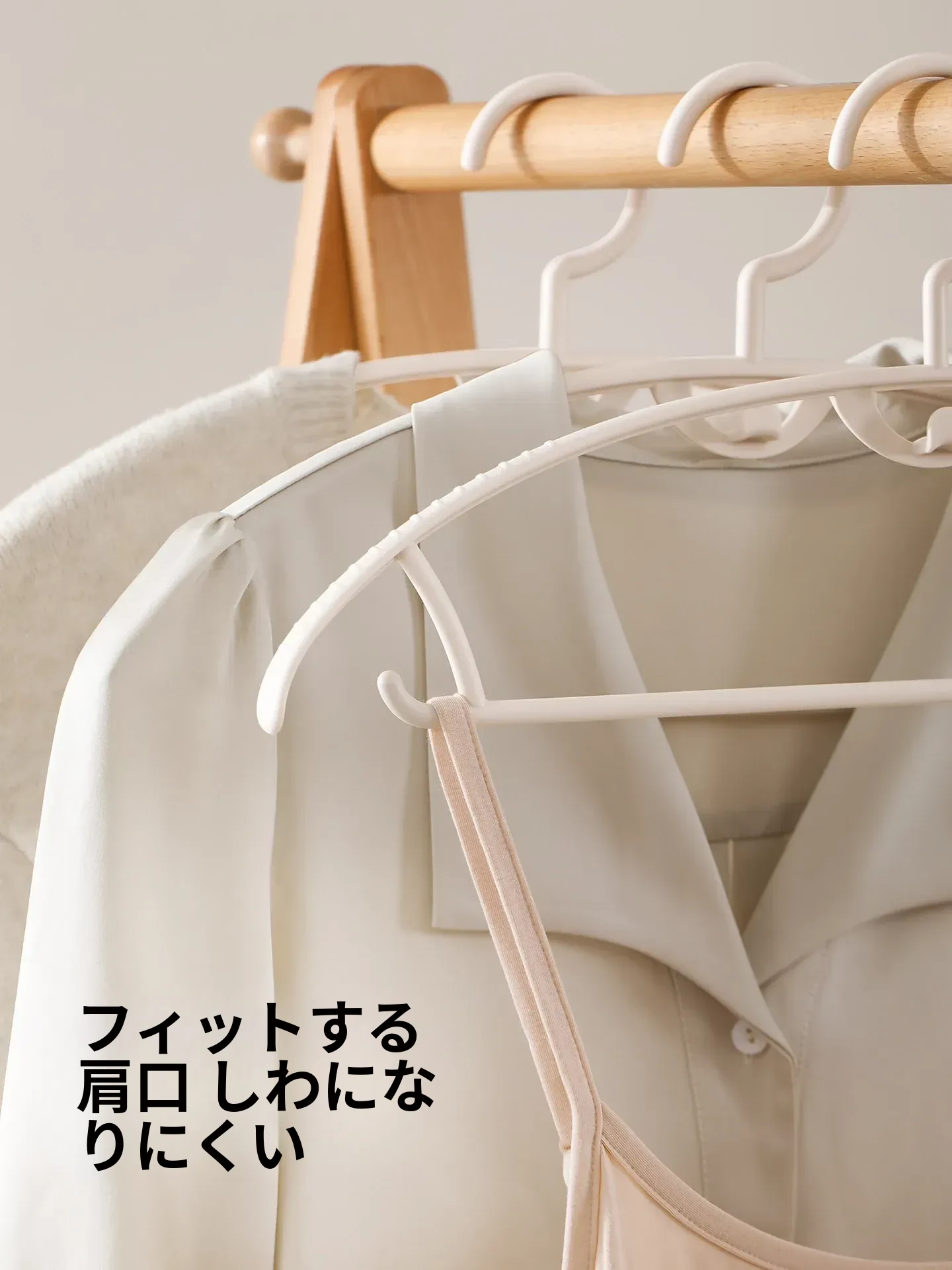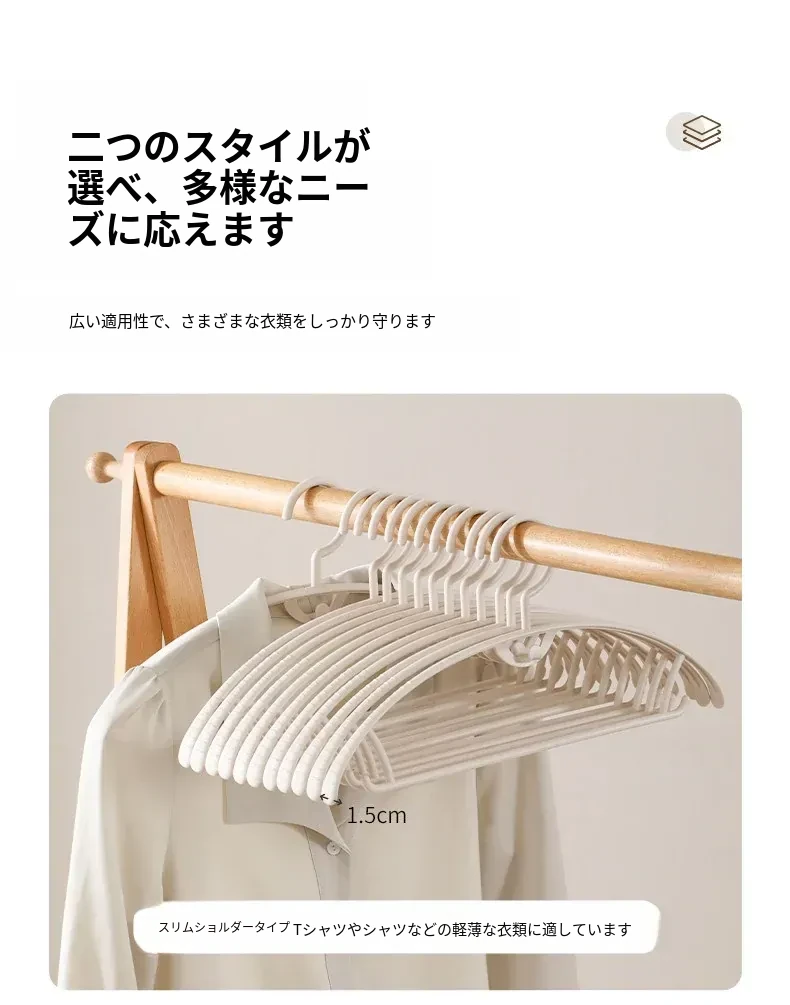 FaSoLa衣架 - 家庭用の幅広肩無痕ハンガー、衣類が滑らず肩のラインを守る!シワにならず、安心して乾かせる衣服掛け。肩の角が出ず、どんな衣服にも最適!