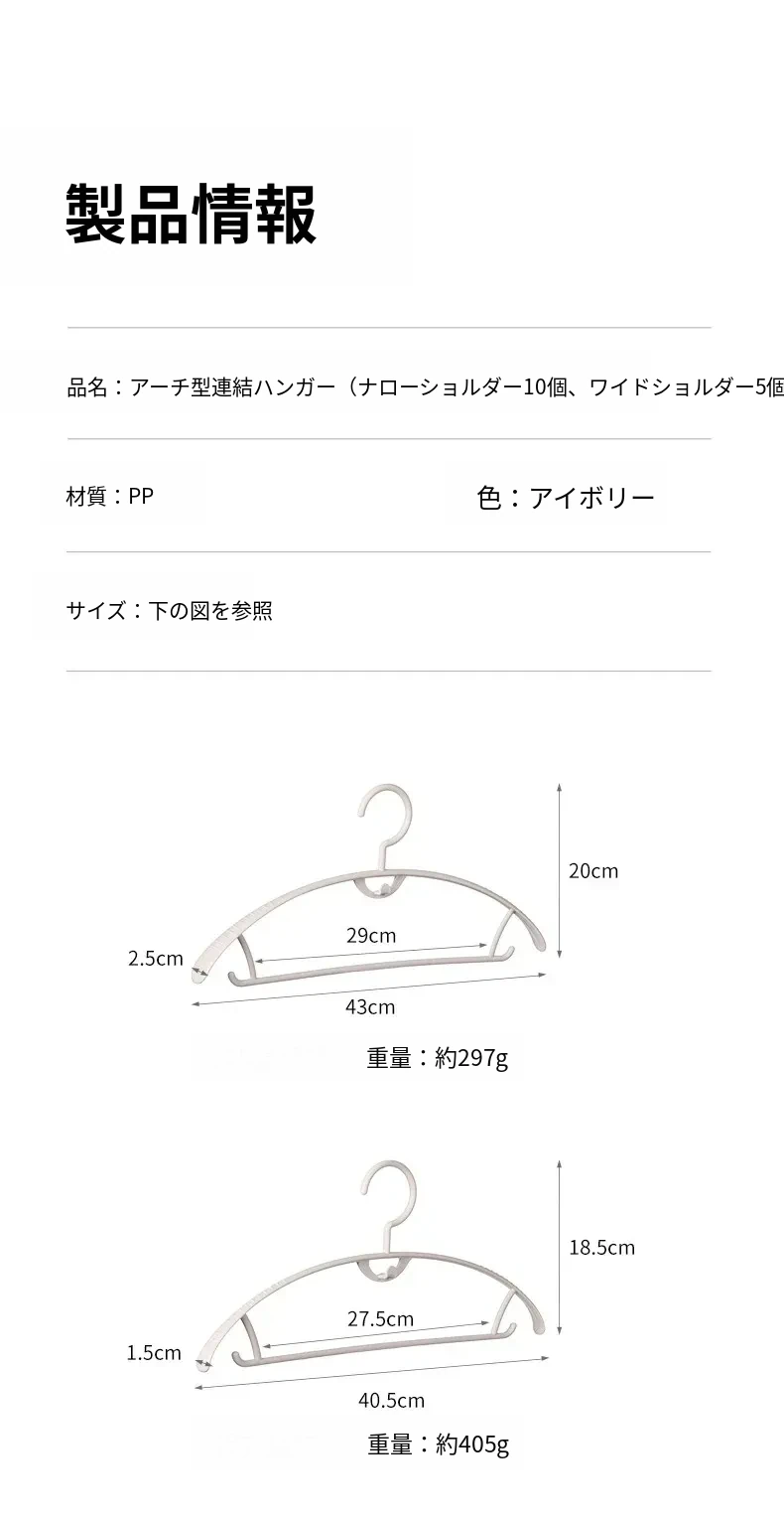 アーチ型連結ハンガー広肩(5個)