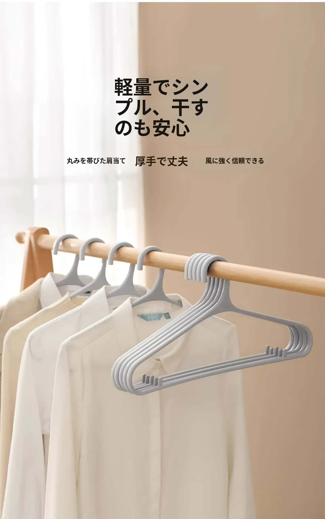 FaSoLa無痕干しハンガー 肩の痛みを防ぐ衣類掛け 家庭用プラスチックハンガー 洗濯や学生寮に最適なフック付き!快適な収納で生活をもっと便利に!