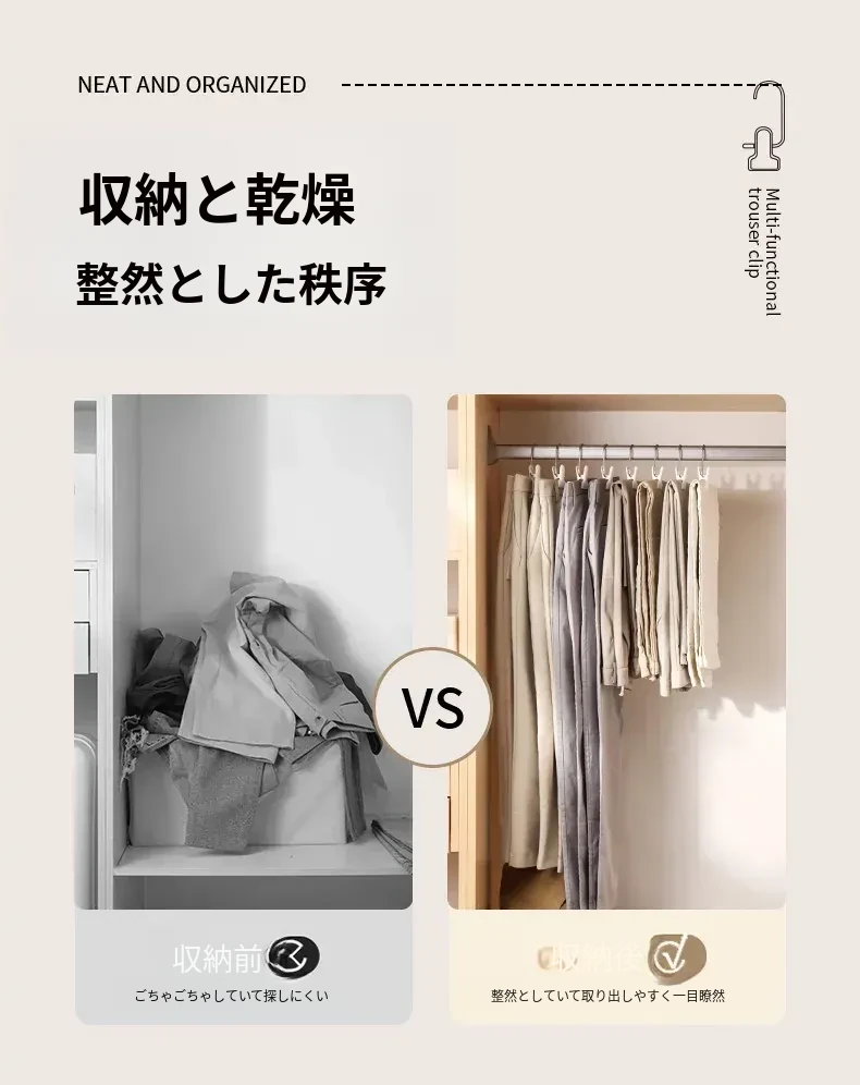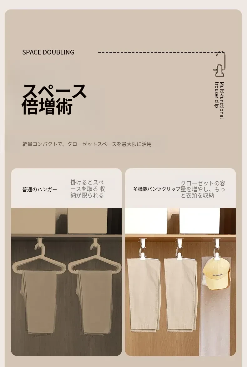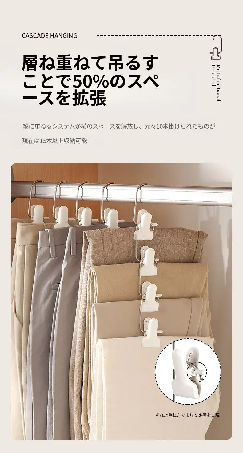 FaSoLa無痕パンツクリップ - 家庭用ステンレス製多機能ハンガー、スカート収納の必需品!洗濯物をスマートに整理し、おしゃれな空間を演出!