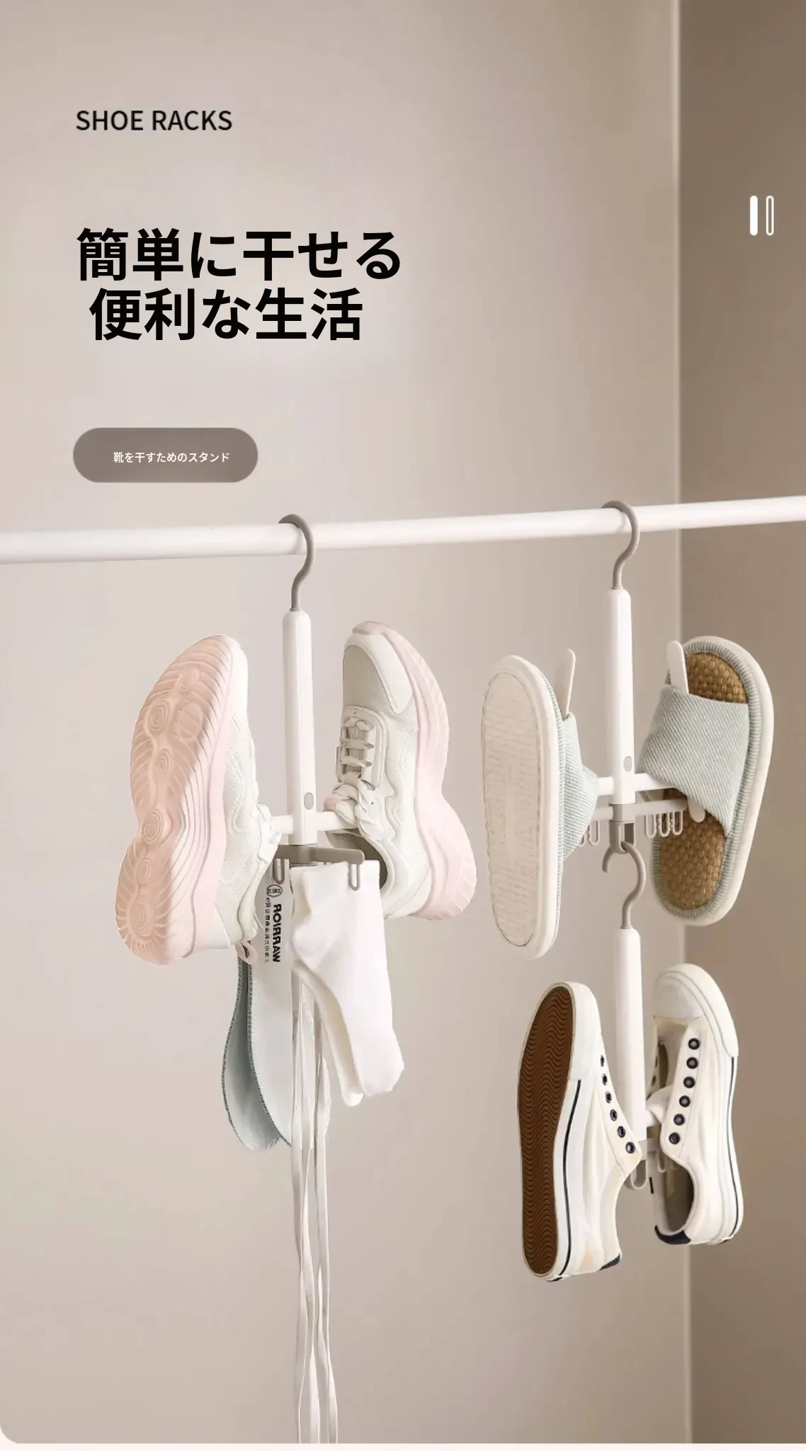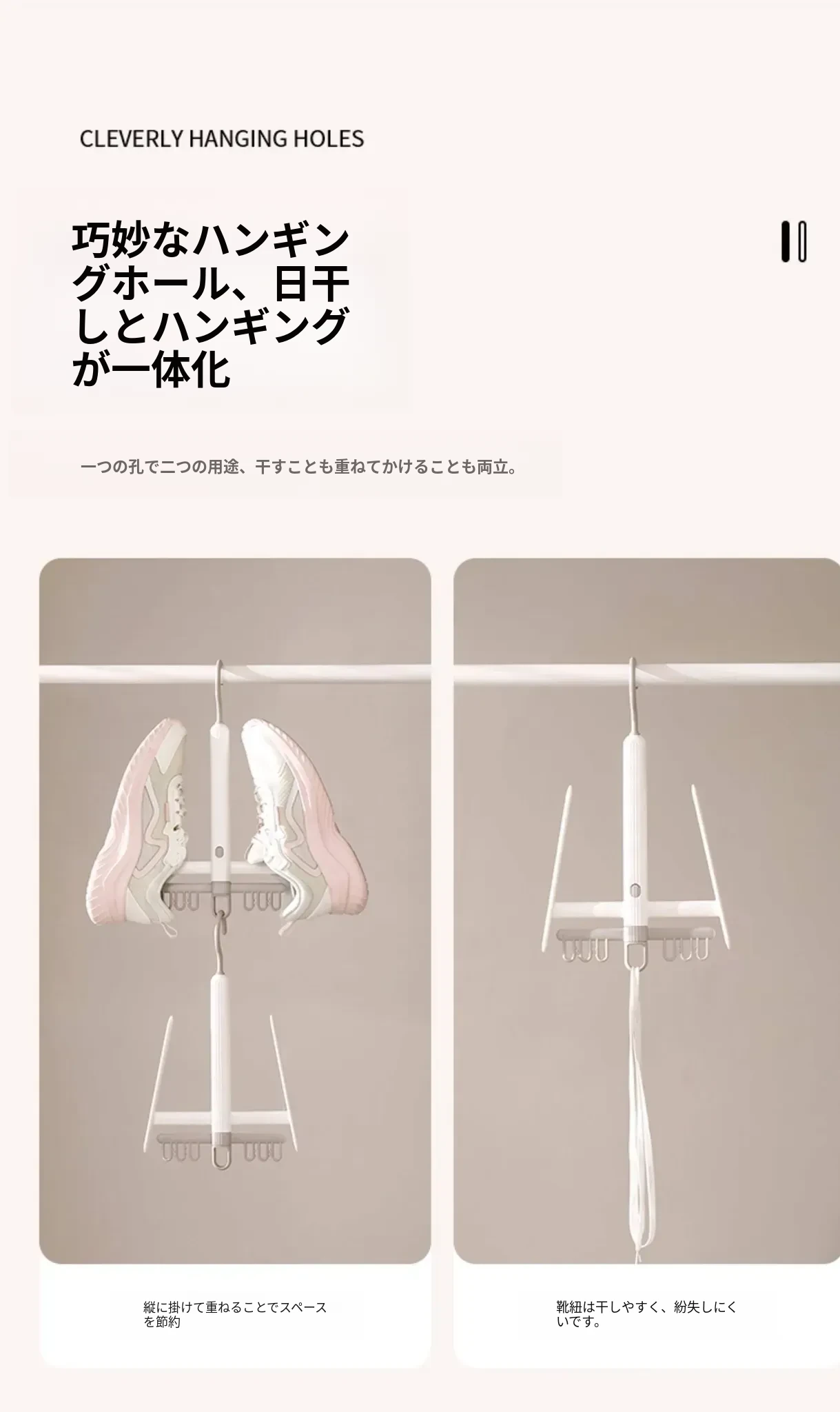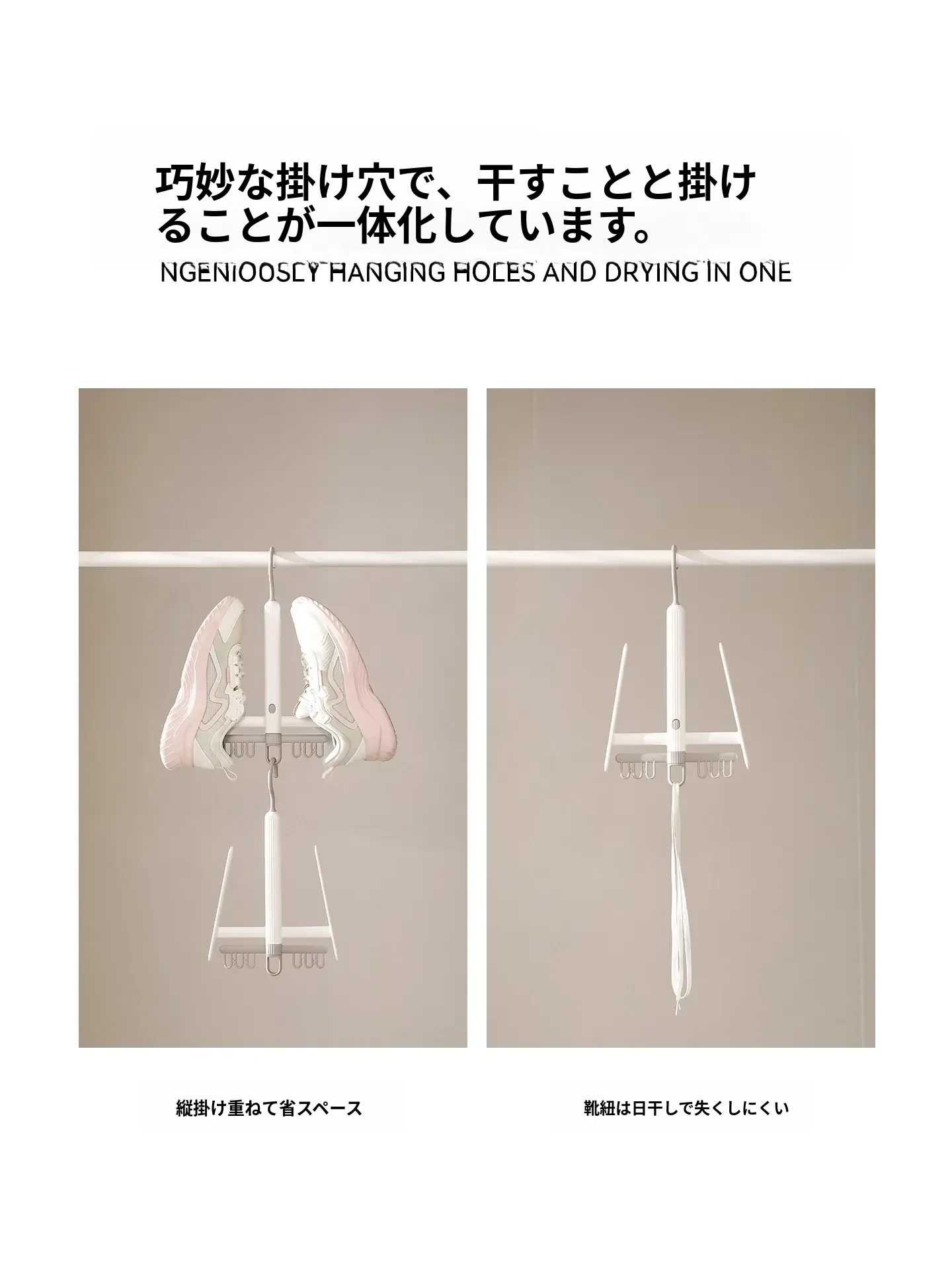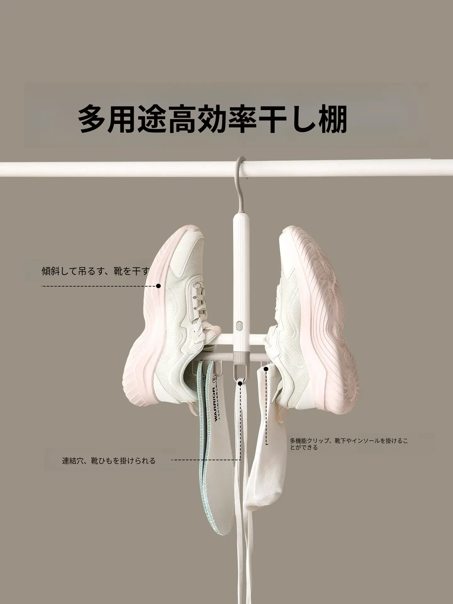 FaSoLa靴子干しラック - 屋外・バルコニー用の簡易防風シューズ乾燥スタンド!多機能収納フック付きで、靴をしっかりと乾かし、スペースを有効活用。おしゃれで便利なシューズハンガーで、快適な生活をサポートします!