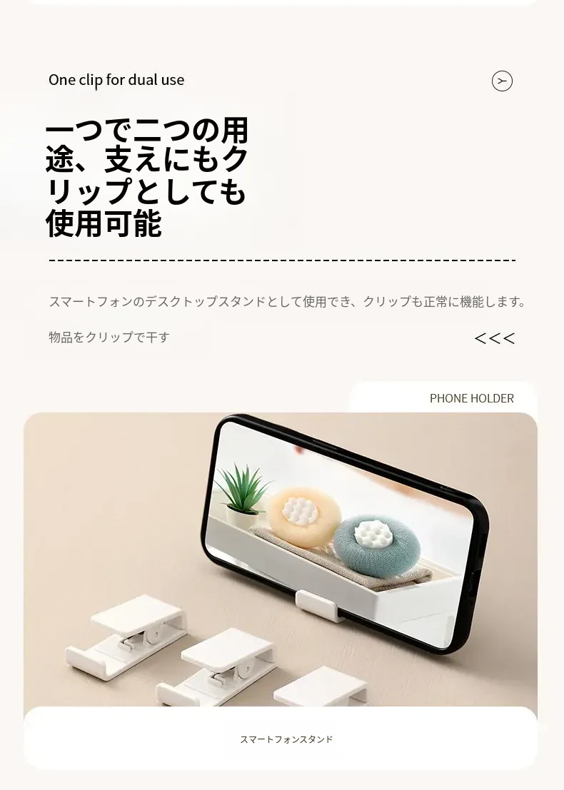 FaSoLaスマホスタンド&強力クリップ!靴下干しや風防止、スナックの封口にも最適!湿気から守る密封クリップで、便利さと機能性を兼ね備えたアイテムです。