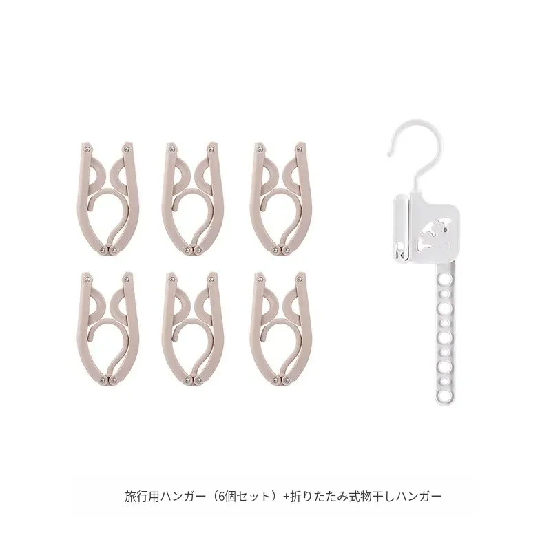 旅行用ハンガー(6枚入)+折りたたみ物干しラック