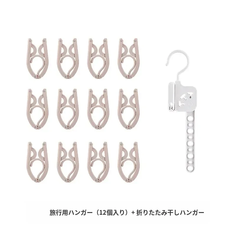 旅行用ハンガー(12枚入)+折りたたみ物干しラック